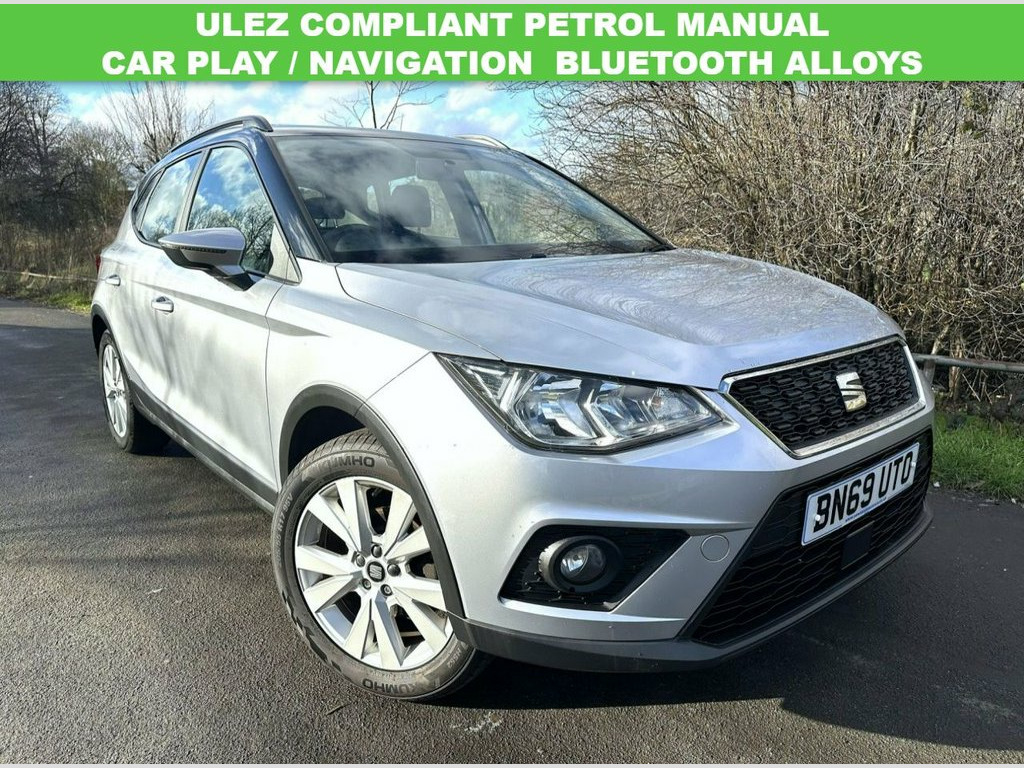 This 2019 SEAT Arona TSI SE Technology has had 3 services at Seat and is supplied with a MOT that runs until December 2026. This stylish compact SUV is equipped with a responsive 1.0 litre petrol engine, meeting Euro 6 emission standards. Inside, you'll find the SE Technology trim which includes essential features such as rear parking sensors with parking assistance, automatic headlights, and Full Link smartphone integration compatible with both Android Auto and Apple CarPlay. Enjoy seamless connectivity with Bluetooth audio streaming and a handsfree system, all while staying comfortable thanks to the air conditioning. The SEAT Arona TSI SE Technology is designed to be an economical choice, achieving an impressive fuel economy of 51 miles per gallon. Its low insurance group rating and low CO2 emissions further indicate that this vehicle is more cost effective to run and maintain compared to many other similar cars on the market. This combination of practicality, technology, and efficiency makes it a sensible option for everyday driving. 17in Alloy Wheels - Dynamic, Active Front Head Restraints, Air Conditioning, Anti-Lock Braking System - ABS, Auto-Headlights, Automatic Warning Lights, Black Window Trim, Bluetooth Audio Streaming with Handsfree, Body Coloured Door Mirrors, Comfort Suspension, Connectivity Pack Plus, Contrast Roof, Cruise Control, DAB - Digital Radio, Digital Clock, Dimming Interior Rear View Mirror, Double Boot Floor, Driver Sunvisor with Mirror and Card Hol, Driver and Front Passenger Airbags, Dust and Pollen Filter, ESC - Electronic Stability Control with , Electrically Adjustable Door Mirrors, Electro-Mechanical Power Steering - Spee, Electronic Engine Immobiliser, Emergency Tyre Repair Kit, FM-AM Radio,
