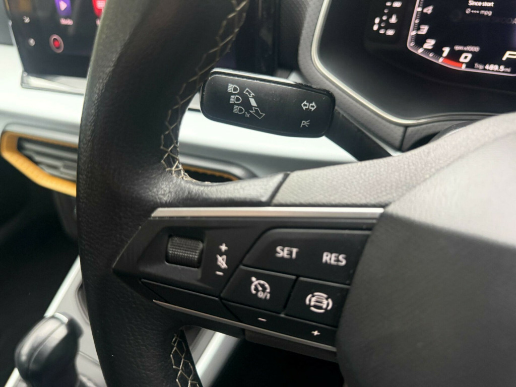3 Seat Aronas DSG In Stock Now. This 2023 SEAT Arona TSI SE Technology is a standout choice, boasting a Single Owner from new and a comprehensive Full Service History: 1)30.11.23@17,810 miles, 2)04.07.24@35,438 miles, 3)28.04.25@53,850 miles. MOT 19.10.26. This Euro 6 compliant 1.0 litre petrol model comes with a clear vehicle history check and is supplied with 12 months MOT for your peace of mind, alongside a 6 month warranty. Rubber Floor Mats. The SE Technology trim level ensures you benefit from essential features such as air conditioning, parking sensors for easier manoeuvring, and Bluetooth audio streaming with a handsfree system.Further enhancing your driving experience, this Arona includes the Connectivity Pack Plus with wireless phone charging and Full Link Smartphone Integration, compatible with both Android Auto and Apple CarPlay, keeping you connected on the go. This particular model is also noted for its low insurance group, making it an economical choice. You can expect impressive fuel economy of 48 mpg and low CO2 emissions, demonstrating its efficiency compared to similar vehicles.. 17in Alloy Wheels - Dynamic Machined, AM-FM Radio with DAB - Digital Audio Broadcasting, Air Conditioning, Anti-Lock Braking System - ABS, Black Roof Rails and Window Surround, Bluetooth Audio Streaming with Handsfree System, Body Coloured Door Mirrors, Coloured Air Vent, Connectivity Pack Plus, Contrast Roof, Cruise Control with Speed Limiter, Dimming Interior Rear View Mirror, Double Boot Floor, Driver and Front Passenger Airbags, Dust and Pollen Filter, EBA - Emergency Brake Assist and Front Assist, Eco LED Automatic Headlights and LED Daytime Running Lights, Electrically Adjustable Door Mirrors, Electronic Engine Immobiliser, Electronic Stability Control - ESC, Emergency Tyre Repair Kit, Front Courtesy Light with Front Reading Lights, Front and Rear Electric Windows, Front and Rear Seatbelt Reminder, Full Link Smartphone Integration, Grey Interior Roof, Height Adjustable Front Seats, Hidden Exhaust Pipe, Hill Hold Control, ISOFIX Points in Outer Rear Seats with Top Tether Anchorage Points, Interior Chrome Pack, LED Daytime Running Lights, Lane Keeping System, Leather Steering Wheel - Flat Bottomed - Gear Knob and Handbrake Lever, Locking Wheel Bolts, Power Assisted Steering, Protective Side Molding, RPM Counter, Rear Fog Light, Rear Parking Sensors, Rear Spoiler, SEAT Connect - Safety - Service - Remote - Online, Side Airbag in Front with Curtain Airbag, Six Speakers, Split Folding Rear Seats - 60-40, Three-Point Seatbelts on All Rear Seats, Tiredness Recognition System, Titan Black Dashboard, Two Front and Three Rear Height-Adjustable Headrests, Tyre Pressure Monitoring System, Wireless Apple Car Play, Wireless Mobile Charging, Virtual Cockpit, Parking Sensors, Rubber Floor Mats. Full service history