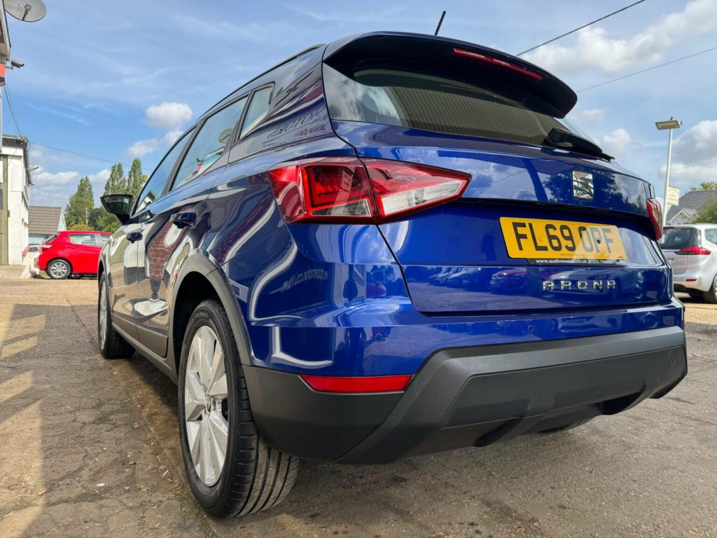 We have for you a SEAT Arona 1.0 TSI SE Technology in Metallic blue with grey trim covered just 13,000 miles with full service history and one former owner from new