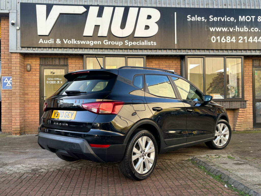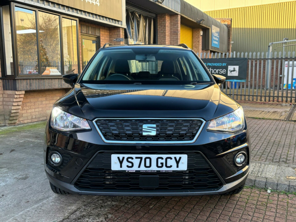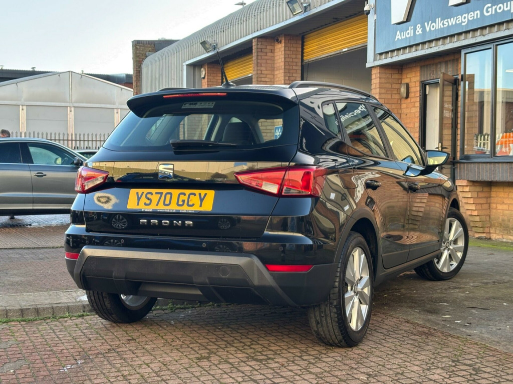 This 2020 SEAT Arona TSI SE Technology is a superb example, having been owned by just one person from new and boasting a full service history for your peace of mind. This Euro 6 compliant 1.0 litre petrol model comes in the desirable SE Technology trim, offering a blend of style and practicality. You'll appreciate the convenience of Full Link Smartphone Integration, allowing seamless access to Android Auto and Apple CarPlay, alongside auto headlights and rear parking sensors to make every journey smoother. The Connectivity Pack Plus, including wireless phone charging, and air conditioning ensure you stay connected and comfortable on the go.With an impressive fuel economy of 51 mpg, this Arona is designed to be economical for your daily driving needs. Its low CO2 emissions and low insurance group further highlight how this vehicle offers excellent value compared to similar cars on the market. A 3 month warranty is also included, providing an extra layer of confidence in your purchase.. 17in Alloy Wheels - Dynamic, Active Front Head Restraints, Air Conditioning, Anti-Lock Braking System - ABS, Auto-Headlights, Automatic Warning Lights, Black Window Trim, Bluetooth Audio Streaming with Handsfree System, Body Coloured Door Mirrors, Comfort Suspension, Connectivity Pack Plus, Contrast Roof, Cruise Control, DAB - Digital Radio, Digital Clock, Dimming Interior Rear View Mirror, Double Boot Floor, Driver Sunvisor with Mirror and Card Holder, Driver and Front Passenger Airbags, Dust and Pollen Filter, ESC - Electronic Stability Control with EBA - Emergency Brake Assist, Electrically Adjustable Door Mirrors, Electro-Mechanical Power Steering - Speed-Sensitive, Electronic Engine Immobiliser, Emergency Tyre Repair Kit, FM-AM Radio, Front Assist, Front Courtesy Light with Front Reading Lights, Front Fog Lights with Cornering Function, Front Grille Frame in Chrome, Front Passenger Airbag De-Activation, Front Side and Curtain Airbags, Front and Rear Electric Windows, Front and Rear Seatbelt Reminder, Full Link Smartphone Integration, Gearshift Indicator, Grey Interior Roof, Grey Plastic Dashboard, Height Adjustable Drivers Seat, Height Adjustable Front Passenger Seat, Height and Reach Adjustable Steering Wheel, Hidden Exhaust Pipe, Hill Hold Control, ISOFIX Points in Outer Rear Seats with Top Tether Anchorage Points, Instrument Lighting with Brightness Control, Interior Ambient Light, Interior Chrome Pack, Interior Footwell Light, LED Daytime Running Lights, LED Licence Plate Lighting, LED Taillights, Leather Handbrake, Leather Steering Wheel and Gear Knob, Lights Left On Warning Buzzer, Locking Wheel Bolts, Low Fuel Warning Light, Multi-Collision Braking System, Multicoloured Ambient Lighting, Outside Temperature Gauge, Passenger Sunvisor with Mirror, RPM Counter, Rear Parking Sensors, Roof Rails - Black, Six Speakers, Split Folding Rear Seats - 60-40, Three-Point Seatbelts on All Rear Seats, Tiredness Recognition System, Trip Computer, Twin-Bulb Front Halogen Headlights with Electrical Adjustment, Two Front and Three Rear Height-Adjustable Headrests, Tyre Pressure Monitoring System. Full service history