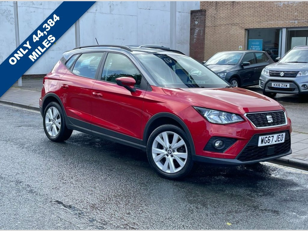 Only 44,384 Miles, Fantastic Looking SEAT ARONA finished in Desire Red with Grey Roof, Great Spec with Rear Parking Sensors, Heated Seats, Apple CarPlay/Android Auto, Bluetooth & DAB Radio, Climate Control, Adaptive Cruise Control, Power Fold Mirrors, Alloy Wheels, Service History. Desire Red with Grey Roof, 17in Alloy Wheels - Dynamic, Active Front Head Restraints, Adaptive Cruise Control, Air Conditioning, Leather Handbrake, Alarm with Back-Up Horn, Anti-Lock Braking System - ABS, Anti-Theft Roof Antenna, Auto Dimming Rear View Mirror, Auto-Headlights, Automatic Warning Lights, Black Window Trim, Bluetooth Audio Streaming with Handsfree, Body-Coloured Door Handles, Child Locks on Rear Doors, Comfort Suspension, Coming Home - Leaving Home Headlight Fun, Connectivity Pack Plus, DAB - Digital Radio, Digital Clock, Double Boot Floor, Driver Sunvisor with Mirror and Card Hol, Driver and Front Passenger Airbags, Dual Zone Climate Control, Dust and Pollen Filter, ESC - Elec