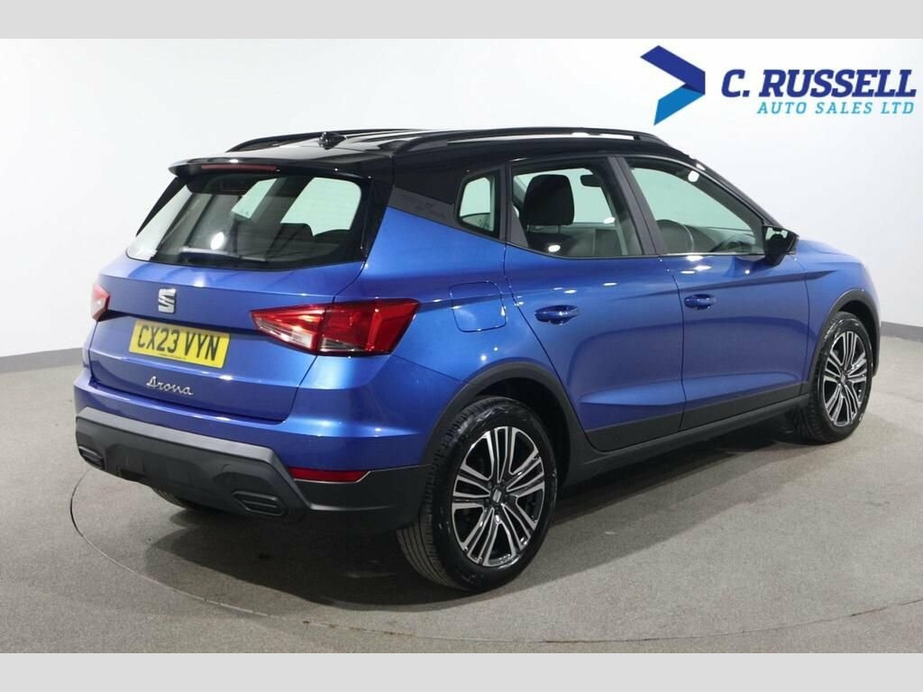 This 2023 SEAT Arona TSI SE Technology is a superb example, having had only one owner from new. This stylish compact SUV is powered by an efficient 1.0 litre Euro 6 compliant petrol engine, offering a great balance of performance and economy. The SE Technology trim level ensures you benefit from a host of desirable features, including Eco LED automatic headlights with LED daytime running lights, and rear parking sensors to aid manoeuvrability. Inside, you'll find the Connectivity Pack Plus, which includes wireless phone charging and Full Link smartphone integration with Android Auto and Apple CarPlay, alongside Bluetooth audio streaming and a handsfree system for seamless connectivity on the go. This SEAT Arona stands out with its impressive fuel economy, achieving up to 48 miles per gallon, which is better than many similar vehicles. Its low CO2 emissions also contribute to its appeal, indicating a more environmentally conscious choice. Furthermore, its placement in a low insurance group means that running costs are kept to a minimum, making this a particularly economical and practical option for many drivers. Based in Northern Ireland,Videos available on request, Delivery all over UK arranged. 17in Alloy Wheels - Dynamic Machined, 9.2in Touchscreen Display, Air Conditioning, Anti-Lock Braking System - ABS, Black Roof Rails and Window Surround, Bluetooth Audio Streaming with Handsfree, Body Coloured Door Mirrors, Coloured Air Vent - Honey Mustard, Contrast Roof, Cruise Control with Speed Limiter, Digital Cockpit - 8in, Dimming Interior Rear View Mirror, Double Boot Floor, Driver and Front Passenger Airbags, Dust and Pollen Filter, EBA - Emergency Brake Assist and Front A, Eco LED Automatic Headlights and LED Day, Electrically Adjustable Door Mirrors, Electronic Engine Immobiliser, Electronic Stability Control - ESC, Emergency Tyre Repair Kit, Front and Rear Electric Windows, Front