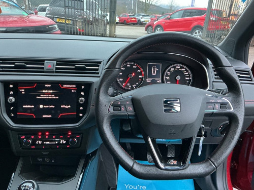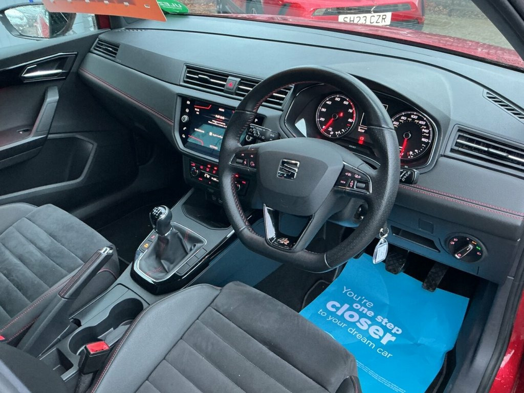 This 2018 SEAT Arona TSI EVO FR Sport boasts exceptionally low mileage for its age, having covered just 36,250 miles. This stylish compact SUV, finished in the sporty FR Sport trim, is powered by an efficient 1.5 litre Euro 6 compliant petrol engine. It comes equipped with a range of desirable features, including full LED headlights with automatic activation and front fog lights that incorporate a cornering function for enhanced visibility. Inside, you'll find the convenience of dual zone climate control and a Bluetooth system that allows for both handsfree calls and audio streaming. The SEAT Arona TSI EVO FR Sport offers impressive performance and economy, making it a compelling choice. Its 0-60mph acceleration time of just 8.3 seconds demonstrates its responsive nature, while a fuel economy of up to 55 miles per gallon highlights its efficiency. Furthermore, its low CO2 emissions contribute to a more environmentally conscious drive. These highlights collectively indicate that this Arona provides a superior driving experience compared to many other vehicles in its class. 18in Alloy Wheels - Performance, Active Front Head Restraints, Alarm with Back-Up Horn, Anti-Lock Braking System - ABS, Anti-Theft Roof Antenna, Auto Dimming Rear View Mirror, Auto-Headlights, Automatic Warning Lights, Bluetooth Audio Streaming with Handsfree, Body-Coloured Door Handles, Child Locks on Rear Doors, Chrome Window Trim, Coming Home - Leaving Home Headlight Fun, Connectivity Pack Plus, Cruise Control, DAB - Digital Radio, Dark Tinted Rear Windows, Desire Red with Black Roof, Digital Clock, Double Boot Floor, Driver and Front Passenger Airbags, Driver Sunvisor with Mirror and Card Hol, Dual Zone Climate Control, Dust and Pollen Filter, Electric Windows - Front and Rear with O, El