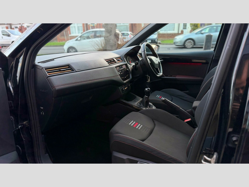 EXCELLENT CONDITION FOR AGE AND MIEAGE , WITH FULL SERVICE HISTORY . This 2018 SEAT Arona TDI FR presents a compelling proposition with its remarkably low mileage for its age, having covered just 61,000 miles. This particular example boasts a full service history and a clear vehicle history check, ensuring peace of mind for its next owner. The FR trim level enhances the sporty appeal of this 1.6 litre diesel Euro 6 compliant model. Notable features include full LED headlights for superior visibility, dual zone climate control to keep everyone comfortable, and a Bluetooth audio streaming system with a handsfree function for safe connectivity on the go. The Connectivity Pack Plus further enhances the experience with Android Auto, Apple CarPlay, and wireless phone charging.This SEAT Arona TDI FR offers several advantages over similar vehicles. Its impressive fuel economy of 58 mpg means fewer trips to the petrol station, making it an economical choice for daily driving. Furthermore, its low insurance group rating contributes to lower running costs. The vehicle also benefits from low CO2 emissions, which is better for the environment. A 12 month MOT will be provided on purchase, and the car comes with a 6 month warranty for added reassurance. The last service was completed at 61,000 miles, aligning with the current low mileage., cloth - nora black, 17in alloy wheels - dynamic, active front head restraints, alarm with back-up horn, anti-lock braking system - abs, anti-theft roof antenna, auto dimming rear view mirror, auto-headlights, automatic warning lights, bluetooth audio streaming with handsfree system, body-coloured door handles, child locks on rear doors, chrome window trim, coming home - leaving home headlight function, connectivity pack plus, cruise control, dab - digital radio, dark tinted rear windows, digital clock, double boot floor, driver sunvisor with mirror and card holder, driver and front passenger airbags, dual zone climate control, dust and pollen filter, esc - electronic stability control with eba - emergency brake assist, electric windows - front and rear with one-touch and anti-squeeze, electrically adjustable folding and heated door mirrors, electro-mechanical power steering - speed-sensitive, electronic engine immobiliser, emergency tyre repair kit, exclusive flat-bottomed fr steering wheel and interior details, exhaust pipe - twin, fm-am radio, front assist, front courtesy light with front and rear reading lights, front fog lights with cornering function, front grille frame in chrome, front passenger airbag de-activation, front side and curtain airbags, front and rear seatbelt reminder, full led headlights, gearshift indicator, height adjustable drivers seat, height adjustable front passenger seat, height and reach adjustable steering wheel, hill hold control, isofix points in outer rear seats with top tether anchorage points, illuminated boot, instrument lighting with brightness control, interior ambient light, interior chrome pack, interior footwell light, led daytime running lights, led licence plate lighting, led taillights, leather handbrake, leather steering wheel and gear knob, lights left on warning buzzer, locking wheel bolts, low fuel warning light, multi-collision braking system, multicoloured ambient lighting, outside temperature gauge, passenger sunvisor with mirror and card holder, rpm counter, rain sensing wipers, rear fog light, rear parking sensors, rear window wiper with washer, remote central locking with deadlocks, roof coloured door mirrors, roof rails - chrome, seat drive profile, seats - sports fr, six speakers, split folding rear seats - 60-40, sports suspension, three-point seatbelts on all rear seats, tiredness recognition system, trip computer, two cup holders in cabin, two folding remote keys with remote window opening-closing function, two front and three rear height-adjustable headrests, tyre pressure monitoring system, visible vin in windscreen, windshield wiper with intermittent control and potentiometer - four speeds
