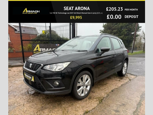 This 2019 SEAT Arona 1.6 TDI SE Technology Lux SUV 5dr Diesel Manual Eu is currently available for £9,995 in Armagh with Diesel engine and Manual gearbox. For more information or to arrange a viewing, click here to send us an email using form below.