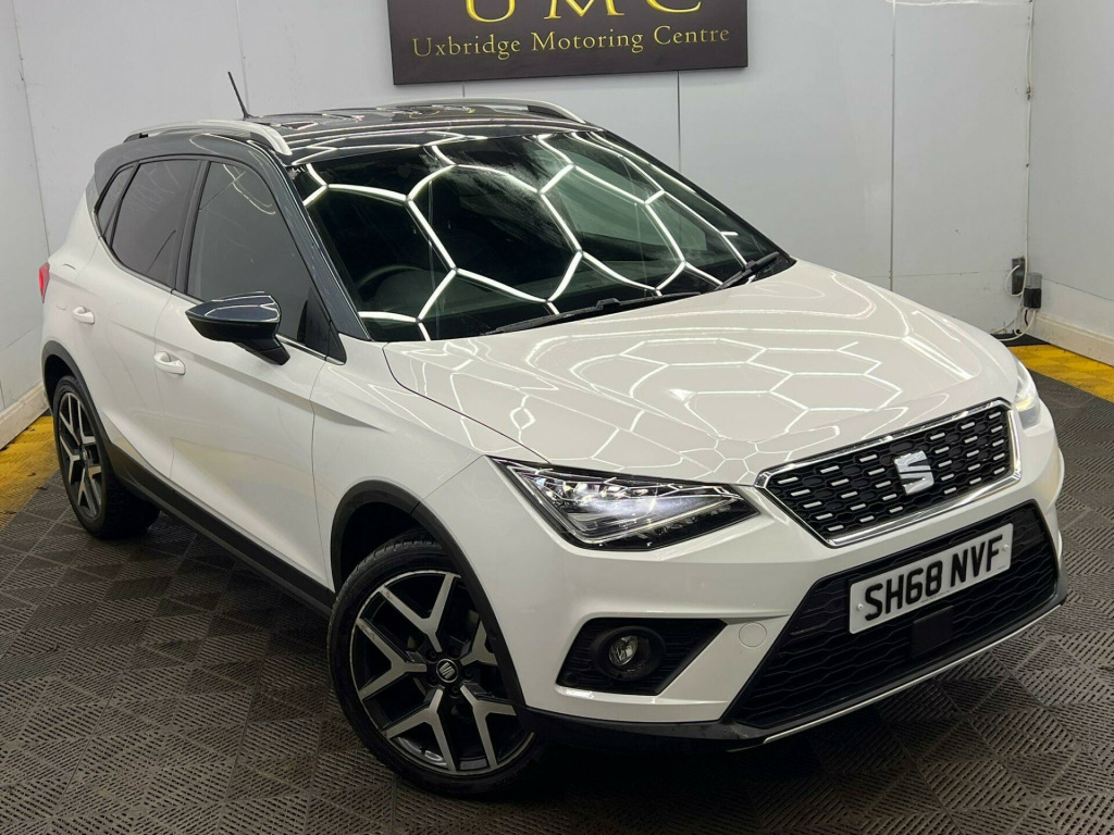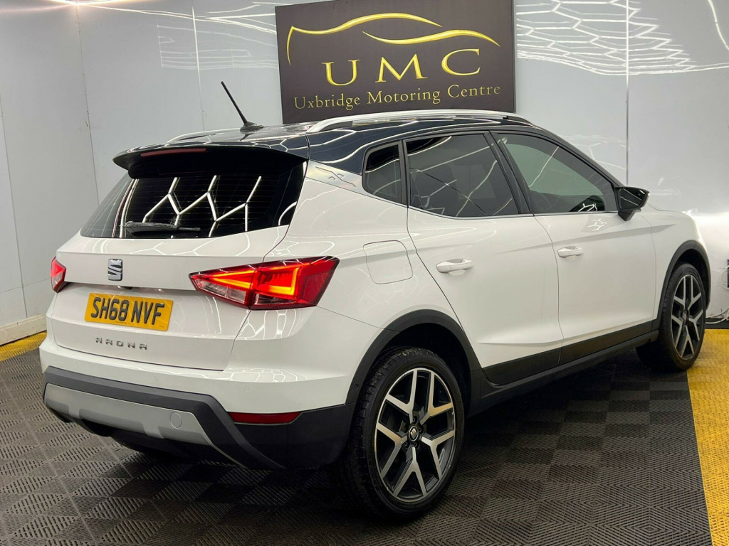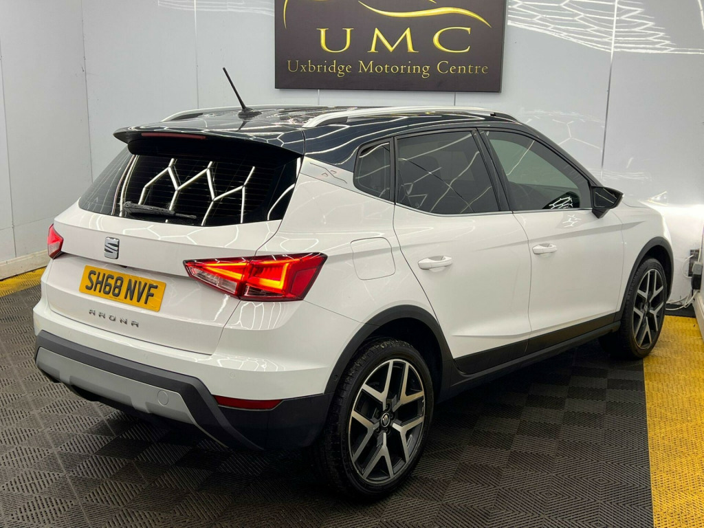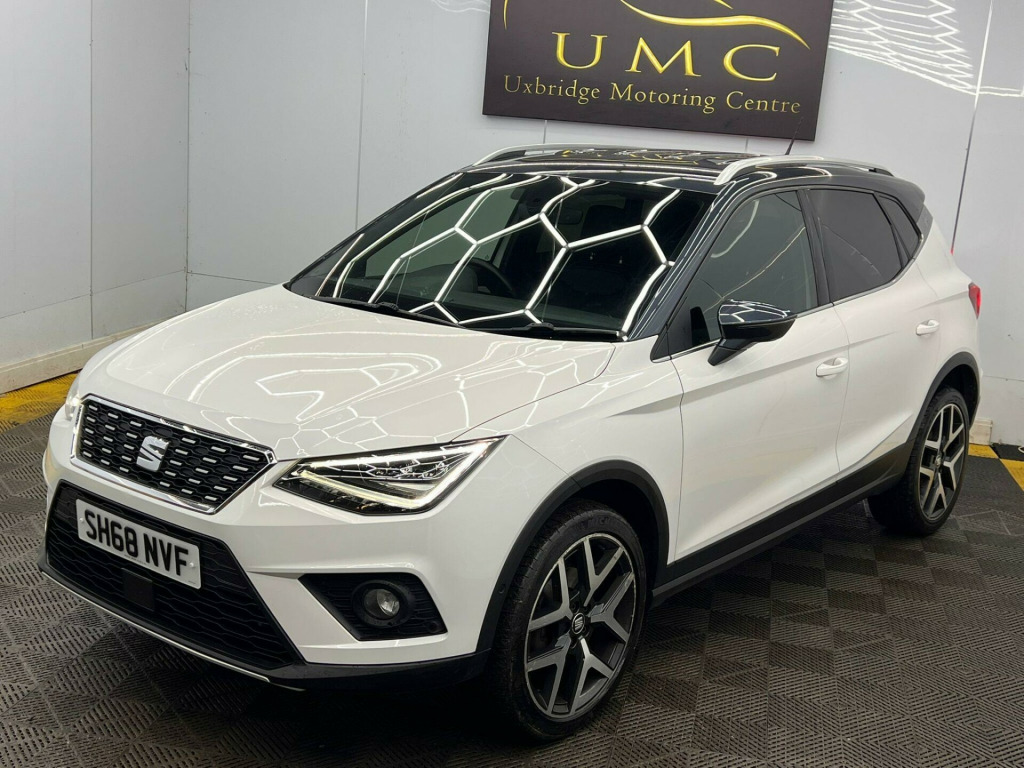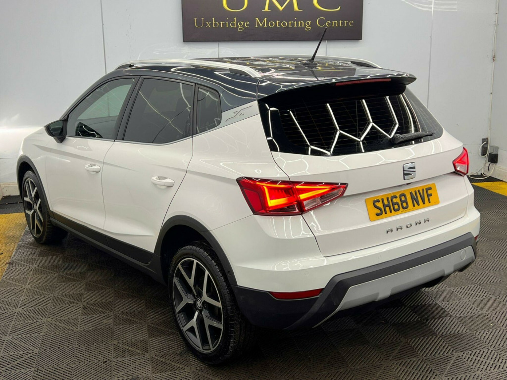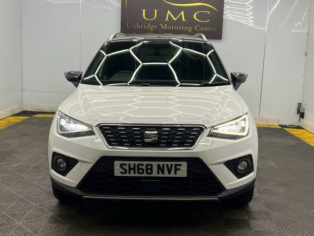This 2018 SEAT Arona TDI XCELLENCE Lux is a well equipped compact SUV. It features a 1.6 litre Euro 6 diesel engine, offering a blend of efficiency and performance. The XCELLENCE Lux trim level ensures a high standard of comfort and technology, with notable features including a Winter Pack with heated seats for those colder journeys, and a Blind Spot Detection system for added safety. Convenience is further enhanced by the Connectivity Pack Plus, which includes wireless phone charging, and Bluetooth audio streaming with a handsfree system. Automatic headlights also contribute to a more relaxed driving experience.This SEAT Arona stands out with its impressive fuel economy, achieving up to 54 miles per gallon, which indicates it is more economical than many similar vehicles. Its low CO2 emissions are also a positive attribute, suggesting a more environmentally conscious choice. Furthermore, its placement in a low insurance group highlights its affordability for everyday use, making it a sensible option for a wide range of drivers.To add to your peace of mind, we offer a 3-month warranty, 12 months of AA Breakdown Cover, and a minimum 6 months of both MOT and service. Your satisfaction and the longevity of your investment are our top priorities.Explore financing options by contacting us at 07405357469. The financing package includes a 12-month AA Breakdown Cover, and while a minimum 6 months MOT is provided (though not applicable to all vehicles), please be aware that an admin charge may apply.Our commitment to customer satisfaction extends to flexible viewing hours until late, allowing you ample time to inspect and appreciate this vehicle. Additionally, we provide warranty and delivery options to cater to your preferences. If you have a vehicle for exchange, we are open to considering it.To ensure transparency and clarity, we encourage customers to verify the car's specifications, advert description, and mileage with our salesperson before finalizing the purchase. This ensures that your experience exceeds expectations, making it a truly enjoyable and w in alloy wheels - performance, active front head restraints, adaptive cruise control, alarm with back-up horn, anti-lock braking system - abs, anti-theft roof antenna, auto dimming rear view mirror, auto-headlights, automatic warning lights, beats audio, bi-colour roof, blind spot detection, bluetooth audio streaming with handsfree system, body-coloured door handles, child locks on rear doors, chrome window trim, comfort suspension, coming home - leaving home headlight function, connectivity pack plus, dab - digital radio, digital clock, double boot floor, driver sunvisor with mirror and card holder, driver and front passenger airbags, dual zone climate control, dust and pollen filter, esc - electronic stability control with eba - emergency brake assist, electric windows - front and rear with one-touch and anti-squeeze, electrically adjustable folding and heated door mirrors, electro-mechanical power steering - speed-sensitive, electronic engine immobiliser, emergency tyre repair kit, fm-am radio, front assist, front courtesy light with front and rear reading lights, front fog lights with cornering function, front grille frame in chrome, front grille with chrome, front parking sensors, front passenger airbag de-activation, front seatback storage pockets, front side and curtain airbags, front and rear seatbelt reminder, full led headlights, gearshift indicator, height adjustable drivers seat, height adjustable front passenger seat, height and reach adjustable steering wheel, hidden exhaust pipe, hill hold control, isofix points in outer rear seats with top tether anchorage points, illuminated boot, instrument lighting with brightness control, interior ambient light, interior chrome pack, interior footwell light, kessy - keyless entry and go, led licence plate lighting, led taillights, leather handbrake, leather steering wheel and gear knob, lights left on warning buzzer, locking wheel bolts, low fuel warning light, multi-collision braking system, multicoloured ambient lighting, outside temperature gauge, park assist, passenger sunvisor with mirror and card holder, rpm counter, rain sensing wipers, rear cross traffic alert, rear fog light, rear parking sensors, rear view camera, rear window wiper with washer, remote central locking with deadlocks, roof coloured door mirrors, roof rails - chrome, seat drive profile, six speakers, split folding rear seats - 60-40, storage pack, three-point seatbelts on all rear seats, tiredness recognition system, trip computer, two cup holders in cabin, two folding remote keys with remote window opening-closing function, two front and three rear height-adjustable headrests, tyre pressure monitoring system, visible vin in windscreen, windshield wiper with intermittent control and potentiometer - four speeds, winter pack