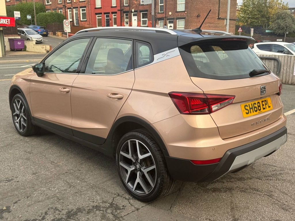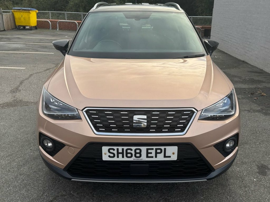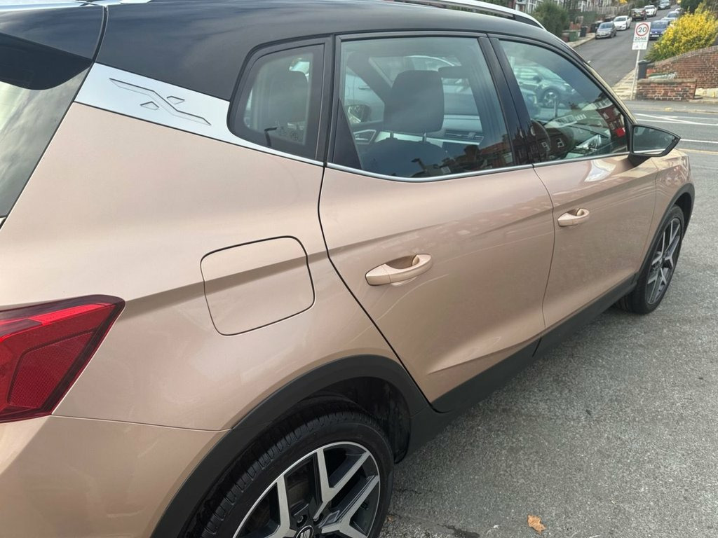 Seat Arona 1.6 TDI XCELLENCE LUX AUTO finished in Rose Gold with a contrast grey roof and sitting on 18" Performance alloy wheels. Only 2 owners from new with comprehensive service history. Excellent spec level includes adaptive cruise control, heated front seats, built-in touchscreen satellite navigation, Bluetooth connectivity, USB & AUX inputs, DAB digital radio, Apple CarPlay, Android Auto, Bose speakers, Wireless phone charge, blind spot warning system, air conditioning, ISOFIX, automatic headlights, push button start, auto headlights, rain-sensing wipers and much much more. Viewings welcome please call 0113 263 6003. Space-Saving Spare Wheel, 18in Alloy Wheels - Performance, Active Front Head Restraints, Adaptive Cruise Control, Alarm with Back-Up Horn, Anti-Lock Braking System - ABS, Anti-Theft Roof Antenna, Auto Dimming Rear View Mirror, Auto-Headlights, Automatic Warning Lights, Bi-Colour Roof, Blind Spot Detection, Bluetooth Audio Streaming with Handsfree, Body-Coloured Door Handles, Child Locks on Rear Doors, Chrome Window Trim, Comfort Suspension, Coming Home - Leaving Home Headlight Fun, Connectivity Pack Plus, DAB - Digital Radio, Digital Clock, Digital Cockpit, Double Boot Floor, Driver Sunvisor with Mirror and Card Hol, Driver and Front Passenger Airbags, Dual Zone Climate Control, Dust and Pol