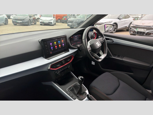 Seat Arona 1.0 TSI 110 FR 5dr 'Lights On' Reminder warning buzzer, 8" Digital cockpit, Digital clock, E-call, Electric speed sensitive power steering, Full Link Smartphone Integration with Mirror Link, Apple Car Play, Google Android Auto with USB Type C cable for Apple and Android compatibility, Lane keeping system, Low fuel warning light, Outside temperature display, Rear parking sensor, RPM counter, Seat connect with safety, service, remote and online, SEAT Drive profile - Four different models normal-sport-eco-individual, steering response, throttle response, Trip computer, Wireless phone charger, 9.2" colour touchscreen with navigation system, voice control and USB port (type c), Bluetooth interface for hands free and audio streaming, DAB digital radio and AM/FM radio, Steering wheel mounted audio controls, Anti theft roof antenna, Auto dimming interior rear view mirror, Automatic activation of hazard warning lights, Body coloured bumpers, Body coloured door handle inserts, Chrome roof rails and window surrounds, Dark tinted rear windows, Electric front/rear windows, Electrically adjustable, heated and folding door mirrors, Front fog lights with cornering function and rear fog light, FULL LED automatic headlights with dynamic headlight range control, coming and leaving home, LED daytime running lights, LED rear tail lights and licence plate lights, Protective side mouldings, Rain sensing wipers, Rear side wing doors, Rear spoiler, Rear window wash/wipe, Roof colour door mirrors, Third brake light, Twin exhaust pipe styling hidden exhaust pipe, Visible VIN plate, Windshield wiper with intermittent control and potentiometer, 2 cupholders, 3 seat bench in 2nd row, 60/40 split folding rear seat, Aircare filter, Black interior roof, Cloth upholstery, Double boot floor, Driver sunvisor with covered mirror + card holder, Dual zone climate control, Front courtesy light with 2x front and 2x rear reading lights, Front sport seats, Gear shift indicator, Height adjustable front seats, Height/reach adjustable steering column, Illuminated boot, Instrument lighting with brightness control, Interior ambient lighting, Interior light in footwell, central console and door panel, ISOFIX points in outer rear seats with top tether anchorage points, Passenger sunvisor with vanity mirror, Perforated flat bottomed leather steering wheel/gear knob/handbrake with red stitching and FR logo, Single front passenger seat, Two front and three rear height adjustable headrests, Interior chrome pack - Arona, 3 point seatbelts on all rear seats, ABS, Active front headrests, Child locks on rear doors, Driver and front passenger airbags with front passenger airbag de activation, front side and curtain airbags, Electronic stability control, Emergency Brake Assist (EBA) and front assist, Front and rear seatbelt reminder, Hill hold control, Multi-Collision braking, Tiredness recognition system, Traction control, Tyre pressure monitoring system, Alarm with back-up horn, Electronic engine immobiliser, Locking wheel bolts, Remote central locking + deadlocks, Tow away protection, Titan black dashboard, 17" Dynamic alloy wheels