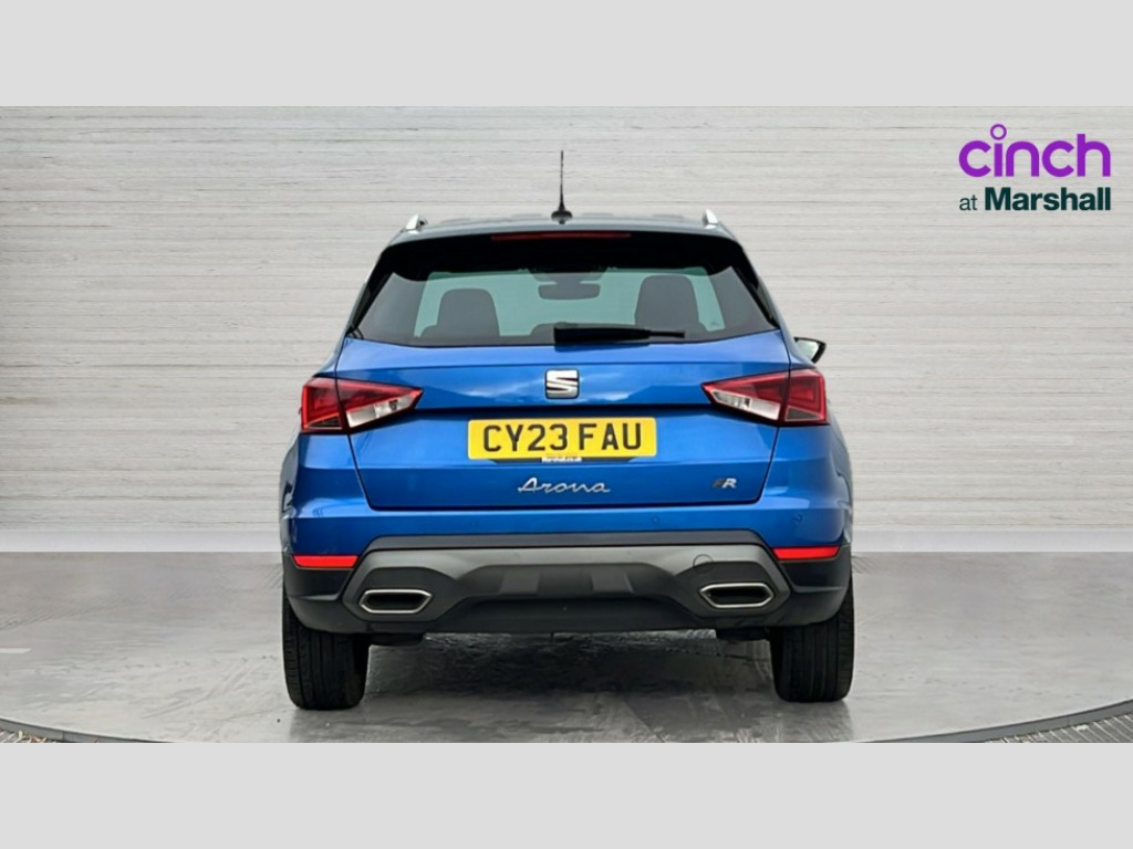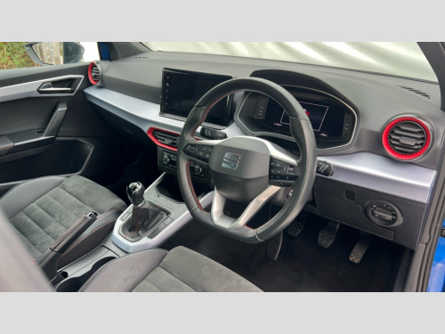 Seat Arona 1.0 TSI 110 FR Sport 5dr 'Lights On' Reminder warning buzzer, 10" Digital cockpit, Digital clock, E-call, Electric speed sensitive power steering, Full Link Smartphone Integration with Mirror Link, Apple Car Play, Google Android Auto with USB Type C cable for Apple and Android compatibility, Low fuel warning light, Outside temperature display, Rear parking sensor, RPM counter, Seat connect with safety, service, remote and online, SEAT Drive profile - Four different models normal-sport-eco-individual, steering response, throttle response, Trip computer, Wireless phone charger, 9.2" colour touchscreen with navigation system, voice control and USB port (type c), Bluetooth interface for hands free and audio streaming, DAB digital radio and AM/FM radio, Steering wheel mounted audio controls, Anti theft roof antenna, Auto dimming interior rear view mirror, Automatic activation of hazard warning lights, Body coloured bumpers, Body coloured door handle inserts, Chrome roof rails and window surrounds, Dark tinted rear windows, Electric front/rear windows, Electrically adjustable, heated and folding door mirrors, Front fog lights with cornering function and rear fog light, FULL LED automatic headlights with dynamic headlight range control, coming and leaving home, LED daytime running lights, LED rear tail lights and licence plate lights, Protective side mouldings, Rain sensing wipers, Rear side wing doors, Rear spoiler, Rear window wash/wipe, Roof colour door mirrors, Third brake light, Twin exhaust pipe styling hidden exhaust pipe, Visible VIN plate, Windshield wiper with intermittent control and potentiometer, 2 cupholders, 3 seat bench in 2nd row, 60/40 split folding rear seat, Aircare filter, Black interior roof, Double boot floor, Driver sunvisor with covered mirror + card holder, Dual zone climate control, Front comfort seats, Front courtesy light with front reading lights, Front seat back storage pockets, Gear shift indicator, Heated front seats, Height adjustable front seats, Height/reach adjustable steering column, Illuminated boot, Instrument lighting with brightness control, Interior ambient lighting, Interior light in footwell, central console and door panel, ISOFIX points in outer rear seats with top tether anchorage points, Microsuede cloth upholstery, Passenger sunvisor with vanity mirror, Perforated flat bottomed leather steering wheel/gear knob/handbrake with red stitching and FR logo, Single front passenger seat, Two front and three rear height adjustable headrests, Interior chrome pack - Arona, 3 point seatbelts on all rear seats, ABS, Active front headrests, Child locks on rear doors, Driver and front passenger airbags with front passenger airbag de activation, front side and curtain airbags, Electronic stability control, Emergency Brake Assist (EBA) and front assist, Front and rear seatbelt reminder, Hill hold control, Multi-Collision braking, Tiredness recognition system, Traction control, Tyre pressure monitoring system, Alarm with back-up horn, Electronic engine immobiliser, Locking wheel bolts, Remote central locking + deadlocks, Tow away protection, Titan black dashboard, 18" Performance Cosmo grey matt alloy wheels