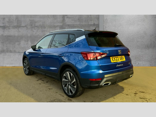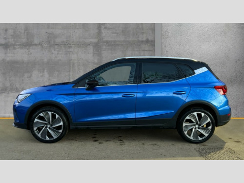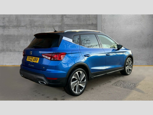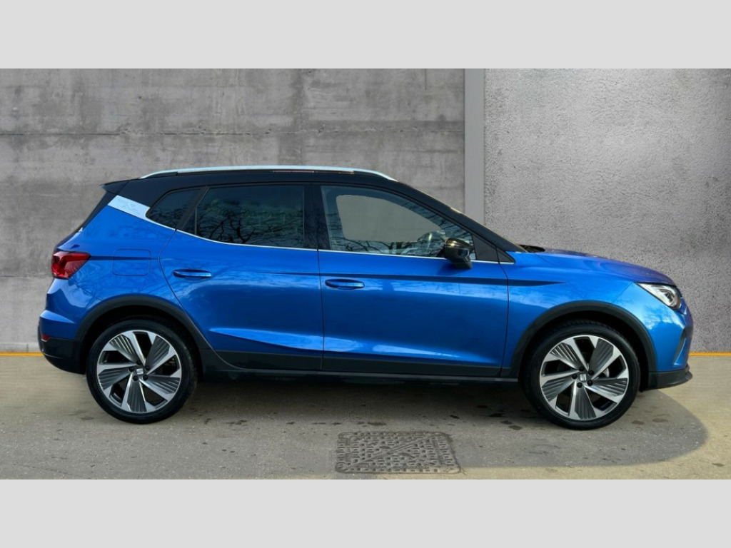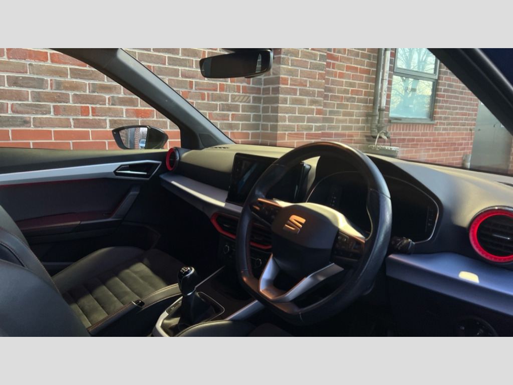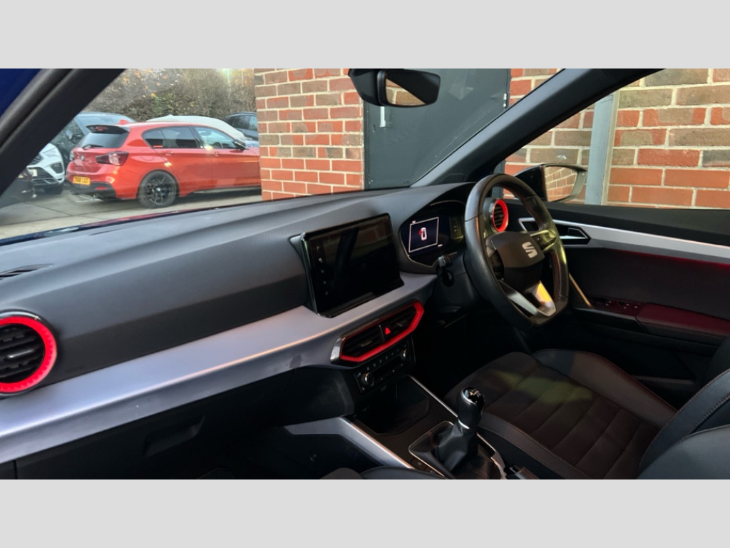 Seat Arona 1.0 TSI 110 FR Sport 5dr Digital cockpit, E-call, Electric speed sensitive power steering, Full Link Smartphone Integration with Mirror Link, Apple Car Play, Google Android Auto with USB Type C cable for Apple and Android compatibility, Lane keeping system, Rear parking sensor, Seat connect with safety, service, remote and online, SEAT Drive profile - Four different models normal-sport-eco-individual, steering response, throttle response, Bluetooth interface for hands free and audio streaming, DAB digital radio and AM/FM radio, Steering wheel mounted audio controls, Anti theft roof antenna, Auto dimming interior rear view mirror, Automatic activation of hazard warning lights, Body coloured bumpers, Body coloured door handle inserts, Chrome roof rails and window surrounds, Chrome window trim, Dark tinted rear windows, Electric front/rear windows, Electrically adjustable, heated and folding door mirrors, FULL LED automatic headlights with dynamic headlight range control, coming and leaving home, LED daytime running lights, LED rear tail lights and licence plate lights, Protective side mouldings, Rain sensing wipers, Rear side wing doors, Rear spoiler, Rear window wash/wipe, Roof colour door mirrors, Third brake light, Twin exhaust pipe styling hidden exhaust pipe, Visible VIN plate, Windshield wiper with intermittent control and potentiometer, 2 cupholders, 3 seat bench in 2nd row, 60/40 split folding rear seat, Aircare filter, Black interior roof, Daring red Illuminated coloured air vent, Double boot floor, Driver sunvisor with covered mirror + card holder, Dual zone climate control, Front courtesy light with 2x front and 2x rear reading lights, Front seat back storage pockets, Front sport seats, Heated front seats, Height adjustable front seats, Height/reach adjustable steering column, Illuminated boot, Interior ambient lighting, Interior light in footwell, central console and door panel, ISOFIX points in outer rear seats with top tether anchorage points, Microsuede cloth upholstery, Passenger sunvisor with vanity mirror, Perforated flat bottomed leather steering wheel/gear knob/handbrake with red stitching and FR logo, Single front passenger seat, Two front and three rear height adjustable headrests, Connectivity pack plus - Arona, Interior chrome pack - Arona, 3 point seatbelts on all rear seats, ABS, Active front headrests, Child locks on rear doors, Driver and front passenger airbags with front passenger airbag de activation, front side and curtain airbags, Electronic stability control, Emergency Brake Assist (EBA) and front assist, Front and rear seatbelt reminder, Hill hold control, Multi-Collision braking, Tiredness recognition system, Traction control, Tyre pressure monitoring system, Alarm with back-up horn, Electronic engine immobiliser, Locking wheel bolts, Remote central locking + deadlocks, Tow away protection, Titan black dashboard, 18" Performance Cosmo grey matt alloy wheels