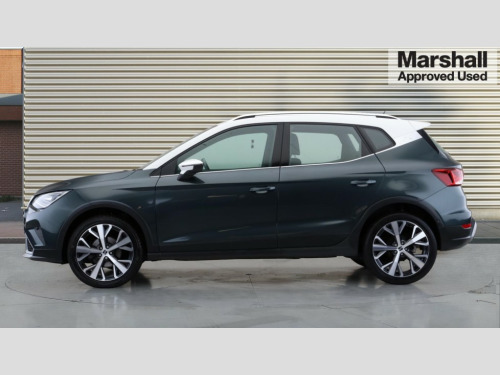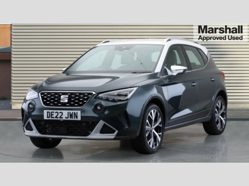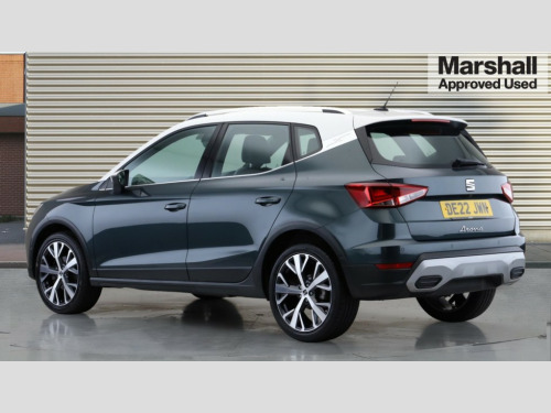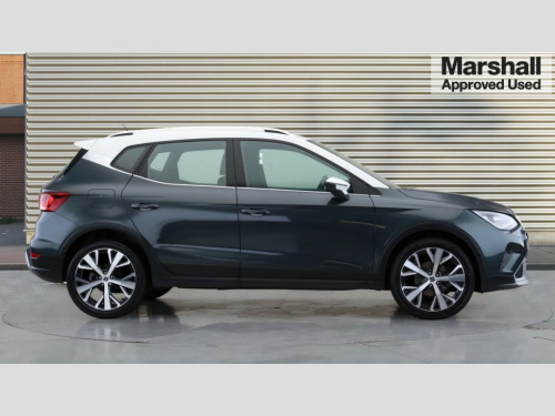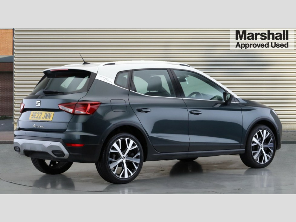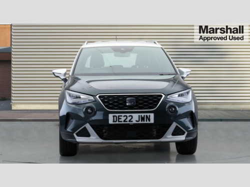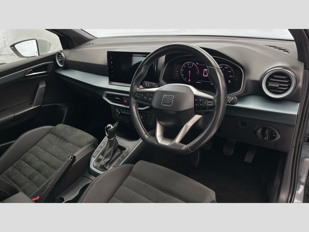 Seat Arona 1.0 TSI 110 XPERIENCE Lux 5dr Digital cockpit, E-call, Electric speed sensitive power steering, Front parking sensor, Full Link Smartphone Integration with Mirror Link, Apple Car Play, Google Android Auto with USB Type C cable for Apple and Android compatibility, Lane keeping system, Park assist system, Rear parking sensor, Rear view camera, Seat connect with safety, service, remote and online, Bluetooth interface for hands free and audio streaming, DAB digital radio and AM/FM radio, Steering wheel mounted audio controls, Anti theft roof antenna, Auto dimming interior rear view mirror, Automatic activation of hazard warning lights, Body coloured bumpers, Body coloured door handle inserts, Chrome roof rails and window surrounds, Chrome window trim, Electric front/rear windows, Electrically adjustable, heated and folding door mirrors, Front fog lights with cornering function and rear fog light, FULL LED automatic headlights with dynamic headlight range control, coming and leaving home, LED daytime running lights, Hidden exhaust pipe, LED rear tail lights and licence plate lights, Protective side mouldings, Rain sensing wipers, Rear side wing doors, Rear spoiler, Rear window wash/wipe, Roof colour door mirrors, Third brake light, Visible VIN plate, Windshield wiper with intermittent control and potentiometer, 2 cupholders, 3 seat bench in 2nd row, 60/40 split folding rear seat, Aircare filter, Black interior roof, Double boot floor, Driver sunvisor with covered mirror + card holder, Dual zone climate control, Flat bottomed leather steering wheel/gear knob/handbrake, Front courtesy light with 2x front and 2x rear reading lights, Front seat back storage pockets, Heated front seats, Height adjustable front seats, Height/reach adjustable steering column, Illuminated boot, Interior ambient lighting, Interior light in footwell, central console and door panel, ISOFIX points in outer rear seats with top tether anchorage points, Microsuede cloth upholstery, Passenger sunvisor with vanity mirror, Single front passenger seat, Storage net on centre console, Two front and three rear height adjustable headrests, Connectivity pack plus - Arona, Interior chrome pack - Arona, Storage pack - Arona, 3 point seatbelts on all rear seats, ABS, Active front headrests, Child locks on rear doors, Driver and front passenger airbags with front passenger airbag de activation, front side and curtain airbags, Electronic stability control, Emergency Brake Assist (EBA) and front assist, Front and rear seatbelt reminder, Hill hold control, Multi-Collision braking, Tiredness recognition system, Traction control, Tyre pressure monitoring system, Alarm with back-up horn, Electronic engine immobiliser, KESSY Keyless entry and go, Locking wheel bolts, Remote central locking + deadlocks, Tow away protection, Titan black dashboard, 18" Performance Nuclear grey alloy wheels
