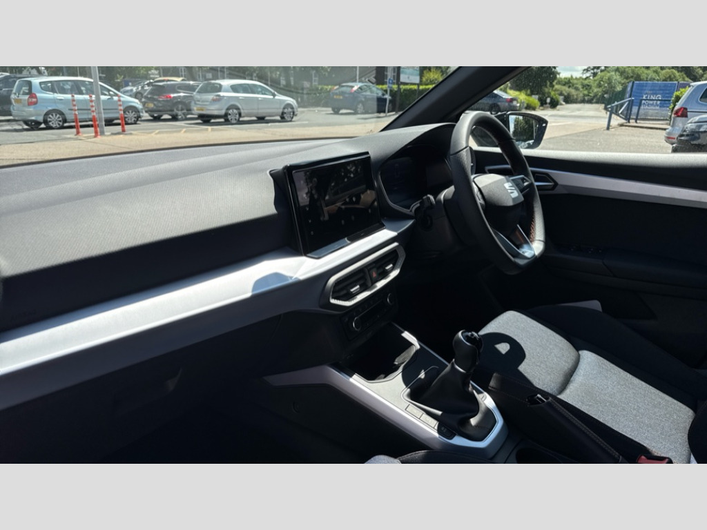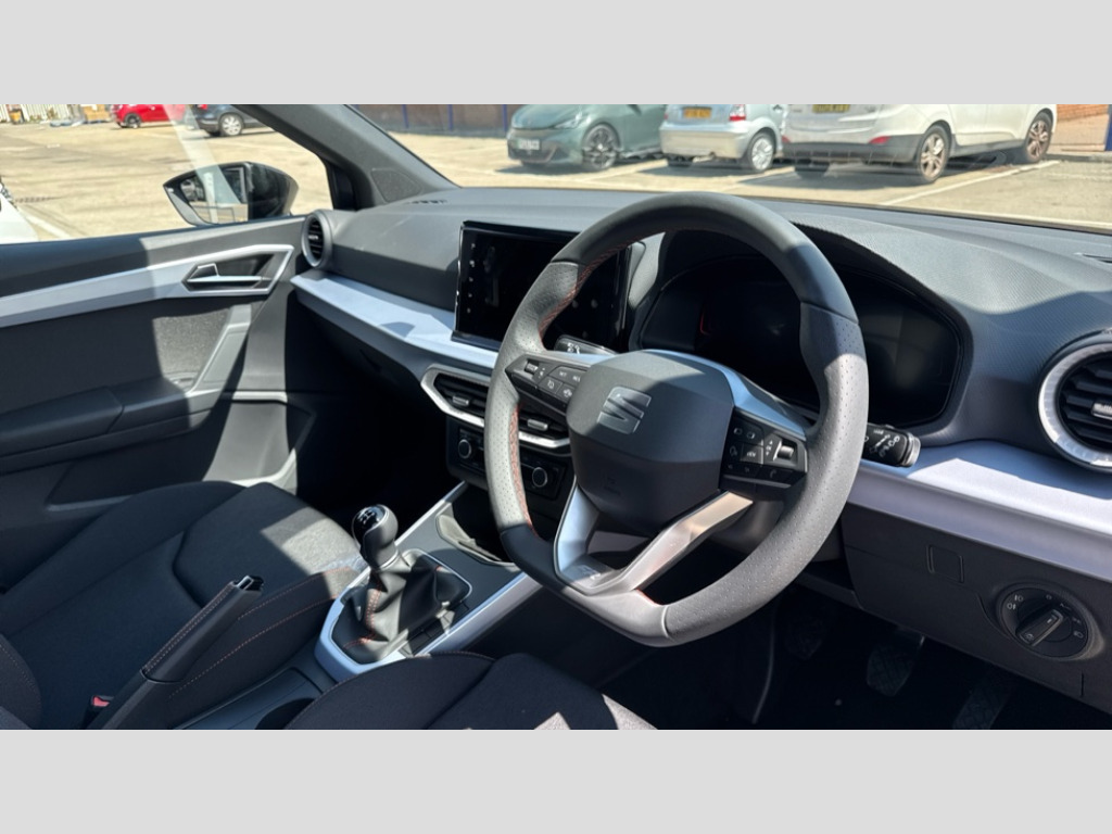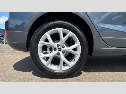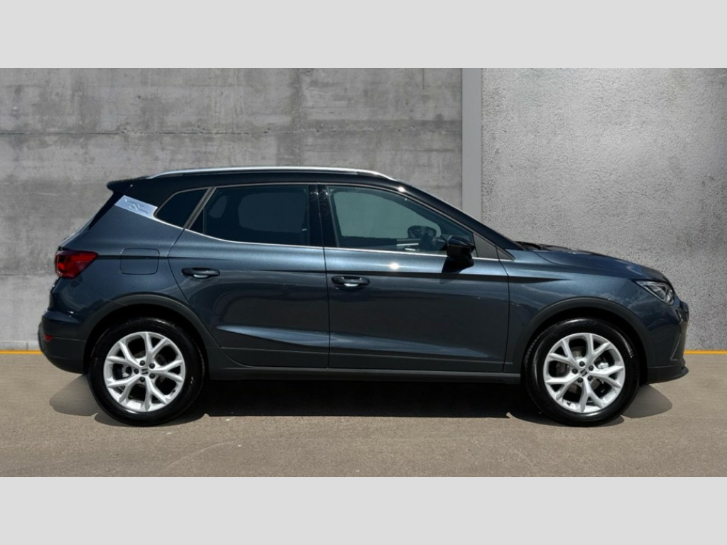 Seat Arona 1.0 TSI 115 FR 5dr 'Lights On' Reminder warning buzzer, 8" Digital cockpit, Digital clock, E-call, Electric speed sensitive power steering, Full link smartphone integration with mirror link, wireless apple carplay, Google android auto + USB Type C cable for apple and android devices, Lane keeping system, Low fuel warning light, Outside temperature display, RPM counter, SEAT Drive profile - Four different models normal-sport-eco-individual, steering response, throttle response, Trip computer, Wireless phone charger, 6 speakers, 9.2" colour touchscreen with navigation system, voice control and USB port (type c), Bluetooth interface for hands free and audio streaming, DAB digital radio and AM/FM radio, Steering wheel mounted audio controls, Anti theft roof antenna, Auto dimming interior rear view mirror, Automatic activation of hazard warning lights, Body coloured bumpers, Body coloured door handle inserts, Chrome roof rails and window surrounds, Dark tinted rear windows, Electric front/rear windows, Electrically adjustable, heated and folding door mirrors, Front fog lights with cornering function and rear fog light, FULL LED automatic headlights with dynamic headlight range control, coming and leaving home, LED daytime running lights, LED rear tail lights and licence plate lights, Protective side mouldings, Rain sensing wipers, Rear side wing doors, Rear spoiler, Rear window wash/wipe, Roof colour door mirrors, Third brake light, Twin exhaust pipe styling hidden exhaust pipe, Visible VIN plate, 2 cupholders, 3 seat bench in 2nd row, 60/40 split folding rear seat, Aircare filter, Black interior roof, Cloth upholstery, Double boot floor, Driver sunvisor with covered mirror + card holder, Dual zone climate control, Front courtesy light with front reading lights, Gear shift indicator, Height adjustable front seats, Height/reach adjustable steering column, Illuminated air vent surrounds, Illuminated boot, Instrument lighting with brightness control, Interior ambient lighting, Interior light in footwell, central console and door panel, ISOFIX points in outer rear seats with top tether anchorage points, Passenger sunvisor with vanity mirror, Perforated flat bottomed leather steering wheel/gear knob/handbrake with red stitching and FR logo, Potentiometer, Single front passenger seat, Two front and three rear height adjustable headrests, Interior chrome pack - Arona, Safe and driving pack (S) - Arona, 3 point seatbelts on all rear seats, ABS, Active front headrests, Child locks on rear doors, Driver and front passenger airbags with front passenger airbag de activation, front side and curtain airbags, Emergency Brake Assist (EBA) and front assist, Front and rear seatbelt reminder, Hill hold control, Multi-Collision braking, Tiredness recognition system, Traction control, Tyre pressure monitoring system, Alarm with back up horn with tow away protection, Deadlock, Electronic engine immobiliser, Locking wheel bolts, Remote central locking, Titan black dashboard, 17" Dynamic alloy wheels