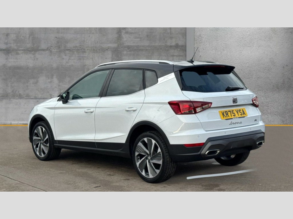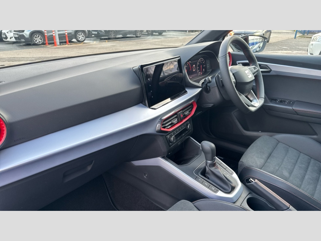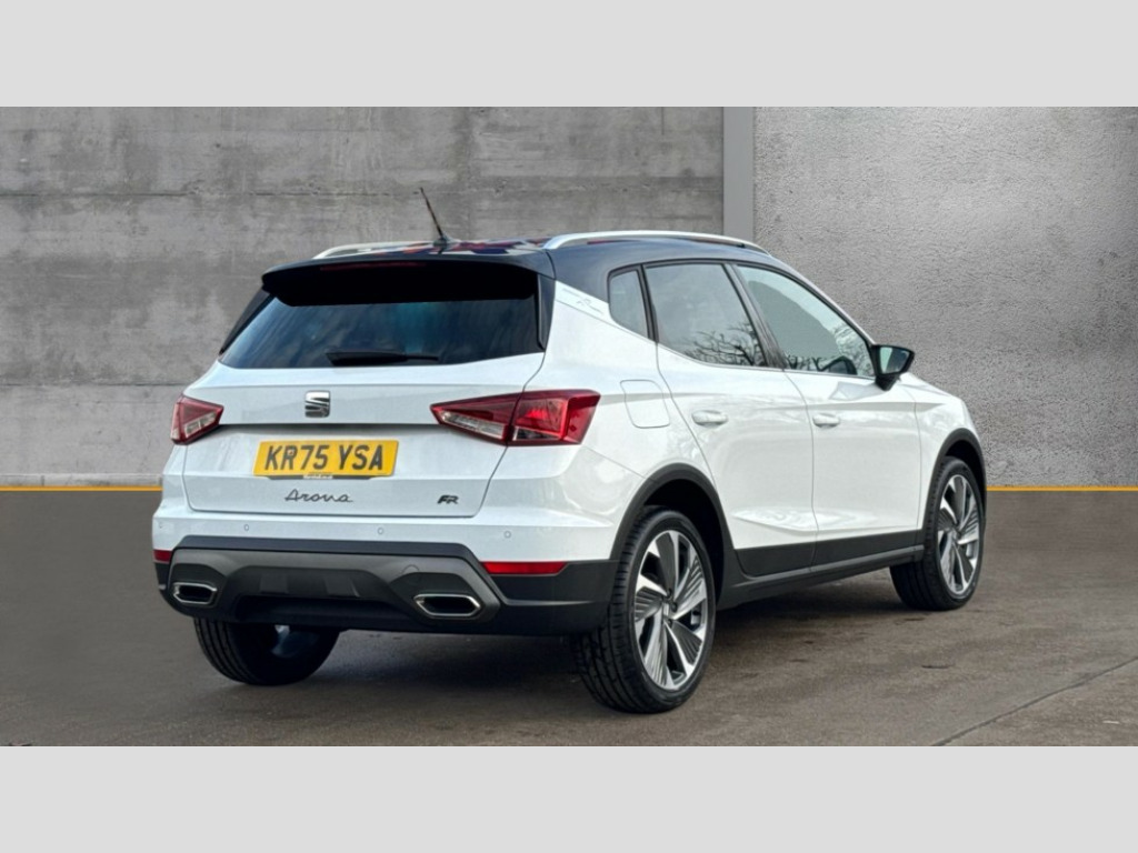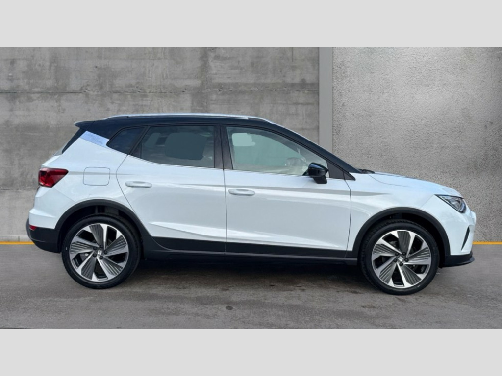 Seat Arona 1.0 TSI 115 FR Sport 5dr DSG 'Lights On' Reminder warning buzzer, 10" Digital cockpit, Digital clock, E-call, Electric speed sensitive power steering, Full link smartphone integration with mirror link, wireless apple carplay, Google android auto + USB Type C cable for apple and android devices, Lane keeping system, Low fuel warning light, Outside temperature display, RPM counter, SEAT Drive profile - Four different models normal-sport-eco-individual, steering response, throttle response and gear shifts mode, Trip computer, Wireless phone charger, 9.2" colour touchscreen with navigation system, voice control and USB port (type c), Bluetooth interface for hands free and audio streaming, DAB digital radio and AM/FM radio, Steering wheel mounted audio controls, Anti theft roof antenna, Auto dimming interior rear view mirror, Automatic activation of hazard warning lights, Body coloured bumpers, Body coloured door handle inserts, Chrome roof rails and window surrounds, Dark tinted rear windows, Electric front/rear windows, Electrically adjustable, heated and folding door mirrors, Front fog lights with cornering function and rear fog light, FULL LED automatic headlights with dynamic headlight range control, coming and leaving home, LED daytime running lights, LED rear tail lights and licence plate lights, Protective side mouldings, Rain sensing wipers, Rear side wing doors, Rear spoiler, Rear window wash/wipe, Roof colour door mirrors, Third brake light, Twin exhaust pipe styling hidden exhaust pipe, Visible VIN plate, 2 cupholders, 3 seat bench in 2nd row, 60/40 split folding rear seat, Aircare filter, Black interior roof, Double boot floor, Driver sunvisor with covered mirror + card holder, Dual zone climate control, Front comfort seats, Front courtesy light with front reading lights, Front seat back storage pockets, Gear shift indicator, Heated front seats, Height adjustable front seats, Height/reach adjustable steering column, Illuminated air vent surrounds, Illuminated boot, Instrument lighting with brightness control, Interior ambient lighting, Interior light in footwell, central console and door panel, ISOFIX points in outer rear seats with top tether anchorage points, Microsuede cloth upholstery, Passenger sunvisor with vanity mirror, Perforated flat bottomed leather steering wheel/gear knob/handbrake with red stitching and FR logo, Potentiometer, Single front passenger seat, Steering wheel mounted gearshift paddles, Two front and three rear height adjustable headrests, Interior chrome pack - Arona, Safe and driving pack (S) - Arona, 3 point seatbelts on all rear seats, ABS, Active front headrests, Child locks on rear doors, Driver and front passenger airbags with front passenger airbag de activation, front side and curtain airbags, Emergency Brake Assist (EBA) and front assist, Front and rear seatbelt reminder, Hill hold control, Multi-Collision braking, Tiredness recognition system, Traction control, Tyre pressure monitoring system, Alarm with back up horn with tow away protection, Deadlock, Electronic engine immobiliser, Locking wheel bolts, Remote central locking, Titan black dashboard, 18" Performance Cosmo grey matt alloy wheels