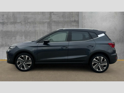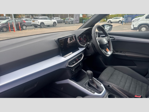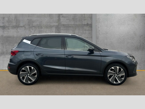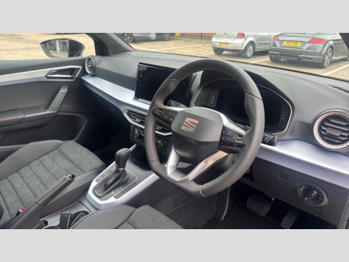Seat Arona 1.0 TSI 115 FR Sport 5dr DSG 'Lights On' Reminder warning buzzer, 10" Digital cockpit, Digital clock, E-call, Electric speed sensitive power steering, Full link smartphone integration with mirror link, wireless apple carplay, Google android auto + USB Type C cable for apple and android devices, Lane keeping system, Low fuel warning light, Outside temperature display, RPM counter, SEAT Drive profile - Four different models normal-sport-eco-individual, steering response, throttle response and gear shifts mode, Trip computer, Wireless phone charger, 9.2" colour touchscreen with navigation system, voice control and USB port (type c), Bluetooth interface for hands free and audio streaming, DAB digital radio and AM/FM radio, Steering wheel mounted audio controls, Anti theft roof antenna, Auto dimming interior rear view mirror, Automatic activation of hazard warning lights, Body coloured bumpers, Body coloured door handle inserts, Chrome roof rails and window surrounds, Dark tinted rear windows, Electric front/rear windows, Electrically adjustable, heated and folding door mirrors, Front fog lights with cornering function and rear fog light, FULL LED automatic headlights with dynamic headlight range control, coming and leaving home, LED daytime running lights, LED rear tail lights and licence plate lights, Protective side mouldings, Rain sensing wipers, Rear side wing doors, Rear spoiler, Rear window wash/wipe, Roof colour door mirrors, Third brake light, Twin exhaust pipe styling hidden exhaust pipe, Visible VIN plate, 2 cupholders, 3 seat bench in 2nd row, 60/40 split folding rear seat, Aircare filter, Black interior roof, Double boot floor, Driver sunvisor with covered mirror + card holder, Dual zone climate control, Front comfort seats, Front courtesy light with front reading lights, Front seat back storage pockets, Gear shift indicator, Heated front seats, Height adjustable front seats, Height/reach adjustable steering column, Illuminated air vent surrounds, Illuminated boot, Instrument lighting with brightness control, Interior ambient lighting, Interior light in footwell, central console and door panel, ISOFIX points in outer rear seats with top tether anchorage points, Microsuede cloth upholstery, Passenger sunvisor with vanity mirror, Perforated flat bottomed leather steering wheel/gear knob/handbrake with red stitching and FR logo, Potentiometer, Single front passenger seat, Steering wheel mounted gearshift paddles, Two front and three rear height adjustable headrests, Interior chrome pack - Arona, Safe and driving pack (S) - Arona, 3 point seatbelts on all rear seats, ABS, Active front headrests, Child locks on rear doors, Driver and front passenger airbags with front passenger airbag de activation, front side and curtain airbags, Emergency Brake Assist (EBA) and front assist, Front and rear seatbelt reminder, Hill hold control, Multi-Collision braking, Tiredness recognition system, Traction control, Tyre pressure monitoring system, Alarm with back up horn with tow away protection, Deadlock, Electronic engine immobiliser, Locking wheel bolts, Remote central locking, Titan black dashboard, 18" Performance Cosmo grey matt alloy wheels