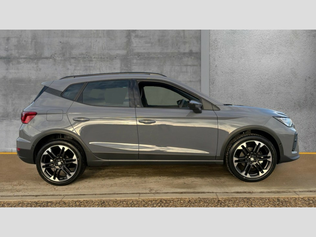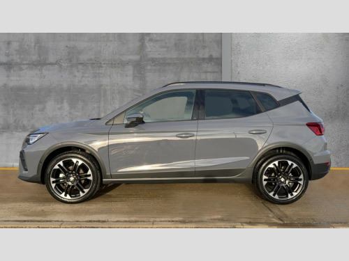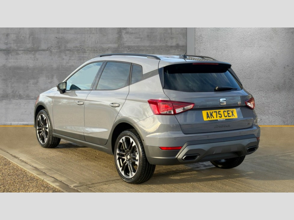 Seat Arona 1.0 TSI 115 FR Sport 5dr DSG 'Lights On' Reminder warning buzzer, 10" Digital cockpit, Digital clock, E-call, Electric speed sensitive power steering, Front parking sensors, Full link smartphone integration with mirror link, wireless apple carplay, Google android auto + USB Type C cable for apple and android devices, Low fuel warning light, Outside temperature display, Rear view camera, RPM counter, SEAT Drive profile - Four different models normal-sport-eco-individual, steering response, throttle response and gear shifts mode, Trip computer, Wireless phone charger, 9.2" colour touchscreen with navigation system, voice control and USB port (type c), Bluetooth interface for hands free and audio streaming, DAB digital radio and AM/FM radio, Steering wheel mounted audio controls, Anti theft roof antenna, Auto dimming interior rear view mirror, Automatic activation of hazard warning lights, Black roof rails and window surrounds, Body coloured bumpers, Body coloured door handle inserts, Dark tinted rear windows, Electric front/rear windows, Electrically adjustable, heated and folding door mirrors, Front fog lights with cornering function and rear fog light, LED 3rd brake light, LED daytime running lights, LED rear tail lights and licence plate lights, Protective side mouldings, Rain sensing wipers, Rear side wing doors, Rear spoiler, Rear window wash/wipe, Roof colour door mirrors, SEAT design Full LED automatic headlamps with dynamic headlight range control, coming and leaving home feature, Twin exhaust pipe styling with double flow exhaust pipe, Visible VIN plate, 2 cupholders, 3 seat bench in 2nd row, 60/40 split folding rear seat, Aircare filter, Black headliner, Cloth upholstery with embossed textile/Sport bucket seats, Double boot floor, Driver sunvisor with covered mirror + card holder, Dual zone climate control, Front courtesy light with front reading lights, Front seat back storage pockets, Heated front seats, Height adjustable front seats, Height/reach adjustable steering column, Illuminated air vent surrounds, Interior ambient lighting, Interior light in footwell, central console and door panel, ISOFIX points in outer rear seats with top tether anchorage points, Passenger sunvisor with vanity mirror, Perforated flat bottomed leather steering wheel/gear knob/handbrake with red stitching and FR logo, Red coloured interior air vents, Single front passenger seat, Steering wheel mounted gearshift paddles, Two front and three rear height adjustable headrests, Interior chrome pack - Arona, Safe and driving pack (S) - Arona, Storage pack - Arona, 3 point seatbelts on all rear seats, ABS, Active front headrests, Child locks on rear doors, Driver and front passenger airbags with front passenger airbag de activation, front side and curtain airbags, Emergency Brake Assist (EBA) and front assist, Front and rear seatbelt reminder, Hill hold control, Multi-Collision braking, Tiredness recognition system, Traction control, Tyre pressure monitoring system, Anti-theft alarm (perimeter and interior monitoring) with backup horn and towing protection, Central locking with radio remote control, interior controls and SAFELOCK, Deadlock, Electronic engine immobiliser, KESSY Keyless entry and go, Locking wheel bolts, 18" Performance machined alloy wheels in black