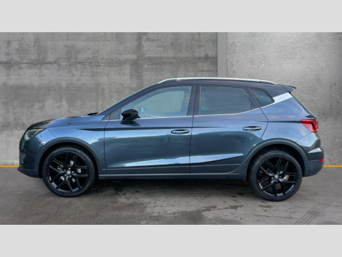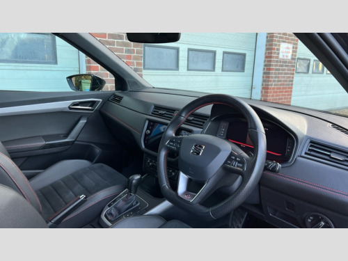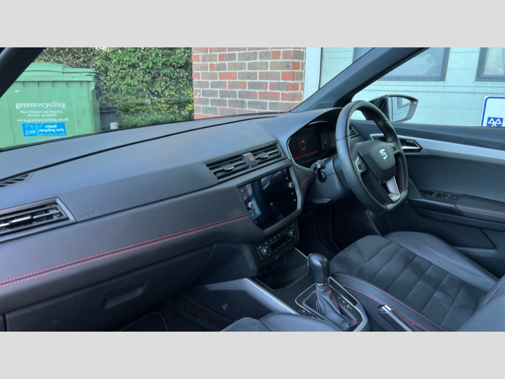 Seat Arona 1.0 TSI 115 FR Sport [EZ] 5dr DSG 'Lights On' Reminder warning buzzer, Cruise control, Digital clock, Digital cockpit, Electric speed sensitive power steering, Front assistant collision mitigation, Full Link Smartphone Integration with Mirror Link, Apple Car Play, Google Android Auto, Low fuel warning light, Outside temperature display, Rear parking sensor, RPM counter, SEAT Drive profile, Trip computer, Dynamic chassis control, Sports suspension, 6 speakers, Bluetooth interface for hands free and audio streaming, DAB Digital radio, SEAT USB media cable, Steering wheel mounted audio controls, Anti theft roof antenna, Auto dimming interior rear view mirror, Automatic activation of hazard warning lights, Automatic headlights, Body coloured bumpers, Body coloured door handle inserts, Chrome grille surround, Chrome roof rails, Chrome window surround, Coming/leaving home lighting function, Dark tinted rear windows, Electric front/rear windows with one touch/auto up/down, Electrically adjustable and heated door mirrors, Electrically folding wing mirrors, Front fog lights, Full LED headlights, Ice metal door side panels, LED daytime running lights, LED licence plate lighting, LED tail lights, Rain sensor windscreen wipers, Rear fog lights, Rear window wash/wipe, Roof colour door mirrors, Twin exhaust pipes, Visible VIN plate, Windshield wiper with intermittent control and potentiometer, 2 cupholders, 3 rear height adjustable headrests, 60/40 split folding rear seat, Active head restraints, Ambient interior lighting, Card holder, Double boot floor, Driver and passenger sunvisors, Driver/front passenger seat height adjustment, Dual zone climate control, Dust/pollen filter, Flat bottomed steering wheel, Footwell ambient lighting, Front courtesy lights, Front reading light, Gear shift indicator, Gearshift paddles on steering wheel, Height/reach adjustable steering column, Illuminated boot, Instrument lighting with brightness control, Isofix attachments on outer rear seats, Leather handbrake, Leather steering wheel and gear knob, Microsuede cloth upholstery, Multi-colour ambient interior lighting, Sports seats, Connectivity pack plus - Arona, Winter pack - Arona, 3 point seatbelts on all rear seats, ABS+EBA, Child locks on rear doors, Driver/Front Passenger airbags, Electronic stability control, Front and rear seatbelt reminder, Front side/curtain airbags, Height adjustable active front headrests, Hill hold control + Tyre Pressure monitor, Multi-Collision braking, Passenger airbag deactivate switch, Tiredness recognition system, Traction control, 2 folding remote keys with window open/close function, Alarm with back-up horn, Immobiliser, Locking wheel bolts, Remote central locking + deadlocks, Tow away protection, Interior chrome line trim, 18" Performance alloy wheels