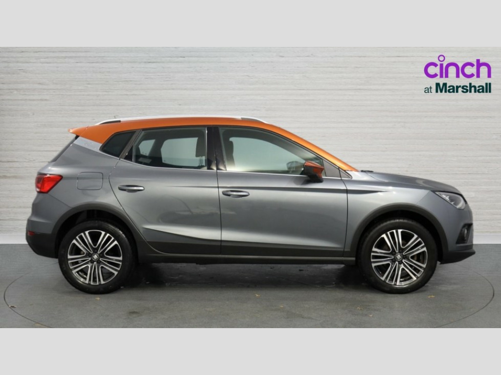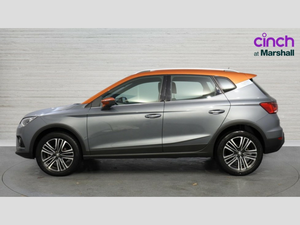 Seat Arona 1.0 TSI 115 Xcellence 5dr 'Lights On' Reminder warning buzzer, Adaptive cruise control, Blind spot monitor, Electric speed sensitive power steering, Front assistant collision mitigation, Outside temperature display, Rear cross traffic alert, Rear parking sensor, Trip computer, Comfort suspension, 6 speakers, Bluetooth interface for hands free and audio streaming, DAB Digital radio, Steering wheel mounted audio controls, Auto dimming interior mirror, Automatic activation of hazard warning lights, Automatic headlights, Body coloured bumpers, Body coloured door handle inserts, Chrome grille bars, Chrome grille surround, Chrome roof rails, Chrome window surround, Coming/leaving home lighting function, Electric front/rear windows with one touch/auto up/down, Electrically adjustable and heated door mirrors, Electrically folding wing mirrors, Front fog lights with static cornering function, Full LED headlights, LED daytime running lights, LED tail lights, Rain sensor windscreen wipers, Rear window wash/wipe, Roof colour door mirrors, 2 cupholders, 3 rear height adjustable headrests, 60/40 split folding rear seat, Ambient interior lighting, Cloth upholstery, Double boot floor, Driver and passenger sunvisors, Driver/front passenger seat height adjustment, Dual zone climate control, Dust/pollen filter, Footwell ambient lighting, Front courtesy lights, Front reading light, Front seat and rear pockets, Height/reach adjustable steering column, Illuminated boot, Isofix attachments on outer rear seats, Leather handbrake, Leather steering wheel and gear knob, Multi-colour ambient interior lighting, Connectivity pack plus - Arona, Storage pack - Arona, 3 point seatbelts on all rear seats, ABS+EBA, Child locks on rear doors, Driver/Front Passenger airbags, Electronic stability control, Front and rear seatbelt reminder, Front side/curtain airbags, Height adjustable active front headrests, Hill hold control + Tyre Pressure monitor, Multi-Collision braking, Passenger airbag deactivate switch, Tiredness recognition system, Traction control, 2 folding remote keys with window open/close function, Alarm with interior monitoring, Immobiliser, Keyless entry and start, Locking wheel bolts, Remote central locking + deadlocks, Interior chrome line trim, 17" Dynamic machined alloy wheels