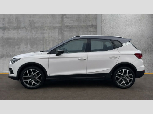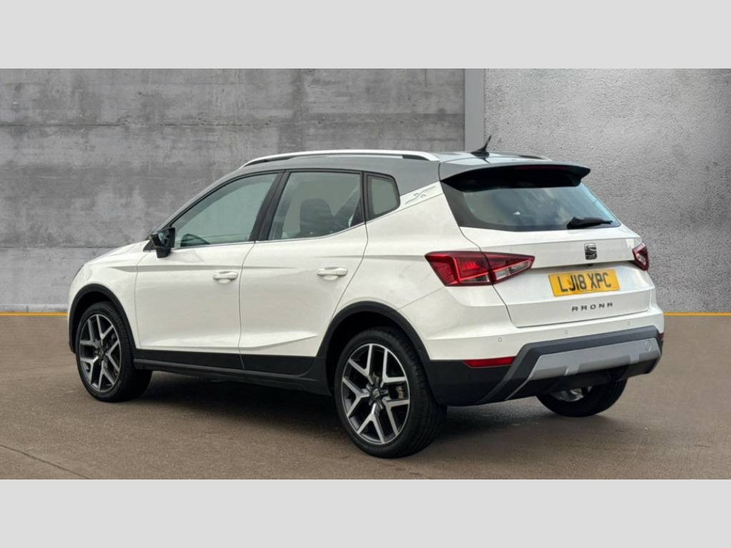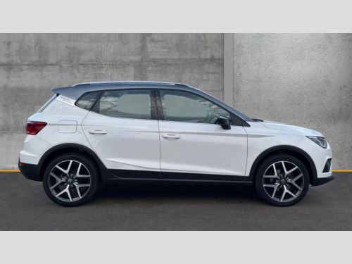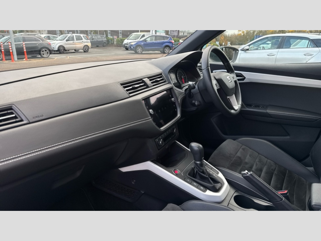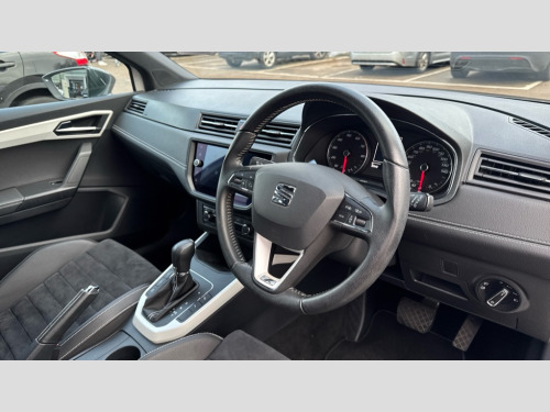 Seat Arona 1.0 TSI 115 Xcellence Lux 5dr DSG 'Lights On' Reminder warning buzzer, Adaptive cruise control, Blind spot monitor, Electric speed sensitive power steering, Front assistant collision mitigation, Front parking sensor, Outside temperature display, Park assist system, Rear cross traffic alert, Rear parking sensor, Rear view camera, SEAT Drive profile, Trip computer, Comfort suspension, 6 speakers, Bluetooth interface for hands free and audio streaming, DAB Digital radio, Steering wheel mounted audio controls, Auto dimming interior mirror, Automatic activation of hazard warning lights, Automatic headlights, Body coloured bumpers, Body coloured door handle inserts, Chrome grille bars, Chrome grille surround, Chrome roof rails, Chrome window surround, Coming/leaving home lighting function, Electric front/rear windows with one touch/auto up/down, Electrically adjustable and heated door mirrors, Electrically folding wing mirrors, Front fog lights with static cornering function, Full LED headlights, LED daytime running lights, LED tail lights, Rain sensor windscreen wipers, Rear window wash/wipe, Roof colour door mirrors, 2 cupholders, 3 rear height adjustable headrests, 60/40 split folding rear seat, Alcantara upholstery, Ambient interior lighting, Double boot floor, Driver and passenger sunvisors, Driver/front passenger seat height adjustment, Dual zone climate control, Dust/pollen filter, Footwell ambient lighting, Front courtesy lights, Front reading light, Front seat and rear pockets, Height/reach adjustable steering column, Illuminated boot, Isofix attachments on outer rear seats, Leather handbrake, Leather steering wheel and gear knob, Connectivity pack plus - Arona, Storage pack - Arona, 3 point seatbelts on all rear seats, ABS+EBA, Child locks on rear doors, Driver/Front Passenger airbags, Electronic stability control, Front and rear seatbelt reminder, Front side/curtain airbags, Height adjustable active front headrests, Hill hold control + Tyre Pressure monitor, Multi-Collision braking, Passenger airbag deactivate switch, Tiredness recognition system, Traction control, 2 folding remote keys with window open/close function, Alarm with interior monitoring, Immobiliser, Keyless entry and start, Locking wheel bolts, Remote central locking + deadlocks, Interior chrome line trim, 18" Performance alloy wheels
