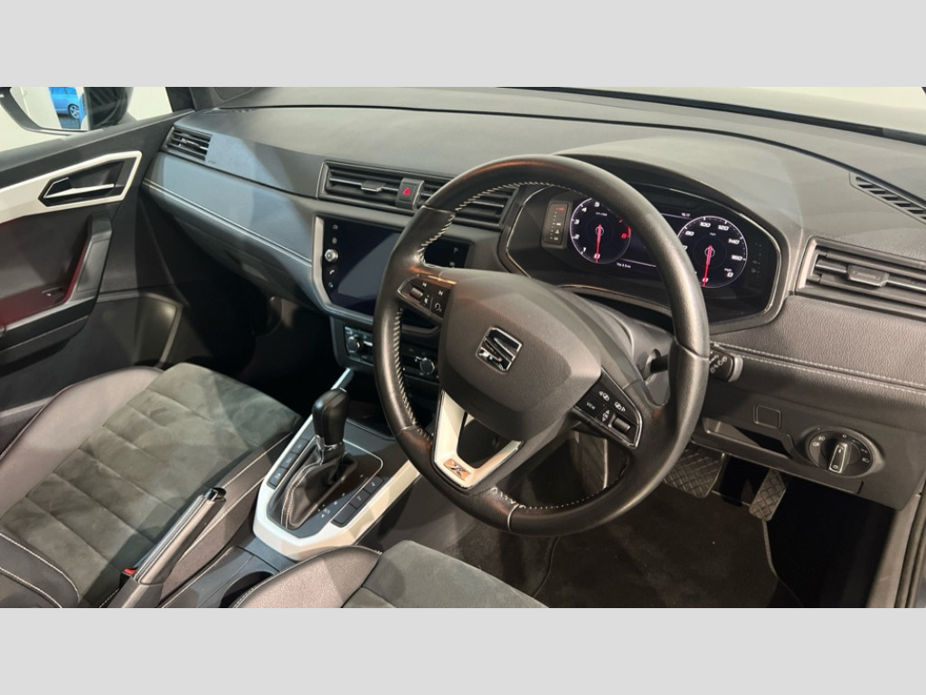 Seat Arona 1.0 TSI 115 Xcellence Lux [EZ] 5dr DSG 'Lights On' Reminder warning buzzer, Adaptive cruise control, Blind spot detection and rear cross traffic alert, Digital clock, Digital cockpit, Electric speed sensitive power steering, Front parking sensor, Full Link Smartphone Integration with Mirror Link, Apple Car Play, Google Android Auto with USB Type C cable for Apple and Android compatibility, Low fuel warning light, Outside temperature display, Park assist system, Rear cross traffic alert, Rear parking sensor, Rear view camera, RPM counter, SEAT Drive profile, Trip computer, Comfort suspension, 6 speakers, Bluetooth interface for hands free and audio streaming, DAB digital radio and AM/FM radio, Steering wheel mounted audio controls, Anti theft roof antenna, Auto dimming interior rear view mirror, Automatic activation of hazard warning lights, Automatic headlights, Body coloured bumpers, Body coloured door handle inserts, Chrome grille bars, Chrome grille surround, Chrome roof rails, Chrome window trim, Coming/leaving home lighting function, Electric front/rear windows with one touch/auto up/down, Electrically adjustable, heated and folding door mirrors, Front grille hot stamping, Full LED headlights dipped and mainbeam + front and rear fog lights, Hidden exhaust pipe, Ice metal door side panels, LED daytime running lights, LED rear tail lights and licence plate lights, Rain sensing wipers, Rear window wash/wipe, Roof colour door mirrors, Visible VIN plate, Windshield wiper with intermittent control and potentiometer, 2 cupholders, 60/40 split folding rear seat, Black interior roof, Double boot floor, Driver sunvisor with covered mirror + card holder, Dual zone climate control, Dust/pollen filter, Front courtesy light with front reading lights, Front seat back storage pockets, Gear shift indicator, Height adjustable front seats, Height/reach adjustable steering column, Illuminated boot, Instrument lighting with brightness control, Interior footwell lighting, ISOFIX points in outer rear seats with top tether anchorage points, Leather steering wheel/gear knob/handbrake, Microsuede cloth upholstery, Multi-colour ambient interior lighting, Passenger sunvisor with vanity mirror, Storage net on centre console, Two front and three rear height adjustable headrests, Connectivity pack plus - Arona, Interior chrome pack - Arona, Storage pack - Arona, Winter pack - Arona, 3 point seatbelts on all rear seats, ABS, Active front headrests, Child locks on rear doors, Driver and front passenger airbags with front passenger airbag de activation, front side and curtain airbags, Electronic stability control, Emergency Brake Assist (EBA) and front assist, Front and rear seatbelt reminder, Hill hold control, Multi-Collision braking, Tiredness recognition system, Traction control, Tyre pressure monitoring system, 2 folding remote keys with window open/close function, Alarm with back-up horn, Electronic engine immobiliser, KESSY Keyless entry and go, Locking wheel bolts, Remote central locking + deadlocks, Tow away protection, Interior chrome line trim, Leatherette dashboard, 18" Performance alloy wheels