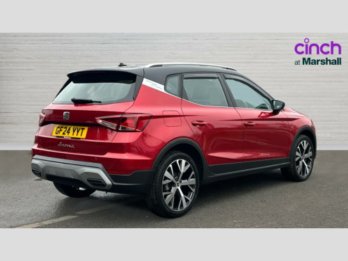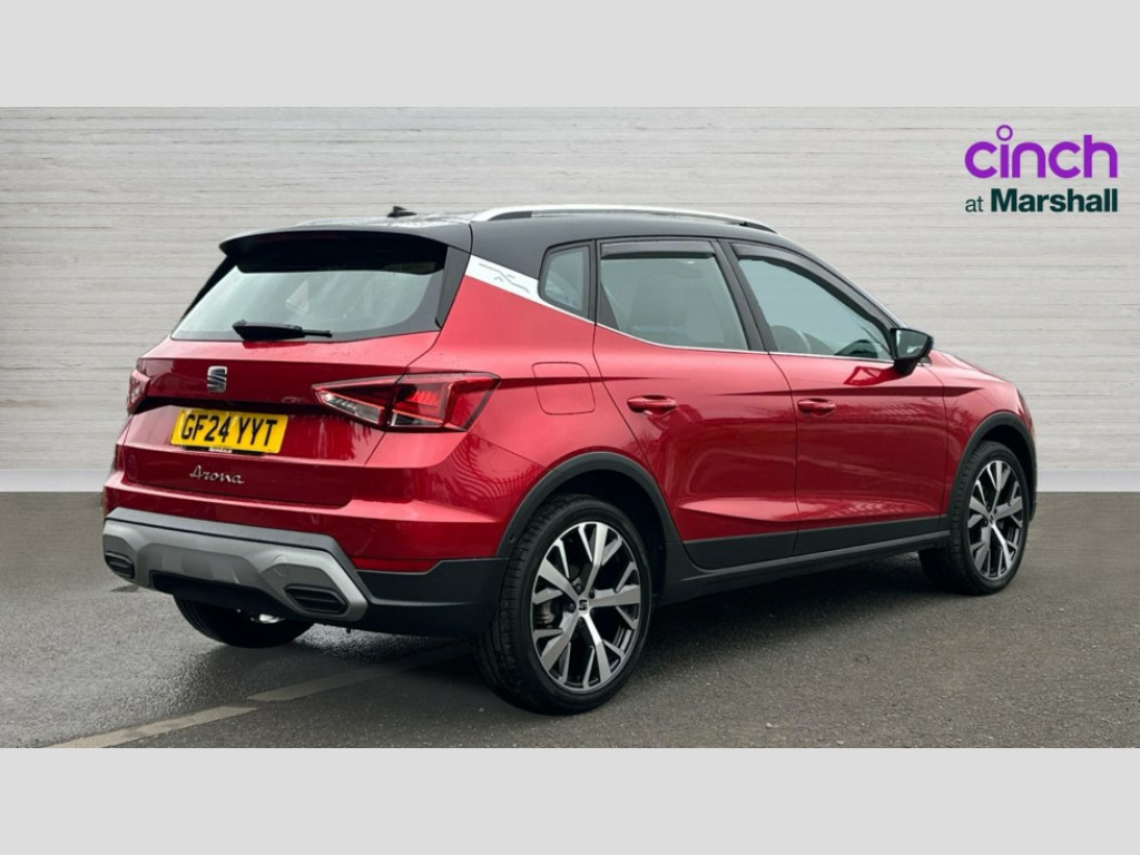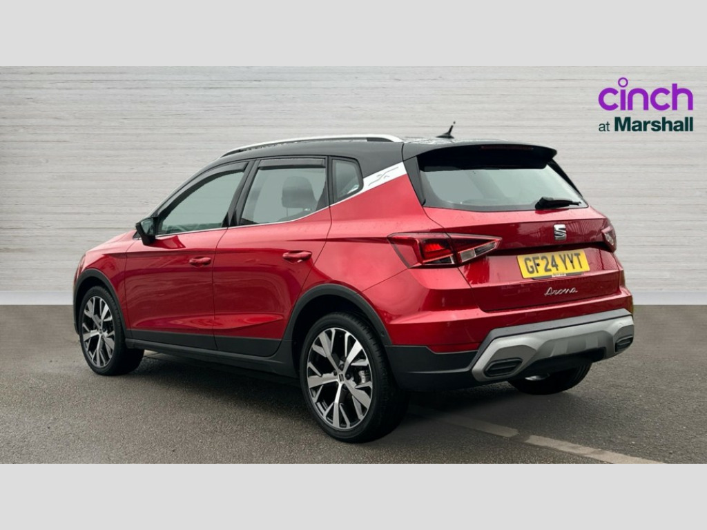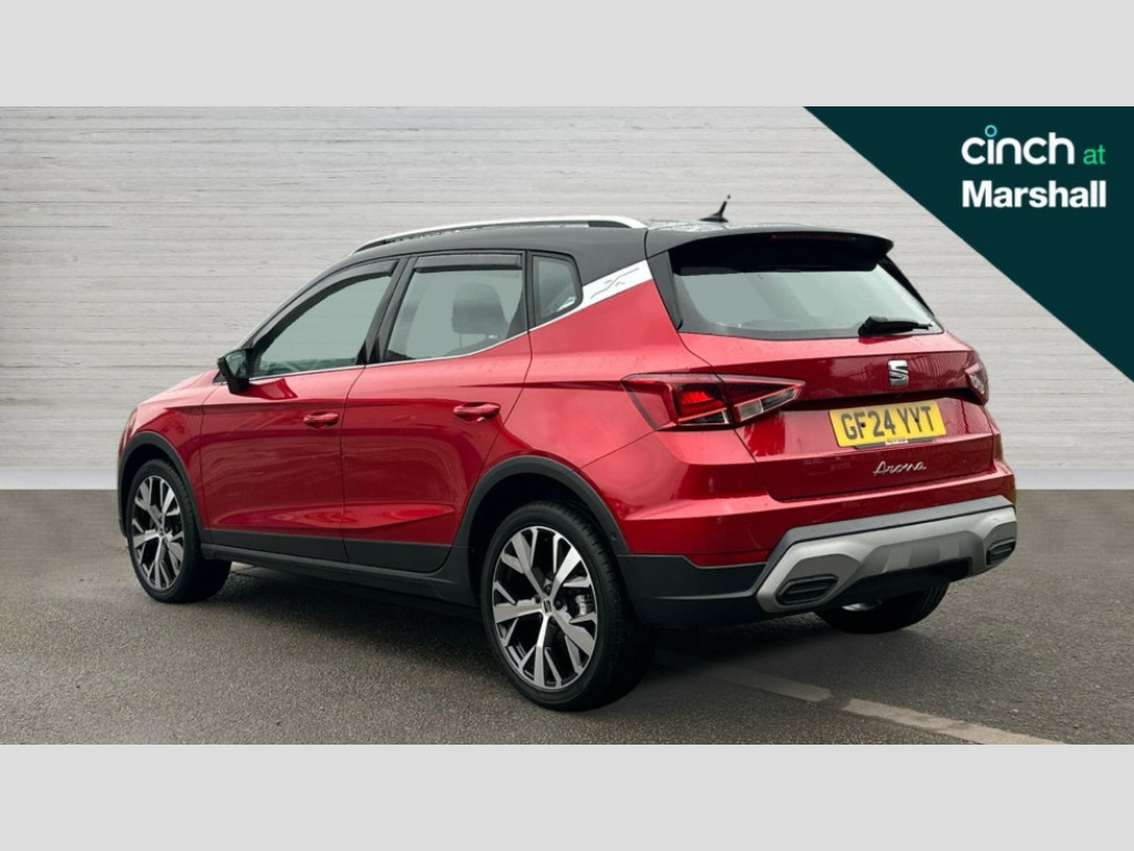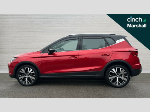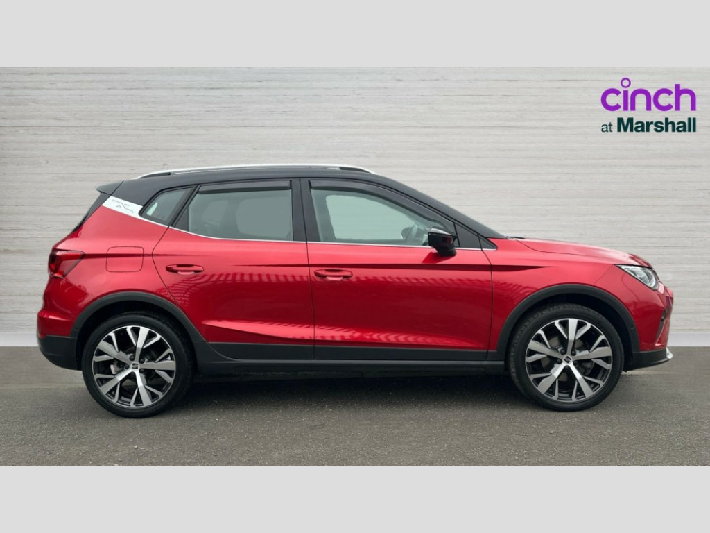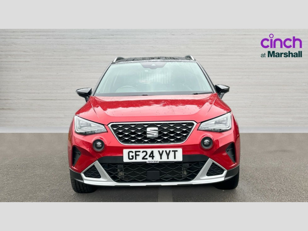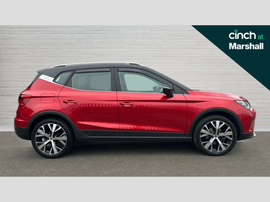 Seat Arona 1.0 TSI 115 XPERIENCE Lux 5dr DSG 'Lights On' Reminder warning buzzer, 10" Digital cockpit, Digital clock, E-call, Electric speed sensitive power steering, Front parking sensor, Full Link Smartphone Integration with Mirror Link, Apple Car Play, Google Android Auto with USB Type C cable for Apple and Android compatibility, Lane keeping system, Low fuel warning light, Outside temperature display, Park assist system, Rear view camera, RPM counter, Trip computer, Wireless phone charger, 9.2" colour touchscreen with navigation system, voice control and USB port (type c), Bluetooth interface for hands free and audio streaming, DAB digital radio and AM/FM radio, Steering wheel mounted audio controls, Anti theft roof antenna, Auto dimming interior rear view mirror, Automatic activation of hazard warning lights, Body coloured bumpers, Body coloured door handle inserts, Chrome roof rails and window surrounds, Electric front/rear windows, Electrically adjustable, heated and folding door mirrors, Front fog lights with cornering function and rear fog light, FULL LED automatic headlights with dynamic headlight range control, coming and leaving home, LED daytime running lights, Hidden exhaust pipe, LED rear tail lights and licence plate lights, Protective side mouldings, Rain sensing wipers, Rear side wing doors, Rear spoiler, Rear window wash/wipe, Roof colour door mirrors, Third brake light, Visible VIN plate, 2 cupholders, 3 seat bench in 2nd row, 60/40 split folding rear seat, Aircare filter, Black interior roof, Double boot floor, Driver sunvisor with covered mirror + card holder, Dual zone climate control, Flat bottomed leather steering wheel/gear knob/handbrake, Front comfort seats, Front courtesy light with front reading lights, Front seat back storage pockets, Gear shift indicator, Heated front seats, Height adjustable front seats, Height/reach adjustable steering column, Illuminated boot, Instrument lighting with brightness control, Interior ambient lighting, Interior light in footwell, central console and door panel, ISOFIX points in outer rear seats with top tether anchorage points, Leather steering wheel/gear knob/handbrake, Microsuede cloth upholstery, Passenger sunvisor with vanity mirror, Potentiometer, Single front passenger seat, Storage net on centre console, Two front and three rear height adjustable headrests, Interior chrome pack - Arona, Safe and driving pack (S) - Arona, Safety and driving pack (M) - Arona, Storage pack - Arona, 3 point seatbelts on all rear seats, ABS, Active front headrests, Child locks on rear doors, Driver and front passenger airbags with front passenger airbag de activation, front side and curtain airbags, Emergency Brake Assist (EBA) and front assist, Front and rear seatbelt reminder, Hill hold control, Multi-Collision braking, Tiredness recognition system, Traction control, Tyre pressure monitoring system, Alarm with back-up horn, Electronic engine immobiliser, KESSY Keyless entry and go, Locking wheel bolts, Remote central locking + deadlocks, Tow away protection, Titan black dashboard, 18" Performance Nuclear grey alloy wheels