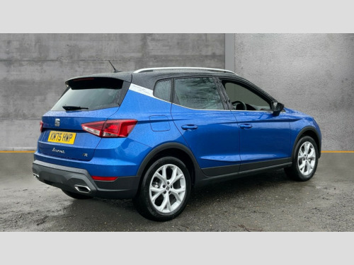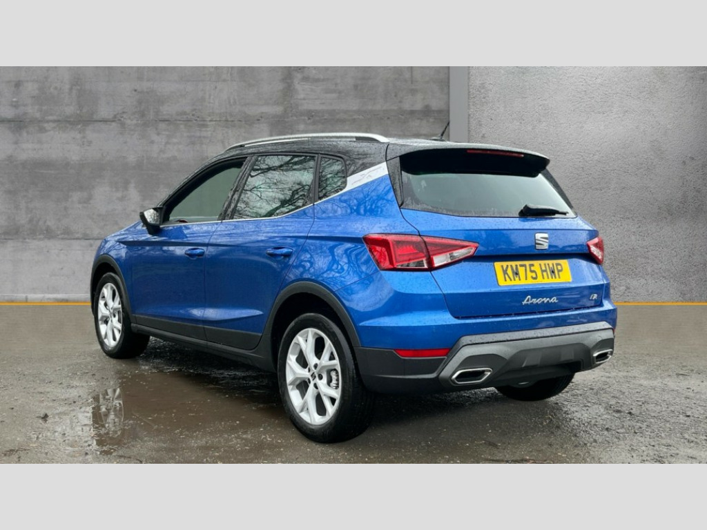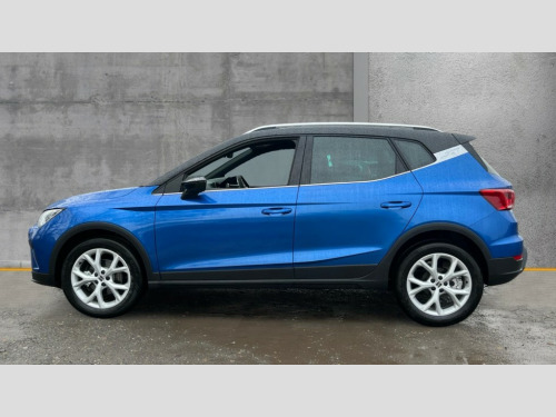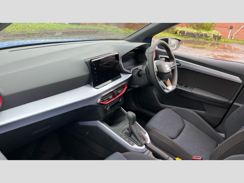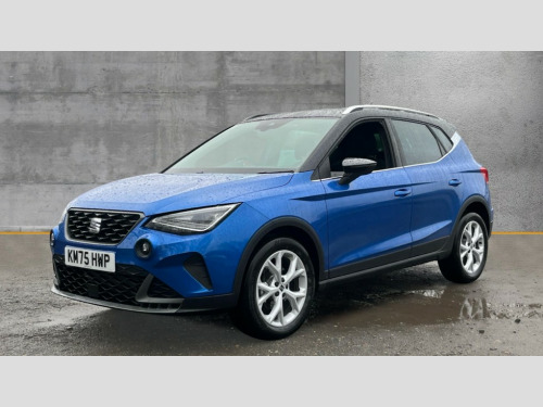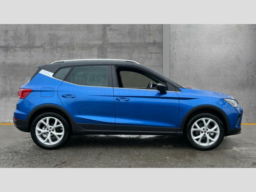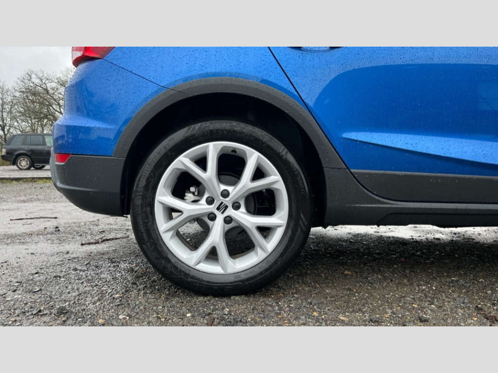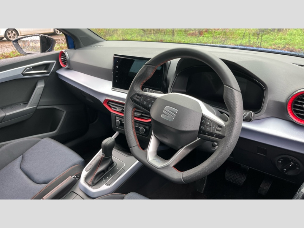 Seat Arona 1.0 TSI 115 FR 5dr DSG 'Lights On' Reminder warning buzzer, 8" Digital cockpit, Digital clock, E-call, Electric speed sensitive power steering, Full link smartphone integration with mirror link, wireless apple carplay, Google android auto + USB Type C cable for apple and android devices, Lane keeping system, Low fuel warning light, Outside temperature display, RPM counter, SEAT Drive profile - Four different models normal-sport-eco-individual, steering response, throttle response and gear shifts mode, Trip computer, Wireless phone charger, 9.2" colour touchscreen with navigation system, voice control and USB port (type c), Bluetooth interface for hands free and audio streaming, DAB digital radio and AM/FM radio, Steering wheel mounted audio controls, Anti theft roof antenna, Auto dimming interior rear view mirror, Automatic activation of hazard warning lights, Body coloured bumpers, Body coloured door handle inserts, Chrome roof rails and window surrounds, Dark tinted rear windows, Electric front/rear windows, Electrically adjustable, heated and folding door mirrors, Front fog lights with cornering function and rear fog light, FULL LED automatic headlights with dynamic headlight range control, coming and leaving home, LED daytime running lights, LED rear tail lights and licence plate lights, Protective side mouldings, Rain sensing wipers, Rear side wing doors, Rear spoiler, Rear window wash/wipe, Roof colour door mirrors, Third brake light, Twin exhaust pipe styling hidden exhaust pipe, Visible VIN plate, 2 cupholders, 3 seat bench in 2nd row, 60/40 split folding rear seat, Aircare filter, Black interior roof, Cloth upholstery, Double boot floor, Driver sunvisor with covered mirror + card holder, Dual zone climate control, Front courtesy light with front reading lights, Gear shift indicator, Height adjustable front seats, Height/reach adjustable steering column, Illuminated air vent surrounds, Illuminated boot, Instrument lighting with brightness control, Interior ambient lighting, Interior light in footwell, central console and door panel, ISOFIX points in outer rear seats with top tether anchorage points, Passenger sunvisor with vanity mirror, Perforated flat bottomed leather steering wheel/gear knob/handbrake with red stitching and FR logo, Potentiometer, Single front passenger seat, Steering wheel mounted gearshift paddles, Two front and three rear height adjustable headrests, Interior chrome pack - Arona, Safe and driving pack (S) - Arona, 3 point seatbelts on all rear seats, ABS, Active front headrests, Child locks on rear doors, Driver and front passenger airbags with front passenger airbag de activation, front side and curtain airbags, Emergency Brake Assist (EBA) and front assist, Front and rear seatbelt reminder, Hill hold control, Multi-Collision braking, Tiredness recognition system, Traction control, Tyre pressure monitoring system, Alarm with back up horn with tow away protection, Deadlock, Electronic engine immobiliser, Locking wheel bolts, Remote central locking, Titan black dashboard, 17" Dynamic alloy wheels
