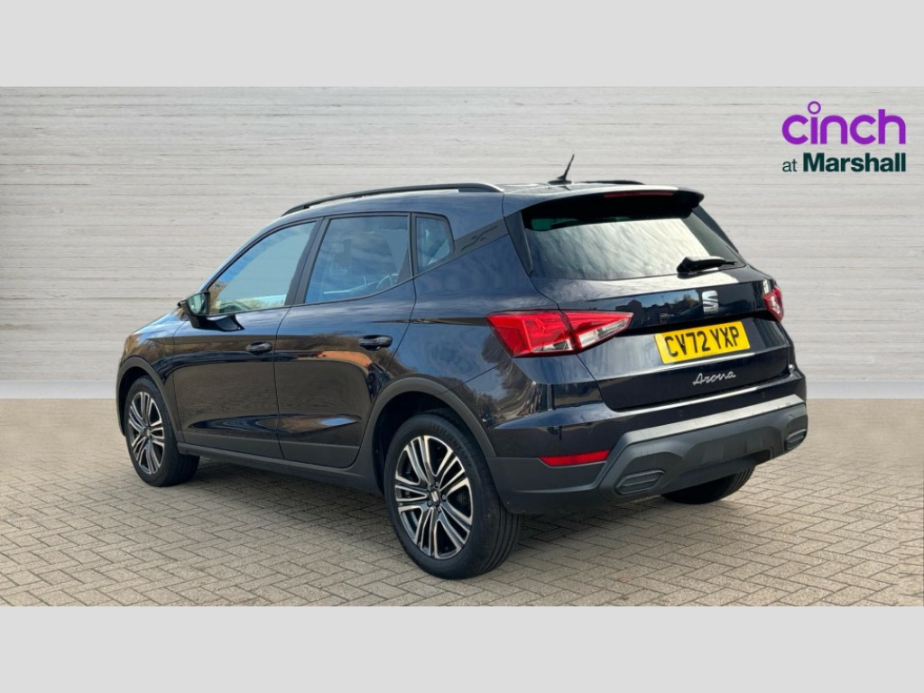 Seat Arona 1.0 TSI SE Edition 5dr 'Lights On' Reminder warning buzzer, Analogue cockpit with physical dials, Cruise control and speed limiter, Digital clock, E-call, Electric speed sensitive power steering, Full Link Smartphone Integration with Mirror Link, Apple Car Play, Google Android Auto with USB Type C cable for Apple and Android compatibility, Lane keeping system, Low fuel warning light, Outside temperature display, Rear parking sensor, RPM counter, Seat connect with safety, service and remote, Trip computer, Wireless phone charger, Bluetooth interface for hands free and audio streaming, DAB digital radio and AM/FM radio, Media system with 8.25" colour touchscreen with USB port (type c), Steering wheel mounted audio controls, Anti theft roof antenna, Automatic activation of hazard warning lights, Black roof rails and window surrounds, Body coloured bumpers, Body coloured door handle inserts, Body coloured door mirrors, Dark tinted rear windows, Dimming rear view mirror, ECO LED automatic headlights and LED daytime running lights, Electric front/rear windows, Electrically adjustable and heated door mirrors, Hidden exhaust pipe, Licence plate lights, Protective side mouldings, Rear fog lights, Rear side wing doors, Rear spoiler, Rear window wash/wipe, Third brake light, Visible VIN plate, Windshield wiper with intermittent control and potentiometer, 2 cupholders, 3 seat bench in 2nd row, 60/40 split folding rear seat, Cloth upholstery, Double boot floor, Driver sunvisor with covered mirror + card holder, Dual zone climate control, Dust/pollen filter, Front courtesy light with front reading lights, Gear shift indicator, Grey interior roof, Height adjustable front seats, Height/reach adjustable steering column, Illuminated boot, Instrument lighting with brightness control, ISOFIX points in outer rear seats with top tether anchorage points, Leather steering wheel/gear knob/handbrake, Passenger sunvisor with vanity mirror, Single front passenger seat, Two front and three rear height adjustable headrests, Interior chrome pack - Arona, 3 point seatbelts on all rear seats, ABS, Active front headrests, Child locks on rear doors, Driver and front passenger airbags with front passenger airbag de activation, front side and curtain airbags, Electronic stability control, Emergency Brake Assist (EBA) and front assist, Front and rear seatbelt reminder, Hill hold control, Multi-Collision braking, Tiredness recognition system, Traction control, Tyre pressure monitoring system, Electronic engine immobiliser, KESSY Keyless entry and go, Locking wheel bolts, Remote central locking + deadlocks, Titan black dashboard, 17" Dynamic machined alloy wheels