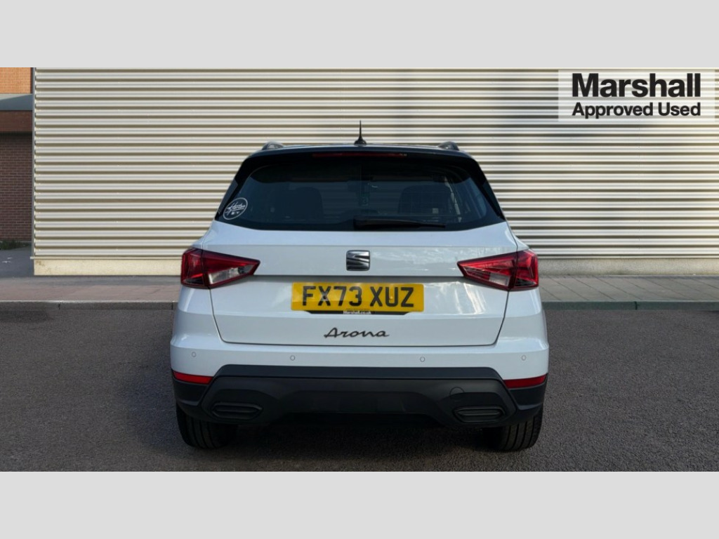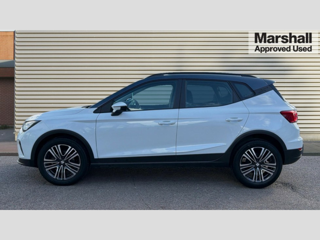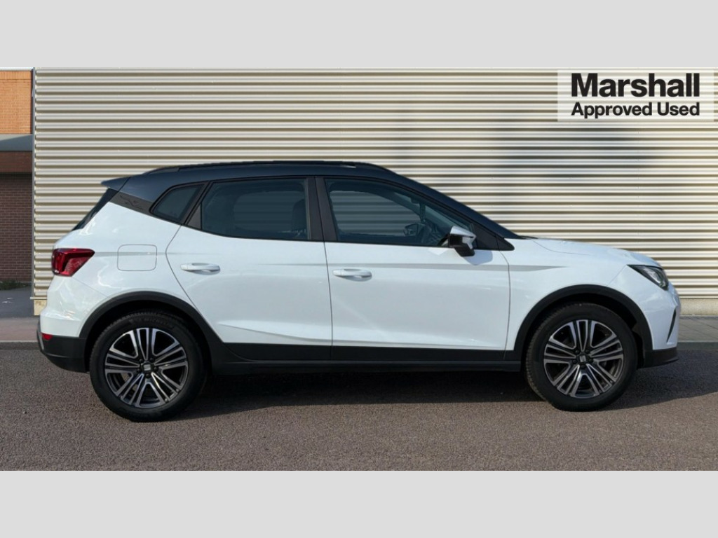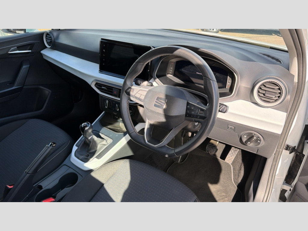 Seat Arona 1.0 TSI SE Technology 5dr 'Lights On' Reminder warning buzzer, 8" Digital cockpit, Cruise control and speed limiter, Digital clock, E-call, Electric speed sensitive power steering, Full Link Smartphone Integration with Mirror Link, Apple Car Play, Google Android Auto with USB Type C cable for Apple and Android compatibility, Lane keeping system, Low fuel warning light, Outside temperature display, Rear parking sensor, RPM counter, Seat connect with safety, service, remote and online, Trip computer, Wireless phone charger, 9.2" colour touchscreen with navigation system, voice control and USB port (type c), Bluetooth interface for hands free and audio streaming, DAB digital radio and AM/FM radio, Steering wheel mounted audio controls, Anti theft roof antenna, Automatic activation of hazard warning lights, Black roof rails and window surrounds, Body coloured bumpers, Body coloured door handle inserts, Body coloured door mirrors, Dimming rear view mirror, ECO LED automatic headlights and LED daytime running lights, Electric adjustable door mirrors, Electric front/rear windows, Hidden exhaust pipe, Licence plate lights, Protective side mouldings, Rain sensing wipers, Rear fog lights, Rear side wing doors, Rear spoiler, Rear window wash/wipe, Third brake light, Visible VIN plate, Windshield wiper with intermittent control and potentiometer, 2 cupholders, 3 seat bench in 2nd row, 60/40 split folding rear seat, Air conditioning, Cloth upholstery, Double boot floor, Driver sunvisor with covered mirror + card holder, Dust/pollen filter, Gear shift indicator, Grey interior roof, Height adjustable front seats, Height/reach adjustable steering column, Illuminated boot, Instrument lighting with brightness control, ISOFIX points in outer rear seats with top tether anchorage points, Leather steering wheel/gear knob/handbrake, Passenger sunvisor with vanity mirror, Single front passenger seat, Two front and three rear height adjustable headrests, Interior chrome pack - Arona, 3 point seatbelts on all rear seats, ABS, Active front headrests, Child locks on rear doors, Driver and front passenger airbags with front passenger airbag de activation, front side and curtain airbags, Electronic stability control, Emergency Brake Assist (EBA) and front assist, Front and rear seatbelt reminder, Hill hold control, Multi-Collision braking, Tiredness recognition system, Traction control, Tyre pressure monitoring system, Electronic engine immobiliser, Locking wheel bolts, Remote central locking + deadlocks, Titan black dashboard, 17" Dynamic machined alloy wheels