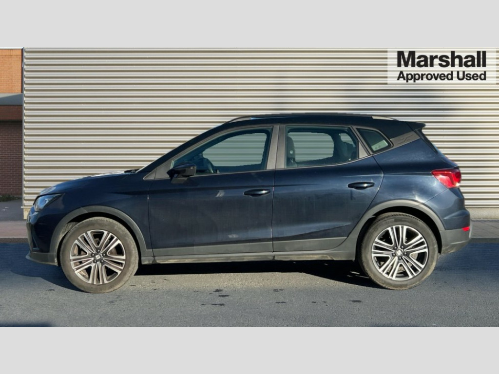 Seat Arona 1.0 TSI SE Technology 5dr 'Lights On' Reminder warning buzzer, Cruise control and speed limiter, Digital clock, E-call, Electric speed sensitive power steering, Full Link Smartphone Integration with Mirror Link, Apple Car Play, Google Android Auto with USB Type C cable for Apple and Android compatibility, Lane keeping system, Low fuel warning light, Outside temperature display, Rear parking sensor, RPM counter, Seat connect with safety, service, remote and online, Trip computer, Bluetooth interface for hands free and audio streaming, DAB digital radio and AM/FM radio, Steering wheel mounted audio controls, Anti theft roof antenna, Automatic activation of hazard warning lights, Black roof rails and window surrounds, Black window trims, Body coloured bumpers, Body coloured door handle inserts, Body coloured door mirrors, Dimming rear view mirror, ECO LED automatic headlights and LED daytime running lights, Electric adjustable door mirrors, Electric front/rear windows, Hidden exhaust pipe, Protective side mouldings, Rain sensing wipers, Rear side wing doors, Rear spoiler, Rear window wash/wipe, Third brake light, Visible VIN plate, Windshield wiper with intermittent control and potentiometer, 2 cupholders, 3 seat bench in 2nd row, 60/40 split folding rear seat, Air conditioning, Cloth upholstery, Double boot floor, Driver sunvisor with covered mirror + card holder, Dust/pollen filter, Flat bottomed leather steering wheel/gear knob/handbrake, Front courtesy light with front reading lights, Gear shift indicator, Grey interior roof, Height adjustable front seats, Height/reach adjustable steering column, Honey mustatd coloured air vent, Illuminated boot, Instrument lighting with brightness control, ISOFIX points in outer rear seats with top tether anchorage points, Passenger sunvisor with vanity mirror, Single front passenger seat, Two front and three rear height adjustable headrests, Connectivity pack plus - Arona, Interior chrome pack - Arona, 3 point seatbelts on all rear seats, ABS, Active front headrests, Child locks on rear doors, Driver and front passenger airbags with front passenger airbag de activation, front side and curtain airbags, Electronic stability control, Emergency Brake Assist (EBA) and front assist, Front and rear seatbelt reminder, Hill hold control, Multi-Collision braking, Tiredness recognition system, Traction control, Tyre pressure monitoring system, Electronic engine immobiliser, Locking wheel bolts, Remote central locking + deadlocks, Titan black dashboard, 17" Dynamic machined alloy wheels