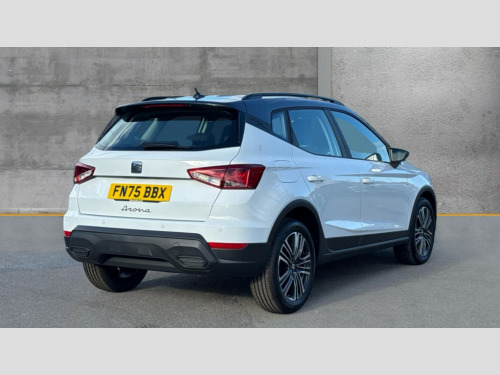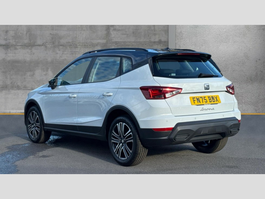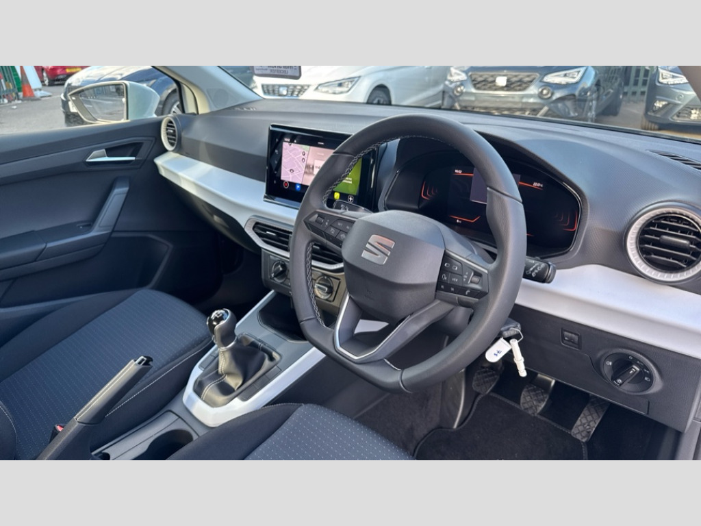 Seat Arona 1.0 TSI SE Technology 5dr 'Lights On' Reminder warning buzzer, 8" Digital cockpit, Cruise control and speed limiter, Digital clock, E-call, Electric speed sensitive power steering, Full link smartphone integration with mirror link, wireless apple carplay, Google android auto + USB Type C cable for apple and android devices, Lane keeping system, Low fuel warning light, Outside temperature display, RPM counter, Trip computer, Wireless phone charger, 9.2" colour touchscreen with navigation system, voice control and USB port (type c), Bluetooth interface for hands free and audio streaming, DAB digital radio and AM/FM radio, Steering wheel mounted audio controls, Anti theft roof antenna, Automatic activation of hazard warning lights, Black roof rails and window surrounds, Body coloured bumpers, Body coloured door handle inserts, Body coloured door mirrors, Dimming rear view mirror, ECO LED automatic headlights and LED daytime running lights, Electric adjustable door mirrors, Electric front/rear windows, Hidden exhaust pipe, LED rear tail lights and licence plate lights, Licence plate lights, Protective side mouldings, Rain sensing wipers, Rear fog lights, Rear side wing doors, Rear spoiler, Rear window wash/wipe, Third brake light, Visible VIN plate, 2 cupholders, 3 seat bench in 2nd row, 60/40 split folding rear seat, Air conditioning, Cloth upholstery, Double boot floor, Driver sunvisor with covered mirror + card holder, Dust/pollen filter, Gear shift indicator, Grey interior air vents, Grey interior roof, Height adjustable front seats, Height/reach adjustable steering column, Illuminated boot, Instrument lighting with brightness control, ISOFIX points in outer rear seats with top tether anchorage points, Leather steering wheel/gear knob/handbrake, Passenger sunvisor with vanity mirror, Potentiometer, Single front passenger seat, Two front and three rear height adjustable headrests, Interior chrome pack - Arona, Safe and driving pack (S) - Arona, 3 point seatbelts on all rear seats, ABS, Active front headrests, Child locks on rear doors, Driver and front passenger airbags with front passenger airbag de activation, front side and curtain airbags, Emergency Brake Assist (EBA) and front assist, Forward collision warning and autonomous emergency braking, Front and rear seatbelt reminder, Hill hold control, Multi-Collision braking, Tiredness recognition system, Traction control, Tyre pressure monitoring system, Deadlock, Electronic engine immobiliser, Locking wheel bolts, Remote central locking, Titan black dashboard, 17" Dynamic machined alloy wheels