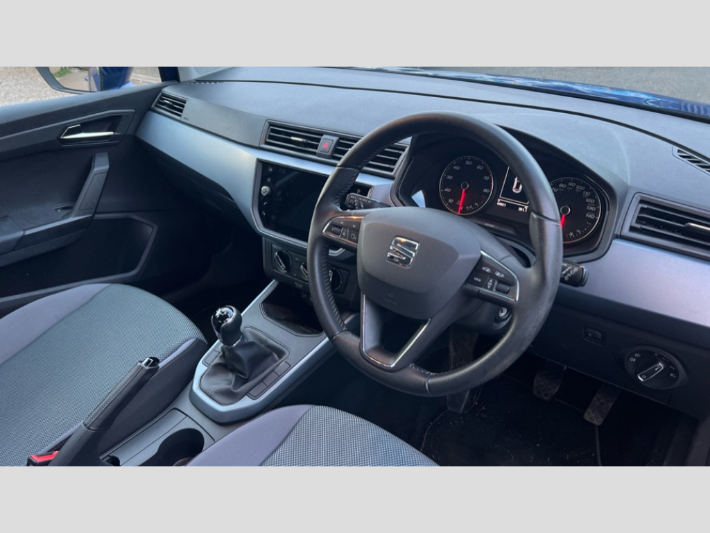 Seat Arona 1.0 TSI SE Technology [EZ] 5dr 'Lights On' Reminder warning buzzer, Cruise control, Digital clock, Electric speed sensitive power steering, Full Link Smartphone Integration with Mirror Link, Apple Car Play, Google Android Auto with USB Type C cable for Apple and Android compatibility, Low fuel warning light, Outside temperature display, Rear parking sensor, RPM counter, Trip computer, Comfort suspension, 6 speakers, Bluetooth interface for hands free and audio streaming, DAB digital radio and AM/FM radio, Steering wheel mounted audio controls, Anti theft roof antenna, Automatic activation of hazard warning lights, Automatic headlights, Black roof rails, Black window trims, Body coloured bumpers, Body coloured door handle inserts, Body coloured door mirrors, Chrome front grille frame, Dimming rear view mirror, Electric adjustable door mirrors, Electric front/rear windows with one touch/auto up/down, Electric headlight adjustment, Front fog lights with cornering function and rear fog light, Hidden exhaust pipe, LED daytime running lights, LED rear tail lights and licence plate lights, Rear window wash/wipe, Visible VIN plate, Windshield wiper with intermittent control and potentiometer, 2 cupholders, 60/40 split folding rear seat, Air conditioning, Cloth upholstery, Double boot floor, Driver sunvisor with covered mirror + card holder, Dust/pollen filter, Front courtesy light with front reading lights, Gear shift indicator, Grey interior roof, Height adjustable front seats, Height/reach adjustable steering column, Illuminated boot, Instrument lighting with brightness control, Interior footwell lighting, ISOFIX points in outer rear seats with top tether anchorage points, Leather steering wheel/gear knob/handbrake, Multi-colour ambient interior lighting, Passenger sunvisor with vanity mirror, Two front and three rear height adjustable headrests, Connectivity pack plus - Arona, Interior chrome pack - Arona, 3 point seatbelts on all rear seats, ABS, Active front headrests, Child locks on rear doors, Driver and front passenger airbags with front passenger airbag de activation, front side and curtain airbags, Electronic stability control, Emergency Brake Assist (EBA) and front assist, Front and rear seatbelt reminder, Hill hold control, Multi-Collision braking, Tiredness recognition system, Traction control, Tyre pressure monitoring system, 2 folding remote keys with window open/close function, Electronic engine immobiliser, Locking wheel bolts, Remote central locking + deadlocks, Interior chrome line trim, Plastic grey dashboard, 17" Dynamic alloy wheels