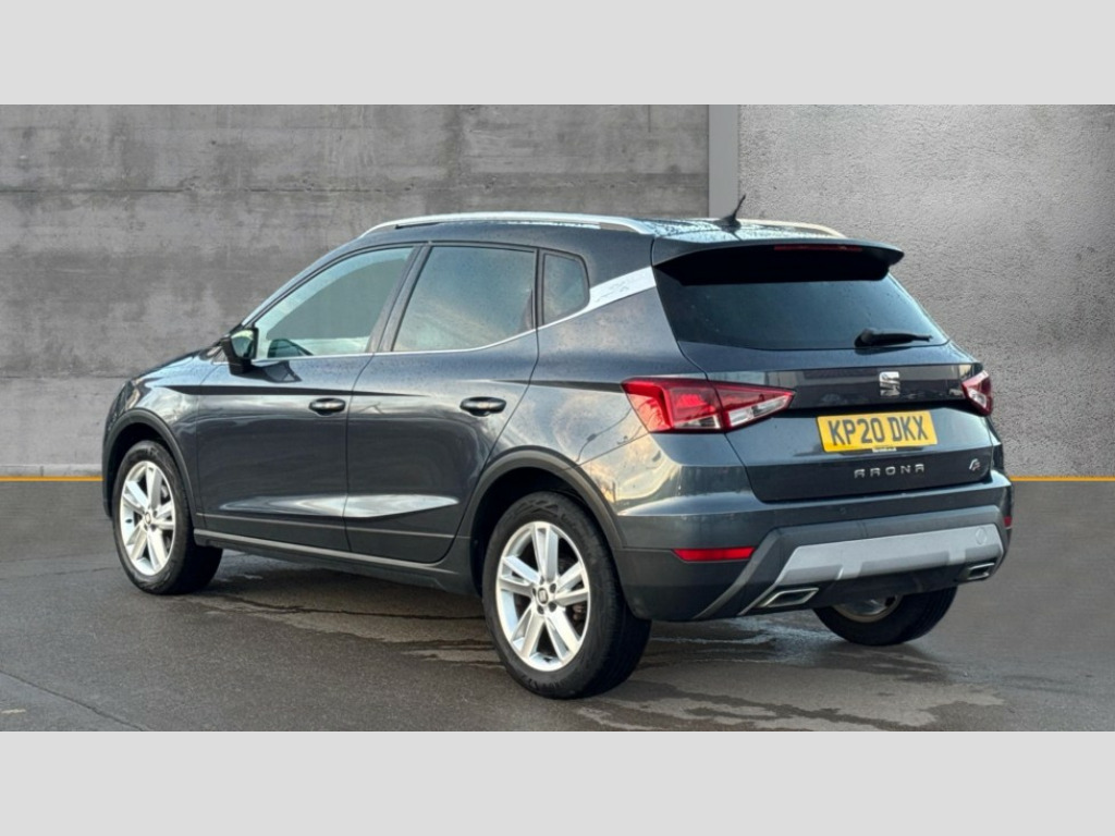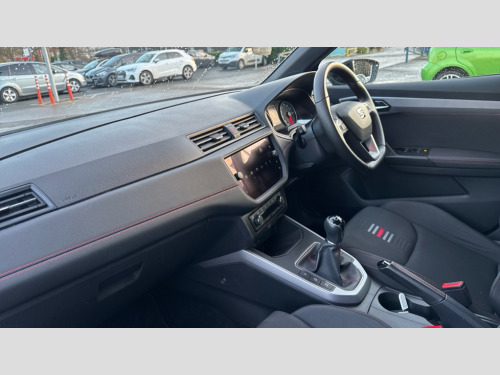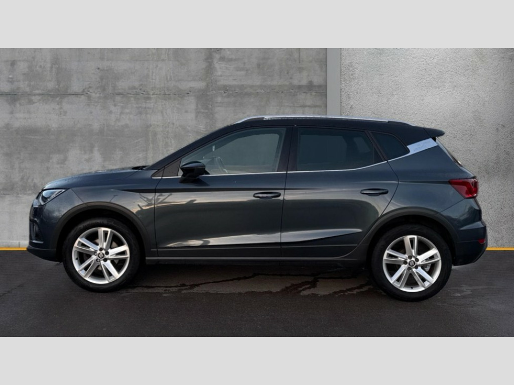 Seat Arona 1.5 TSI EVO FR [EZ] 5dr 'Lights On' Reminder warning buzzer, Cruise control, Digital clock, Electric speed sensitive power steering, Full Link Smartphone Integration with Mirror Link, Apple Car Play, Google Android Auto with USB Type C cable for Apple and Android compatibility, Low fuel warning light, Outside temperature display, Rear parking sensor, RPM counter, SEAT Drive profile - Four different models normal-sport-eco-individual, steering response, throttle response, Trip computer, Sports suspension, 6 speakers, Bluetooth interface for hands free and audio streaming, DAB digital radio and AM/FM radio, Steering wheel mounted audio controls, Anti theft roof antenna, Auto dimming interior rear view mirror, Automatic activation of hazard warning lights, Automatic headlights, Body coloured bumpers, Body coloured door handle inserts, Chrome front grille frame, Chrome roof rails, Chrome window trim, Coming/leaving home lighting function, Dark tinted rear windows, Electric front/rear windows with one touch/auto up/down, Electrically adjustable, heated and folding door mirrors, Full LED headlights dipped and mainbeam + front and rear fog lights, LED daytime running lights, LED rear tail lights and licence plate lights, Rain sensing wipers, Rear window wash/wipe, Roof colour door mirrors, Twin exhaust pipe styling hidden exhaust pipe, Visible VIN plate, Windshield wiper with intermittent control and potentiometer, 2 cupholders, 60/40 split folding rear seat, Black interior roof, Double boot floor, Driver sunvisor with covered mirror + card holder, Dual zone climate control, Dust/pollen filter, Front courtesy light with front reading lights, Front sport seats, Gear shift indicator, Height adjustable front seats, Height/reach adjustable steering column, Illuminated boot, Instrument lighting with brightness control, Interior footwell lighting, ISOFIX points in outer rear seats with top tether anchorage points, Multi-colour ambient interior lighting, Nora cloth upholstery, Passenger sunvisor with vanity mirror, Perforated flat bottomed leather steering wheel/gear knob/handbrake with red stitching and FR logo, Two front and three rear height adjustable headrests, Connectivity pack plus - Arona, Interior chrome pack - Arona, 3 point seatbelts on all rear seats, ABS, Active front headrests, Child locks on rear doors, Driver and front passenger airbags with front passenger airbag de activation, front side and curtain airbags, Electronic stability control, Emergency Brake Assist (EBA) and front assist, Front and rear seatbelt reminder, Hill hold control, Multi-Collision braking, Tiredness recognition system, Traction control, Tyre pressure monitoring system, 2 folding remote keys with window open/close function, Alarm with back-up horn, Electronic engine immobiliser, Locking wheel bolts, Remote central locking + deadlocks, Tow away protection, Interior chrome line trim, Leatherette dashboard, 17" Dynamic alloy wheels