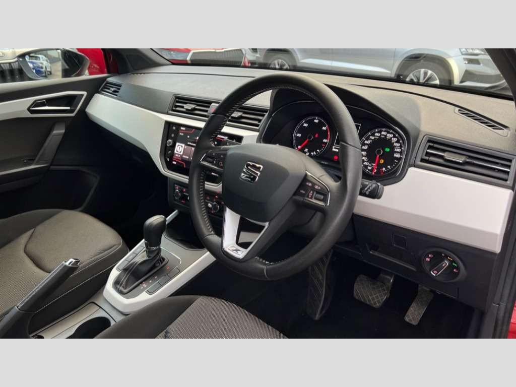 Seat Arona 1.6 TDI Xcellence 5dr DSG 'Lights On' Reminder warning buzzer, Adaptive cruise control, Blind spot monitor, Electric speed sensitive power steering, Front assistant collision mitigation, Outside temperature display, Rear cross traffic alert, Rear parking sensor, Trip computer, Comfort suspension, 6 speakers, Bluetooth interface for hands free and audio streaming, DAB Digital radio, Steering wheel mounted audio controls, Auto dimming interior mirror, Automatic activation of hazard warning lights, Automatic headlights, Body coloured bumpers, Body coloured door handle inserts, Chrome grille bars, Chrome grille surround, Chrome roof rails, Chrome window surround, Coming/leaving home lighting function, Electric front/rear windows with one touch/auto up/down, Electrically adjustable and heated door mirrors, Electrically folding wing mirrors, Front fog lights with static cornering function, Full LED headlights, LED daytime running lights, LED tail lights, Rain sensor windscreen wipers, Rear window wash/wipe, Roof colour door mirrors, 2 cupholders, 3 rear height adjustable headrests, 60/40 split folding rear seat, Ambient interior lighting, Cloth upholstery, Double boot floor, Driver and passenger sunvisors, Driver/front passenger seat height adjustment, Dual zone climate control, Dust/pollen filter, Footwell ambient lighting, Front courtesy lights, Front reading light, Front seat and rear pockets, Height/reach adjustable steering column, Illuminated boot, Isofix attachments on outer rear seats, Leather handbrake, Leather steering wheel and gear knob, Multi-colour ambient interior lighting, Connectivity pack plus - Arona, Storage pack - Arona, 3 point seatbelts on all rear seats, ABS+EBA, Child locks on rear doors, Driver/Front Passenger airbags, Electronic stability control, Front and rear seatbelt reminder, Front side/curtain airbags, Height adjustable active front headrests, Hill hold control + Tyre Pressure monitor, Multi-Collision braking, Passenger airbag deactivate switch, Tiredness recognition system, Traction control, 2 folding remote keys with window open/close function, Alarm with interior monitoring, Immobiliser, Keyless entry and start, Locking wheel bolts, Remote central locking + deadlocks, Interior chrome line trim, 17" Dynamic machined alloy wheels