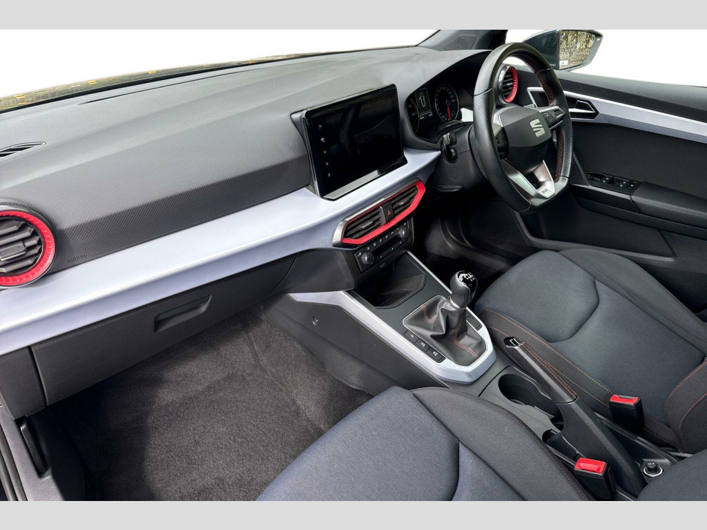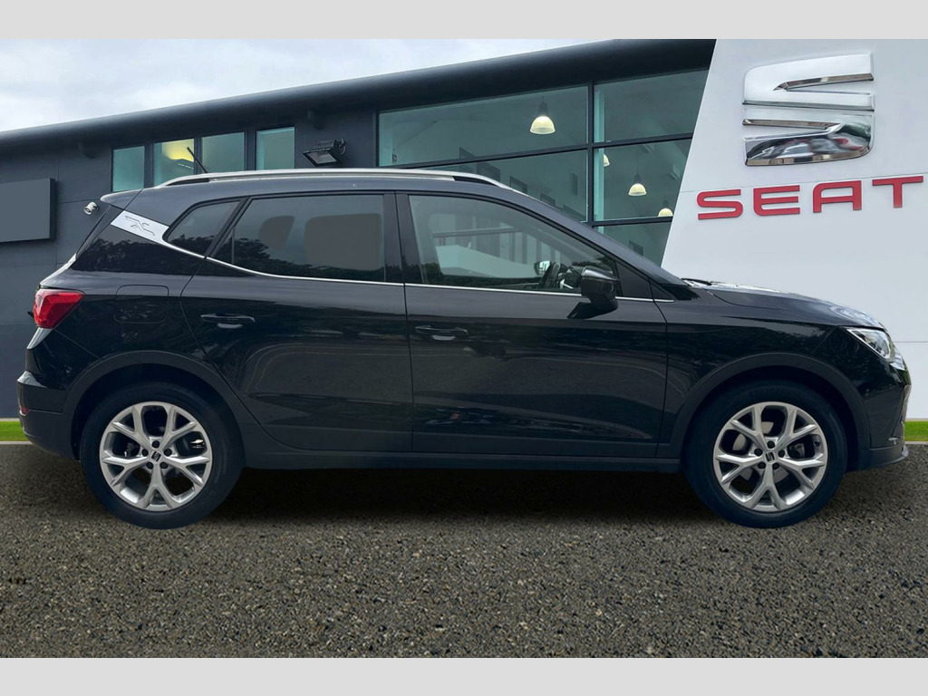 'Lights On' Reminder warning buzzer, Digital clock, E-call, Electric speed sensitive power steering, Full Link Smartphone Integration with Mirror Link, Apple Car Play, Google Android Auto with USB Type C cable for Apple and Android compatibility, Lane keeping system, Low fuel warning light, Outside temperature display, Rear parking sensor, RPM counter, Seat connect with safety, service, remote and online, SEAT Drive profile - Four different models normal-sport-eco-individual, steering response, throttle response, Trip computer, Bluetooth interface for hands free and audio streaming, DAB digital radio and AM/FM radio, Steering wheel mounted audio controls, Anti theft roof antenna, Auto dimming interior rear view mirror, Automatic activation of hazard warning lights, Body coloured bumpers, Body coloured door handle inserts, Chrome roof rails and window surrounds, Chrome window trim, Dark tinted rear windows, Electric front/rear windows, Electrically adjustable, heated and folding door mirrors, FULL LED automatic headlights with dynamic headlight range control, coming and leaving home, LED daytime running lights, LED rear tail lights and licence plate lights, Protective side mouldings, Rain sensing wipers, Rear side wing doors, Rear spoiler, Rear window wash/wipe, Roof colour door mirrors, Third brake light, Twin exhaust pipe styling hidden exhaust pipe, Visible VIN plate, Windshield wiper with intermittent control and potentiometer, 2 cupholders, 3 seat bench in 2nd row, 60/40 split folding rear seat, Aircare filter, Black interior roof, Cloth upholstery, Double boot floor, Driver sunvisor with covered mirror + card holder, Dual zone climate control, Front courtesy light with 2x front and 2x rear reading lights, Front sport seats, Gear shift indicator, Height adjustable front seats, Height/reach adjustable steering column, Illuminated boot, Instrument lighting with brightness control, Interior ambient lighting, Interior light in footwell, central console and door panel, ISOFIX points in outer rear seats with top tether anchorage points, Passenger sunvisor with vanity mirror, Perforated flat bottomed leather steering wheel/gear knob/handbrake with red stitching and FR logo, Single front passenger seat, Two front and three rear height adjustable headrests, Connectivity pack plus - Arona, Interior chrome pack - Arona, 3 point seatbelts on all rear seats, ABS, Active front headrests, Child locks on rear doors, Driver and front passenger airbags with front passenger airbag de activation, front side and curtain airbags, Electronic stability control, Emergency Brake Assist (EBA) and front assist, Front and rear seatbelt reminder, Hill hold control, Multi-Collision braking, Tiredness recognition system, Traction control, Tyre pressure monitoring system, Alarm with back-up horn, Electronic engine immobiliser, Locking wheel bolts, Remote central locking + deadlocks, Tow away protection, Titan black dashboard, 17" Dynamic alloy wheels