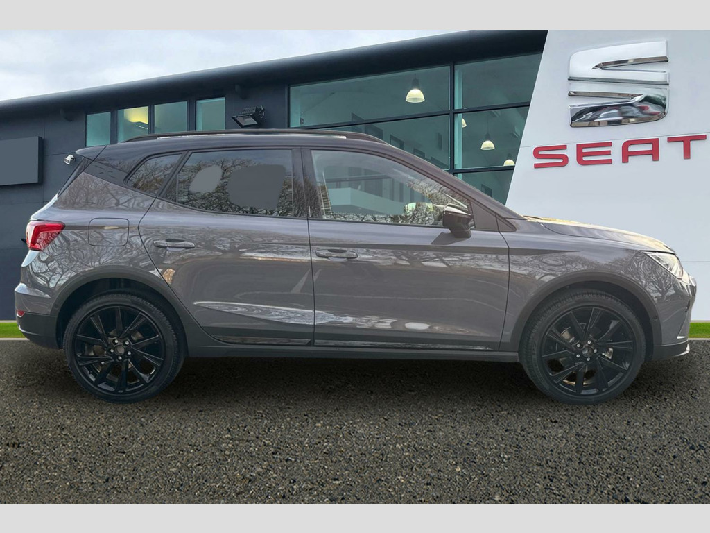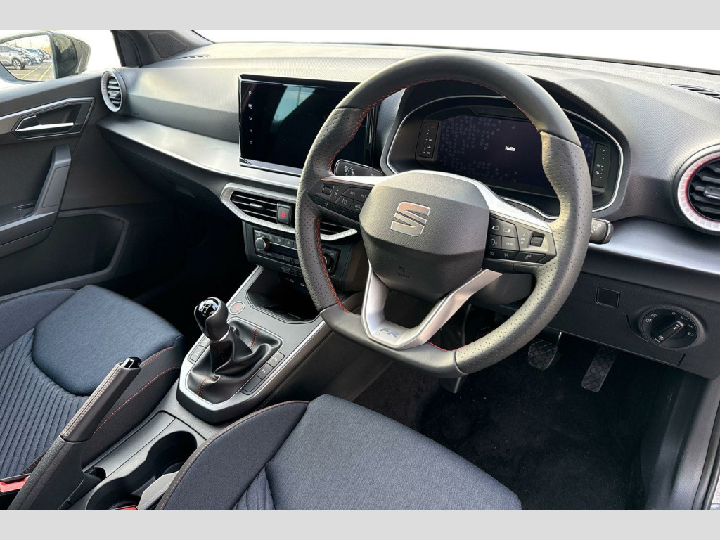 'Lights On' Reminder warning buzzer, 10" Digital cockpit, Digital clock, E-call, Electric speed sensitive power steering, Full link smartphone integration with mirror link, wireless apple carplay, Google android auto + USB Type C cable for apple and android devices, Lane keeping system, Low fuel warning light, Outside temperature display, Park assist system, Rear view camera, RPM counter, SEAT Drive profile - Four different models normal-sport-eco-individual, steering response, throttle response, Trip computer, Wireless phone charger, 9.2" colour touchscreen with navigation system, voice control and USB port (type c), Bluetooth interface for hands free and audio streaming, DAB digital radio and AM/FM radio, Steering wheel mounted audio controls, Anti theft roof antenna, Auto dimming interior rear view mirror, Automatic activation of hazard warning lights, Black roof rails and window surrounds, Black side skirts, Body coloured bumpers, Body coloured door handle inserts, Dark tinted rear windows, Electric front/rear windows, Electrically adjustable, heated and folding door mirrors, Front fog lights with cornering function and rear fog light, FULL LED automatic headlights with dynamic headlight range control, coming and leaving home, LED daytime running lights, Lasered lettering on B pillar, LED rear tail lights and licence plate lights, Protective side mouldings, Rain sensing wipers, Rear side wing doors, Rear spoiler, Rear window wash/wipe, Roof colour door mirrors, Third brake light, Twin exhaust pipe styling hidden exhaust pipe, Visible VIN plate, 2 cupholders, 3 seat bench in 2nd row, 60/40 split folding rear seat, Aircare filter, Black interior roof, Double boot floor, Driver sunvisor with covered mirror + card holder, Dual zone climate control, Front courtesy light with front reading lights, Front seat back storage pockets, Gear shift indicator, Grey interior air vents, Heated front seats, Height adjustable front seats, Height/reach adjustable steering column, Illuminated air vent surrounds, Illuminated boot, Instrument lighting with brightness control, Interior ambient lighting, Interior light in footwell, central console and door panel, ISOFIX points in outer rear seats with top tether anchorage points, Microsuede cloth upholstery, Passenger sunvisor with vanity mirror, Perforated flat bottomed leather steering wheel/gear knob/handbrake with red stitching and FR logo, Potentiometer, Single front passenger seat, Sports cloth bucket seats, Two front and three rear height adjustable headrests, Interior chrome pack - Arona, Safe and driving pack (S) - Arona, Safety and driving pack (M) - Arona, ABS, Active front headrests, Child locks on rear doors, Driver and front passenger airbags with front passenger airbag de activation, front side and curtain airbags, Emergency Brake Assist (EBA) and front assist, Front and rear seatbelt reminder, Hill hold control, Multi-Collision braking, Tiredness recognition system, Traction control, Tyre pressure monitoring system, Alarm with back up horn with tow away protection, Deadlock, Electronic engine immobiliser, KESSY Keyless entry and go, Locking wheel bolts, Remote central locking, Titan black dashboard, 18" Black alloy wheels