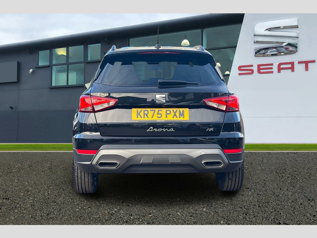 'Lights On' Reminder warning buzzer, 10" Digital cockpit, Digital clock, E-call, Electric speed sensitive power steering, Full link smartphone integration with mirror link, wireless apple carplay, Google android auto + USB Type C cable for apple and android devices, Lane keeping system, Low fuel warning light, Outside temperature display, Park assist system, Rear view camera, RPM counter, SEAT Drive profile - Four different models normal-sport-eco-individual, steering response, throttle response, Trip computer, Wireless phone charger, 9.2" colour touchscreen with navigation system, voice control and USB port (type c), Bluetooth interface for hands free and audio streaming, DAB digital radio and AM/FM radio, Steering wheel mounted audio controls, Anti theft roof antenna, Auto dimming interior rear view mirror, Automatic activation of hazard warning lights, Black roof rails and window surrounds, Black side skirts, Body coloured bumpers, Body coloured door handle inserts, Dark tinted rear windows, Electric front/rear windows, Electrically adjustable, heated and folding door mirrors, Front fog lights with cornering function and rear fog light, FULL LED automatic headlights with dynamic headlight range control, coming and leaving home, LED daytime running lights, Lasered lettering on B pillar, LED rear tail lights and licence plate lights, Protective side mouldings, Rain sensing wipers, Rear side wing doors, Rear spoiler, Rear window wash/wipe, Roof colour door mirrors, Third brake light, Twin exhaust pipe styling hidden exhaust pipe, Visible VIN plate, 2 cupholders, 3 seat bench in 2nd row, 60/40 split folding rear seat, Aircare filter, Black interior roof, Double boot floor, Driver sunvisor with covered mirror + card holder, Dual zone climate control, Front courtesy light with front reading lights, Front seat back storage pockets, Gear shift indicator, Grey interior air vents, Heated front seats, Height adjustable front seats, Height/reach adjustable steering column, Illuminated air vent surrounds, Illuminated boot, Instrument lighting with brightness control, Interior ambient lighting, Interior light in footwell, central console and door panel, ISOFIX points in outer rear seats with top tether anchorage points, Microsuede cloth upholstery, Passenger sunvisor with vanity mirror, Perforated flat bottomed leather steering wheel/gear knob/handbrake with red stitching and FR logo, Potentiometer, Single front passenger seat, Sports cloth bucket seats, Two front and three rear height adjustable headrests, Interior chrome pack - Arona, Safe and driving pack (S) - Arona, Safety and driving pack (M) - Arona, ABS, Active front headrests, Child locks on rear doors, Driver and front passenger airbags with front passenger airbag de activation, front side and curtain airbags, Emergency Brake Assist (EBA) and front assist, Front and rear seatbelt reminder, Hill hold control, Multi-Collision braking, Tiredness recognition system, Traction control, Tyre pressure monitoring system, Alarm with back up horn with tow away protection, Deadlock, Electronic engine immobiliser, KESSY Keyless entry and go, Locking wheel bolts, Remote central locking, Titan black dashboard, 18" Black alloy wheels