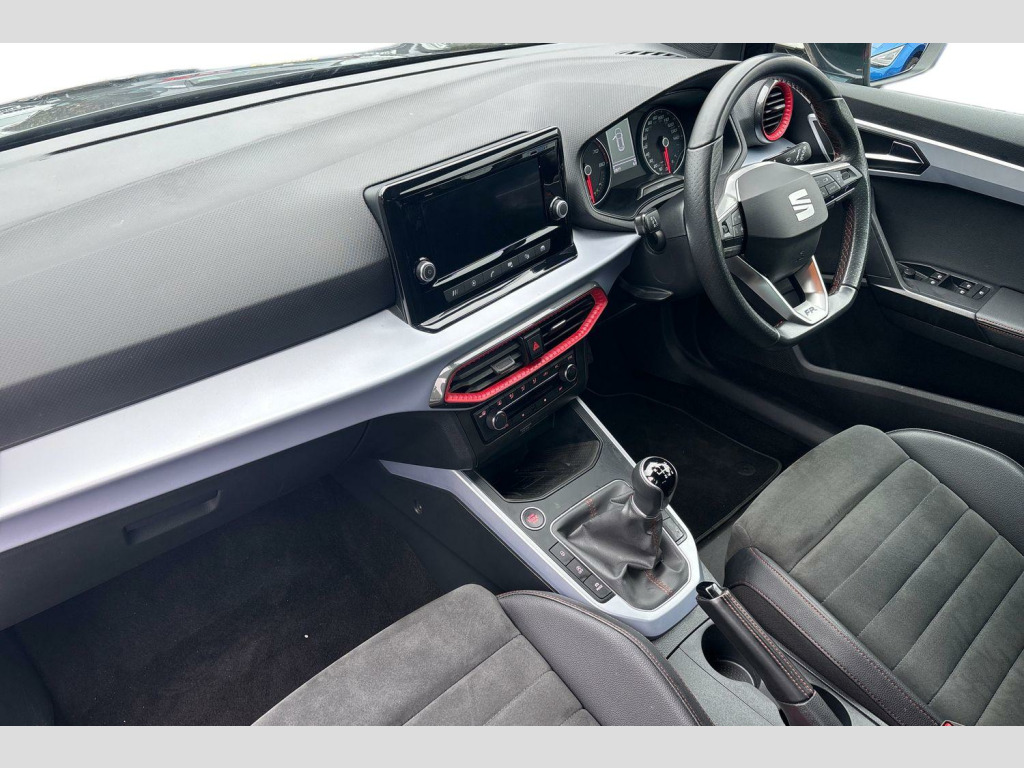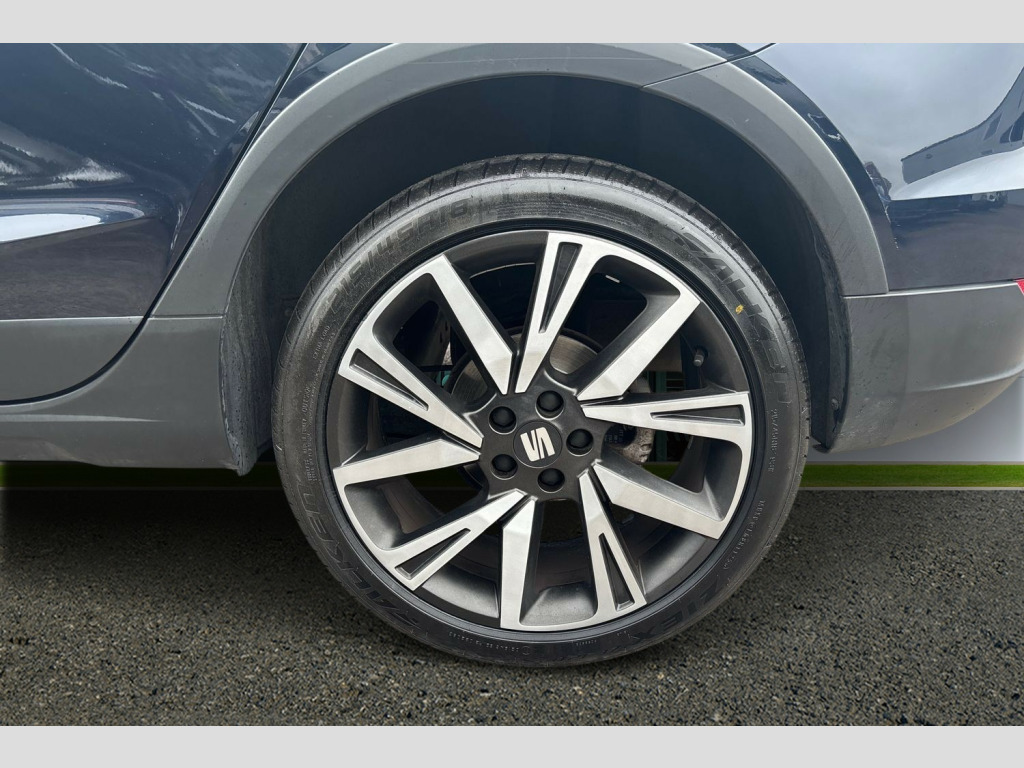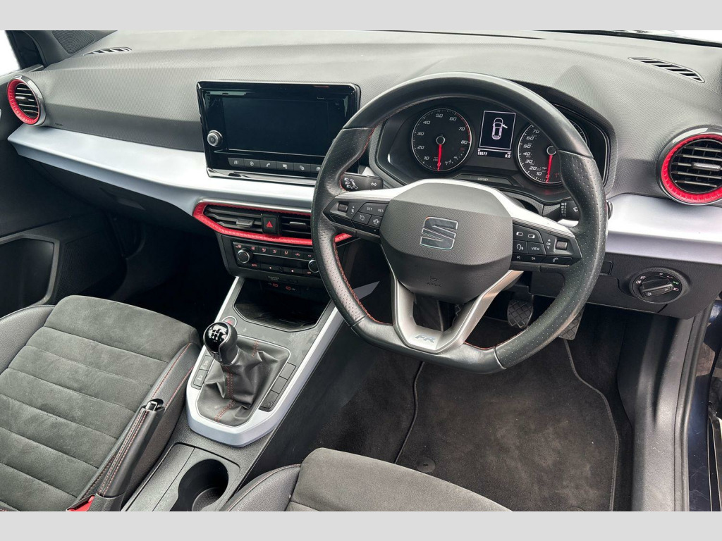 'Lights On' Reminder warning buzzer, Analogue cockpit with physical dials, Digital clock, E-call, Electric speed sensitive power steering, Full Link Smartphone Integration with Mirror Link, Apple Car Play, Google Android Auto with USB Type C cable for Apple and Android compatibility, Lane keeping system, Low fuel warning light, Outside temperature display, Rear parking sensor, RPM counter, Seat connect with safety, service and remote, SEAT Drive profile - Four different models normal-sport-eco-individual, steering response, throttle response, Trip computer, Wireless phone charger, Bluetooth interface for hands free and audio streaming, DAB digital radio and AM/FM radio, Media system with 8.25" colour touchscreen with USB port (type c), Steering wheel mounted audio controls, Anti theft roof antenna, Auto dimming interior rear view mirror, Automatic activation of hazard warning lights, Body coloured bumpers, Body coloured door handle inserts, Chrome roof rails and window surrounds, Dark tinted rear windows, Electric front/rear windows, Electrically adjustable and heated door mirrors, Front fog lights with cornering function and rear fog light, FULL LED automatic headlights with dynamic headlight range control, coming and leaving home, LED daytime running lights, LED rear tail lights and licence plate lights, Protective side mouldings, Rain sensing wipers, Rear side wing doors, Rear spoiler, Rear window wash/wipe, Roof colour door mirrors, Third brake light, Twin exhaust pipe styling hidden exhaust pipe, Visible VIN plate, Windshield wiper with intermittent control and potentiometer, 2 cupholders, 3 seat bench in 2nd row, 60/40 split folding rear seat, Aircare filter, Black interior roof, Double boot floor, Driver sunvisor with covered mirror + card holder, Dual zone climate control, Front comfort seats, Front courtesy light with 2x front and 2x rear reading lights, Gear shift indicator, Height adjustable front seats, Height/reach adjustable steering column, Illuminated boot, Instrument lighting with brightness control, Interior ambient lighting, Interior light in footwell, central console and door panel, ISOFIX points in outer rear seats with top tether anchorage points, Microsuede cloth upholstery, Passenger sunvisor with vanity mirror, Perforated flat bottomed leather steering wheel/gear knob/handbrake with red stitching and FR logo, Single front passenger seat, Two front and three rear height adjustable headrests, Interior chrome pack - Arona, 3 point seatbelts on all rear seats, ABS, Active front headrests, Child locks on rear doors, Driver and front passenger airbags with front passenger airbag de activation, front side and curtain airbags, Electronic stability control, Emergency Brake Assist (EBA) and front assist, Front and rear seatbelt reminder, Hill hold control, Multi-Collision braking, Tiredness recognition system, Traction control, Tyre pressure monitoring system, Alarm with back-up horn, Electronic engine immobiliser, KESSY Keyless entry and go, Locking wheel bolts, Remote central locking + deadlocks, Tow away protection, Titan black dashboard