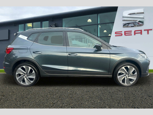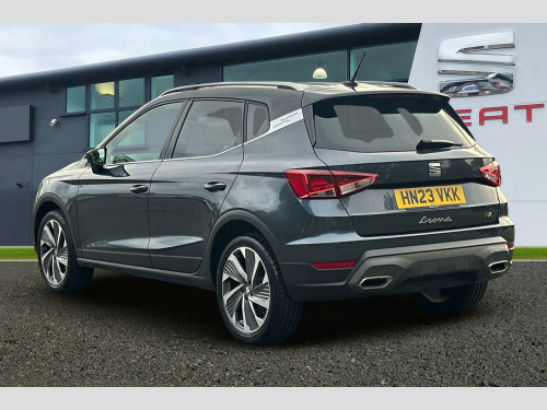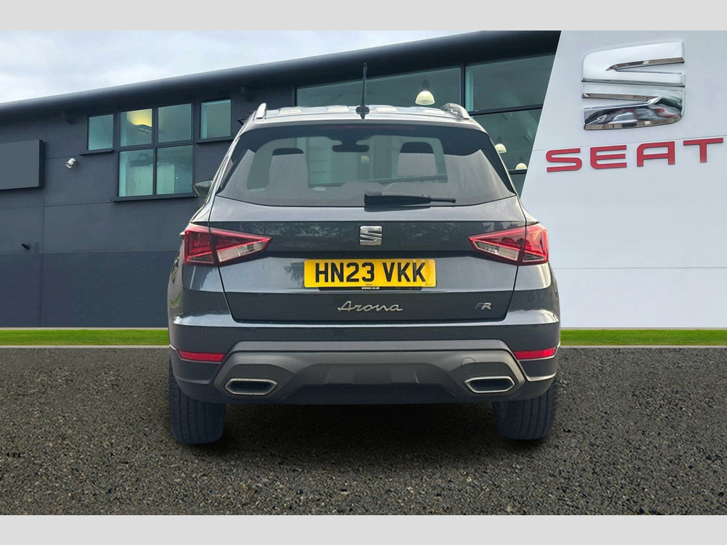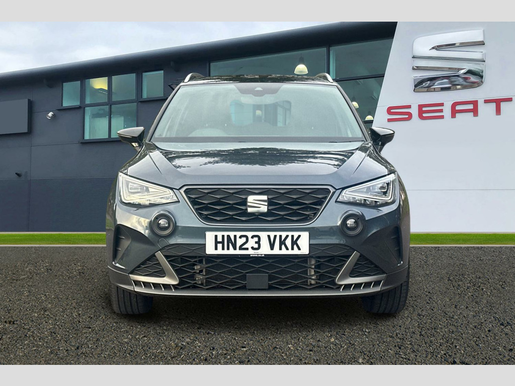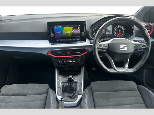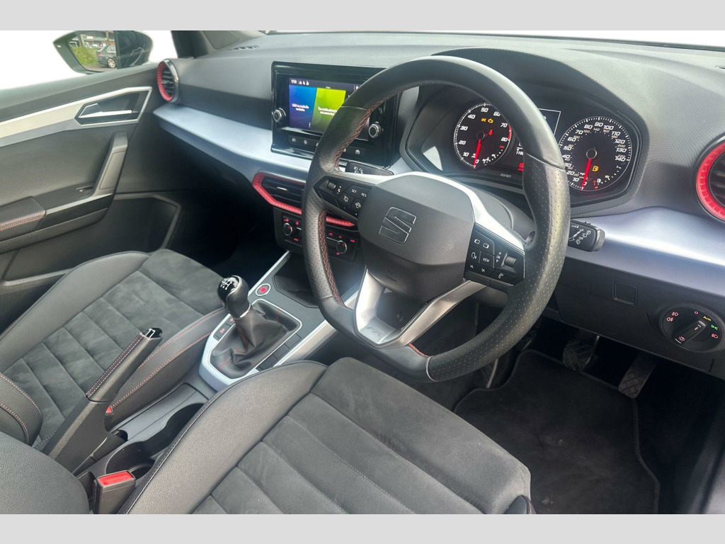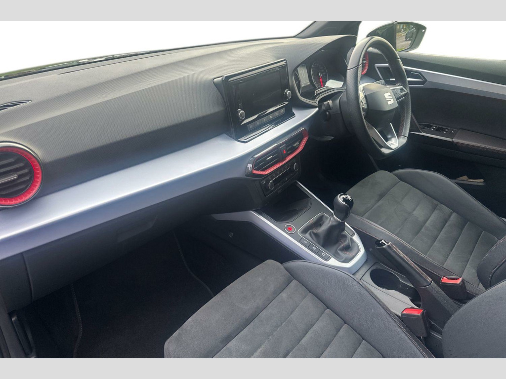 'Lights On' Reminder warning buzzer, Analogue cockpit with physical dials, Digital clock, E-call, Electric speed sensitive power steering, Full Link Smartphone Integration with Mirror Link, Apple Car Play, Google Android Auto with USB Type C cable for Apple and Android compatibility, Lane keeping system, Low fuel warning light, Outside temperature display, Rear parking sensor, RPM counter, Seat connect with safety, service and remote, SEAT Drive profile - Four different models normal-sport-eco-individual, steering response, throttle response, Trip computer, Wireless phone charger, Bluetooth interface for hands free and audio streaming, DAB digital radio and AM/FM radio, Media system with 8.25" colour touchscreen with USB port (type c), Steering wheel mounted audio controls, Anti theft roof antenna, Automatic activation of hazard warning lights, Body coloured bumpers, Body coloured door handle inserts, Chrome roof rails and window surrounds, Dark tinted rear windows, Dimming rear view mirror, Electric front/rear windows, Electrically adjustable and heated door mirrors, Front fog lights with cornering function and rear fog light, FULL LED automatic headlights with dynamic headlight range control, coming and leaving home, LED daytime running lights, LED rear tail lights and licence plate lights, Protective side mouldings, Rear side wing doors, Rear spoiler, Rear window wash/wipe, Roof colour door mirrors, Third brake light, Twin exhaust pipe styling hidden exhaust pipe, Visible VIN plate, Windshield wiper with intermittent control and potentiometer, 2 cupholders, 3 seat bench in 2nd row, 60/40 split folding rear seat, Aircare filter, Black interior roof, Double boot floor, Driver sunvisor with covered mirror + card holder, Dual zone climate control, Front comfort seats, Front courtesy light with 2x front and 2x rear reading lights, Gear shift indicator, Height adjustable front seats, Height/reach adjustable steering column, Illuminated boot, Instrument lighting with brightness control, Interior ambient lighting, Interior light in footwell, central console and door panel, ISOFIX points in outer rear seats with top tether anchorage points, Microsuede cloth upholstery, Passenger sunvisor with vanity mirror, Perforated flat bottomed leather steering wheel/gear knob/handbrake with red stitching and FR logo, Single front passenger seat, Two front and three rear height adjustable headrests, Interior chrome pack - Arona, 3 point seatbelts on all rear seats, ABS, Active front headrests, Child locks on rear doors, Driver and front passenger airbags with front passenger airbag de activation, front side and curtain airbags, Electronic stability control, Emergency Brake Assist (EBA) and front assist, Front and rear seatbelt reminder, Hill hold control, Multi-Collision braking, Tiredness recognition system, Traction control, Tyre pressure monitoring system, Alarm with back-up horn, Electronic engine immobiliser, KESSY Keyless entry and go, Locking wheel bolts, Remote central locking + deadlocks, Tow away protection, Titan black dashboard