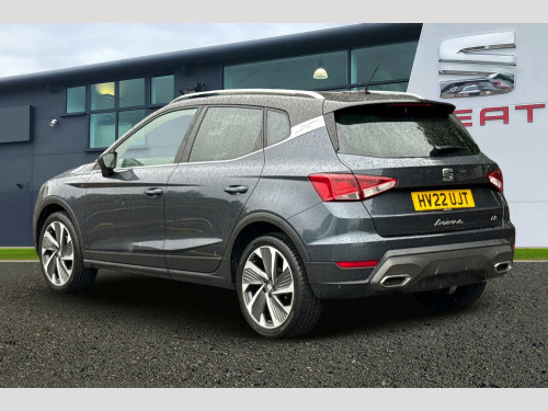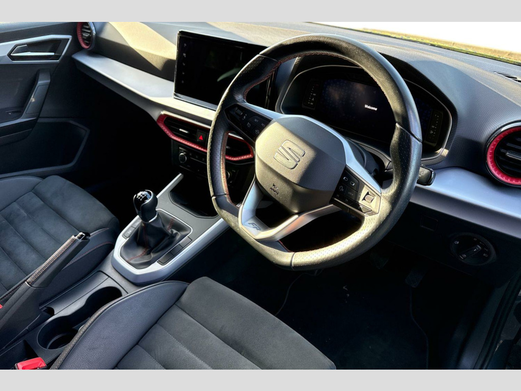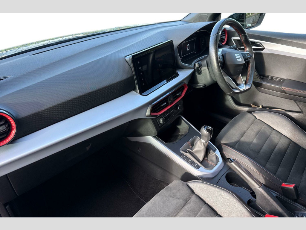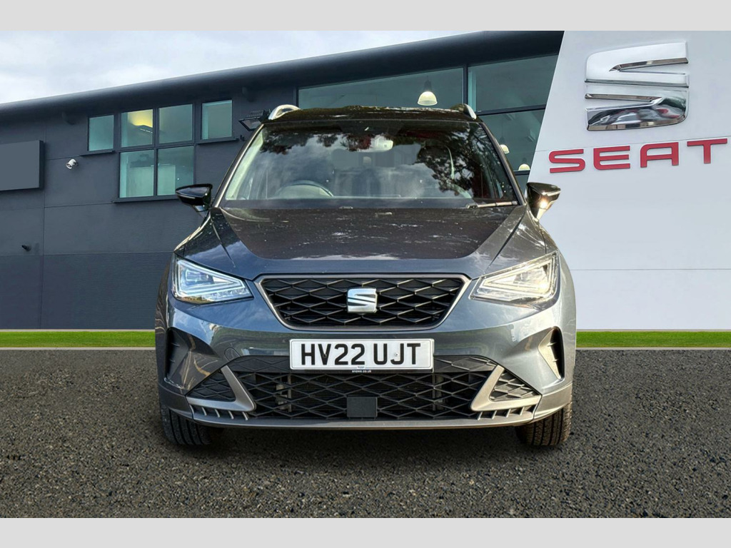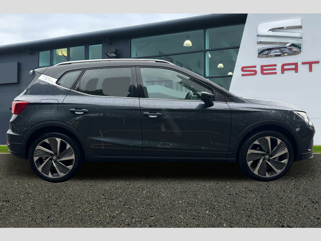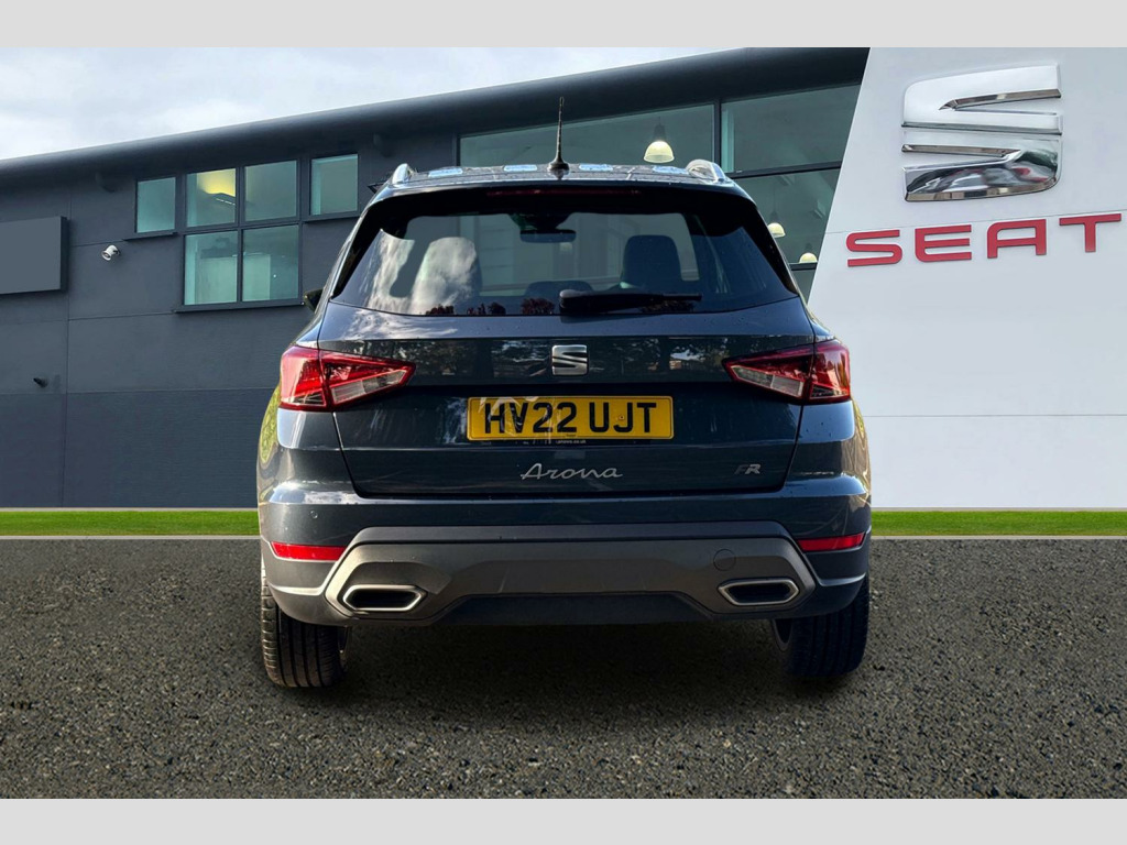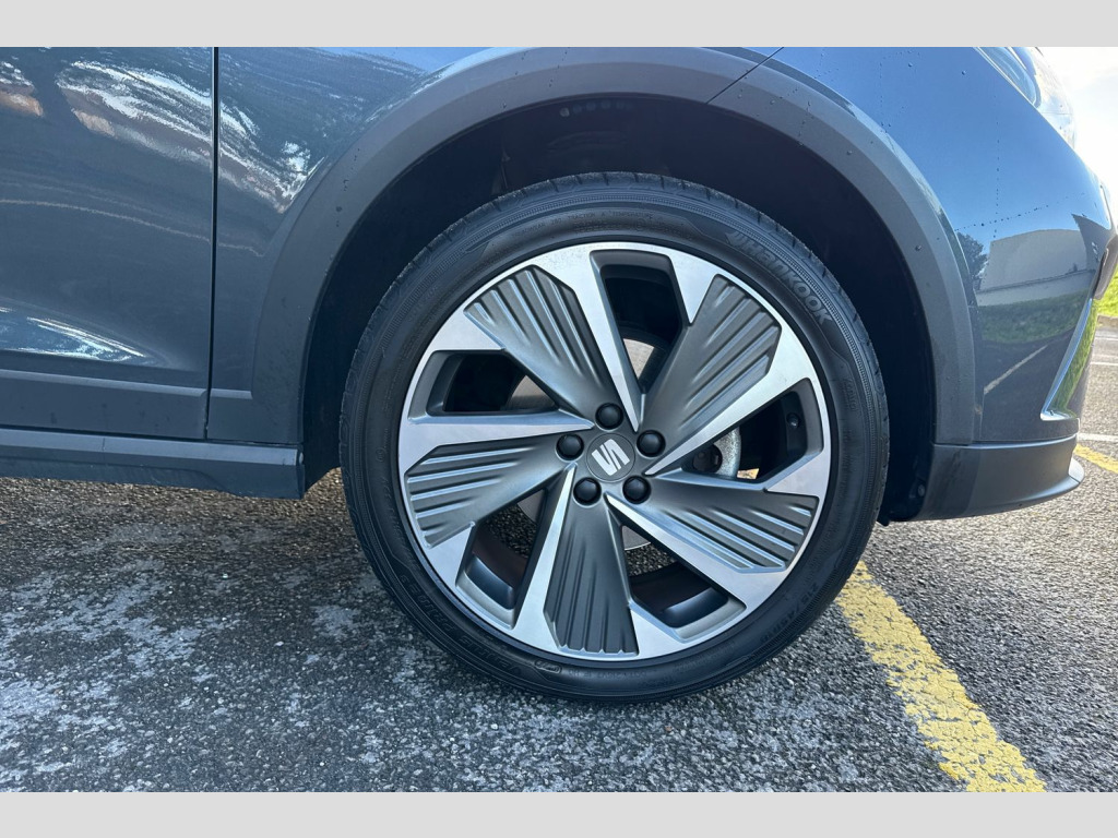 Digital cockpit, E-call, Electric speed sensitive power steering, Full Link Smartphone Integration with Mirror Link, Apple Car Play, Google Android Auto with USB Type C cable for Apple and Android compatibility, Lane keeping system, Rear parking sensor, Seat connect with safety, service, remote and online, SEAT Drive profile - Four different models normal-sport-eco-individual, steering response, throttle response, Bluetooth interface for hands free and audio streaming, DAB digital radio and AM/FM radio, Steering wheel mounted audio controls, Anti theft roof antenna, Auto dimming interior rear view mirror, Automatic activation of hazard warning lights, Body coloured bumpers, Body coloured door handle inserts, Chrome roof rails and window surrounds, Chrome window trim, Dark tinted rear windows, Electric front/rear windows, Electrically adjustable, heated and folding door mirrors, FULL LED automatic headlights with dynamic headlight range control, coming and leaving home, LED daytime running lights, LED rear tail lights and licence plate lights, Protective side mouldings, Rain sensing wipers, Rear side wing doors, Rear spoiler, Rear window wash/wipe, Roof colour door mirrors, Third brake light, Twin exhaust pipe styling hidden exhaust pipe, Visible VIN plate, Windshield wiper with intermittent control and potentiometer, 2 cupholders, 3 seat bench in 2nd row, 60/40 split folding rear seat, Aircare filter, Black interior roof, Double boot floor, Driver sunvisor with covered mirror + card holder, Dual zone climate control, Front courtesy light with 2x front and 2x rear reading lights, Front seat back storage pockets, Front sport seats, Heated front seats, Height adjustable front seats, Height/reach adjustable steering column, Illuminated boot, Interior ambient lighting, Interior light in footwell, central console and door panel, ISOFIX points in outer rear seats with top tether anchorage points, Microsuede cloth upholstery, Passenger sunvisor with vanity mirror, Perforated flat bottomed leather steering wheel/gear knob/handbrake with red stitching and FR logo, Single front passenger seat, Two front and three rear height adjustable headrests, Connectivity pack plus - Arona, Interior chrome pack - Arona, 3 point seatbelts on all rear seats, ABS, Active front headrests, Child locks on rear doors, Driver and front passenger airbags with front passenger airbag de activation, front side and curtain airbags, Electronic stability control, Emergency Brake Assist (EBA) and front assist, Front and rear seatbelt reminder, Hill hold control, Multi-Collision braking, Tiredness recognition system, Traction control, Tyre pressure monitoring system, Alarm with back-up horn, Electronic engine immobiliser, Locking wheel bolts, Remote central locking + deadlocks, Tow away protection, Titan black dashboard, 18" Performance Cosmo grey matt alloy wheels