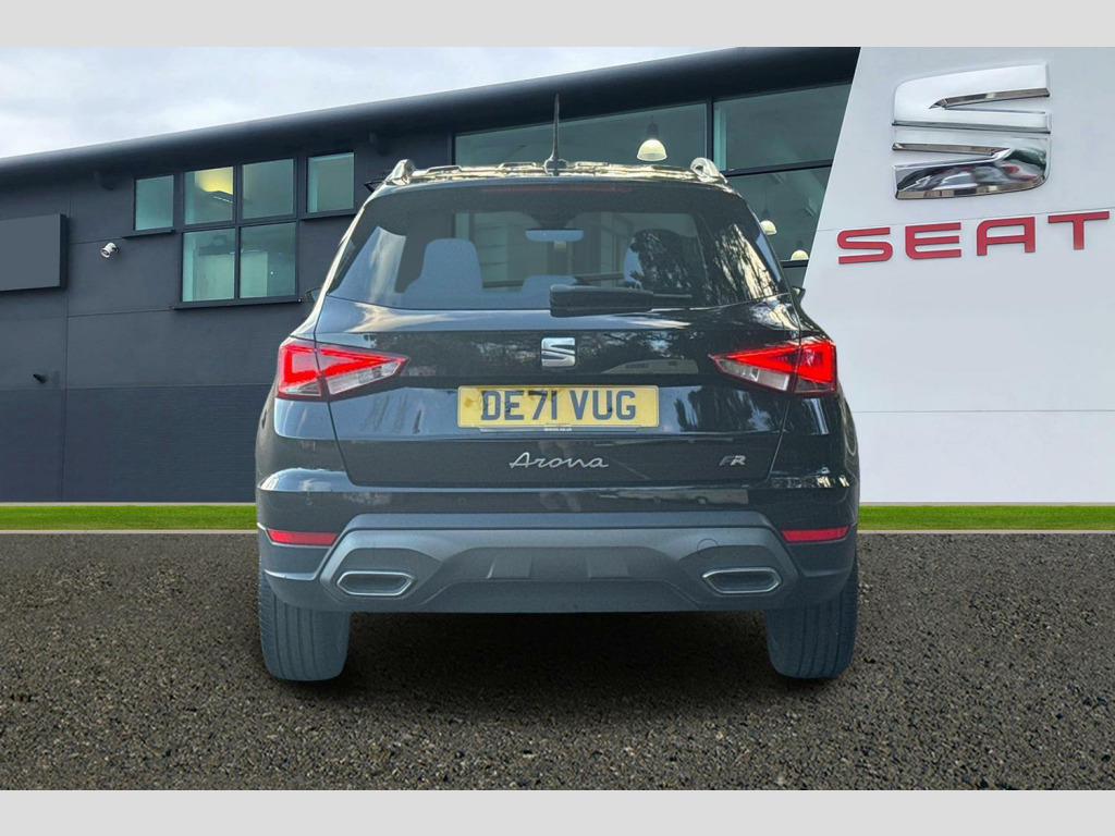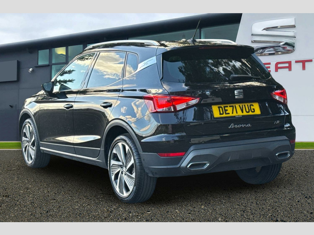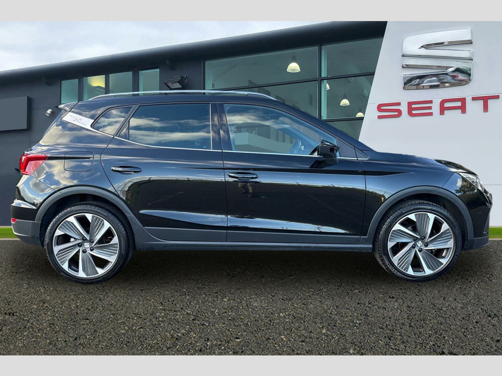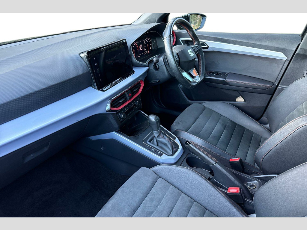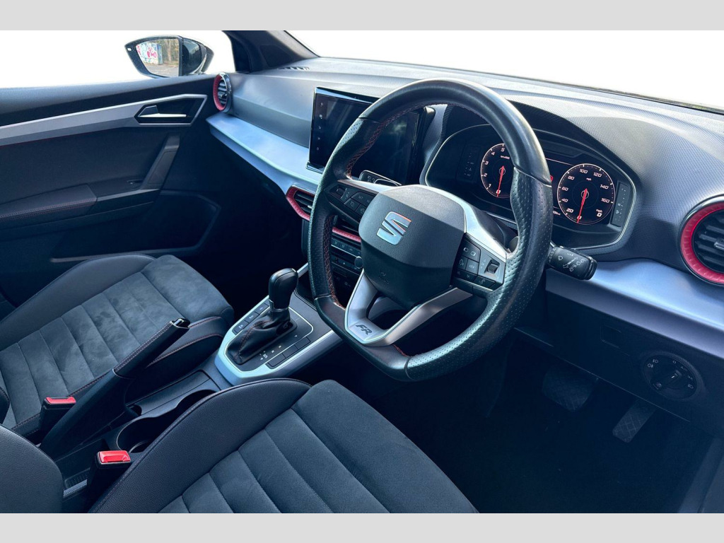 Digital cockpit, Electric speed sensitive power steering, Full Link Smartphone Integration with Mirror Link, Apple Car Play, Google Android Auto with USB Type C cable for Apple and Android compatibility, Lane keeping system, Rear parking sensor, Seat connect with safety, service, remote and online, SEAT Drive profile - Four different models normal-sport-eco-individual, steering response, throttle response and gear shifts mode, Bluetooth interface for hands free and audio streaming, DAB digital radio and AM/FM radio, Steering wheel mounted audio controls, Anti theft roof antenna, Auto dimming interior rear view mirror, Automatic activation of hazard warning lights, Body coloured bumpers, Body coloured door handle inserts, Chrome roof rails and window surrounds, Chrome window trim, Dark tinted rear windows, Electric front/rear windows, Electrically adjustable, heated and folding door mirrors, FULL LED automatic headlights with dynamic headlight range control, coming and leaving home, LED daytime running lights, LED rear tail lights and licence plate lights, Protective side mouldings, Rain sensing wipers, Rear spoiler, Rear window wash/wipe, Roof colour door mirrors, Twin exhaust pipe styling hidden exhaust pipe, Visible VIN plate, Windshield wiper with intermittent control and potentiometer, 2 cupholders, 60/40 split folding rear seat, Aircare filter, Black interior roof, Daring red Illuminated coloured air vent, Double boot floor, Driver sunvisor with covered mirror + card holder, Dual zone climate control, Front courtesy light with 2x front and 2x rear reading lights, Front seat back storage pockets, Front sport seats, Heated front seats, Height adjustable front seats, Height/reach adjustable steering column, Illuminated boot, Interior ambient lighting, Interior light in footwell, central console and door panel, ISOFIX points in outer rear seats with top tether anchorage points, Microsuede cloth upholstery, Passenger sunvisor with vanity mirror, Perforated flat bottomed leather steering wheel/gear knob/handbrake with red stitching and FR logo, Steering wheel mounted gearshift paddles, Two front and three rear height adjustable headrests, Connectivity pack plus - Arona, Interior chrome pack - Arona, 3 point seatbelts on all rear seats, ABS, Active front headrests, Child locks on rear doors, Driver and front passenger airbags with front passenger airbag de activation, front side and curtain airbags, Electronic stability control, Emergency Brake Assist (EBA) and front assist, Front and rear seatbelt reminder, Hill hold control, Multi-Collision braking, Tiredness recognition system, Traction control, Tyre pressure monitoring system, Alarm with back-up horn, Electronic engine immobiliser, Locking wheel bolts, Remote central locking + deadlocks, Tow away protection, Titan black dashboard, 18" Performance Cosmo grey matt alloy wheels