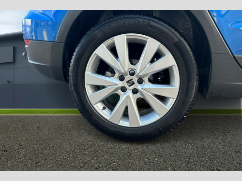 'Lights On' Reminder warning buzzer, 8" Digital cockpit, Digital clock, E-call, Electric speed sensitive power steering, Full Link Smartphone Integration with Mirror Link, Apple Car Play, Google Android Auto with USB Type C cable for Apple and Android compatibility, Lane keeping system, Low fuel warning light, Outside temperature display, Rear parking sensor, RPM counter, Seat connect with safety, service, remote and online, Trip computer, Wireless phone charger, 9.2" colour touchscreen with navigation system, voice control and USB port (type c), Bluetooth interface for hands free and audio streaming, DAB digital radio and AM/FM radio, Steering wheel mounted audio controls, Anti theft roof antenna, Auto dimming interior rear view mirror, Automatic activation of hazard warning lights, Body coloured bumpers, Body coloured door handle inserts, Chrome roof rails and window surrounds, Electric front/rear windows, Electrically adjustable, heated and folding door mirrors, Front fog lights with cornering function and rear fog light, FULL LED automatic headlights with dynamic headlight range control, coming and leaving home, LED daytime running lights, Hidden exhaust pipe, LED rear tail lights and licence plate lights, Protective side mouldings, Rain sensing wipers, Rear side wing doors, Rear spoiler, Rear window wash/wipe, Roof colour door mirrors, Third brake light, Visible VIN plate, Windshield wiper with intermittent control and potentiometer, 2 cupholders, 3 seat bench in 2nd row, 60/40 split folding rear seat, Aircare filter, Black interior roof, Cloth upholstery, Double boot floor, Driver sunvisor with covered mirror + card holder, Dual zone climate control, Flat bottomed leather steering wheel/gear knob/handbrake, Front courtesy light with front reading lights, Front seat back storage pockets, Gear shift indicator, Height adjustable front seats, Height/reach adjustable steering column, Illuminated boot, Instrument lighting with brightness control, Interior ambient lighting, Interior light in footwell, central console and door panel, ISOFIX points in outer rear seats with top tether anchorage points, Leather steering wheel/gear knob/handbrake, Passenger sunvisor with vanity mirror, Single front passenger seat, Storage net on centre console, Two front and three rear height adjustable headrests, Interior chrome pack - Arona, Safety and driving pack (M) - Arona, Storage pack - Arona, 3 point seatbelts on all rear seats, ABS, Active front headrests, Child locks on rear doors, Driver and front passenger airbags with front passenger airbag de activation, front side and curtain airbags, Electronic stability control, Emergency Brake Assist (EBA) and front assist, Front and rear seatbelt reminder, Hill hold control, Multi-Collision braking, Tiredness recognition system, Traction control, Tyre pressure monitoring system, Alarm with back-up horn, Electronic engine immobiliser, KESSY Keyless entry and go, Locking wheel bolts, Remote central locking + deadlocks, Tow away protection, Titan black dashboard, 17" Dynamic alloy wheels