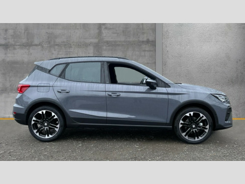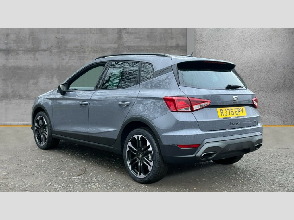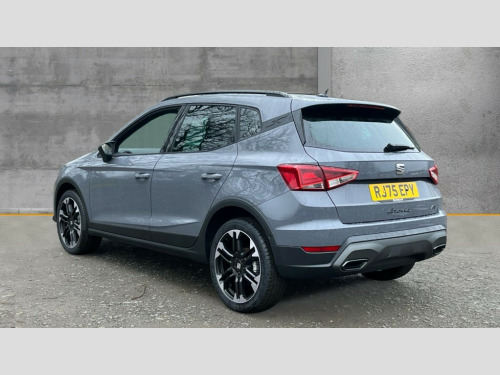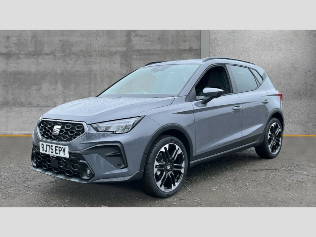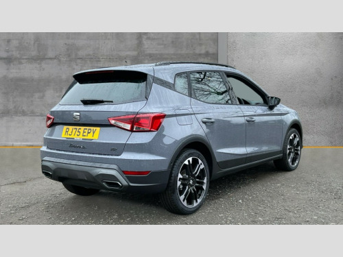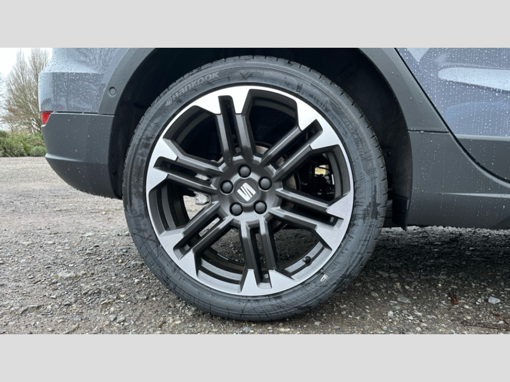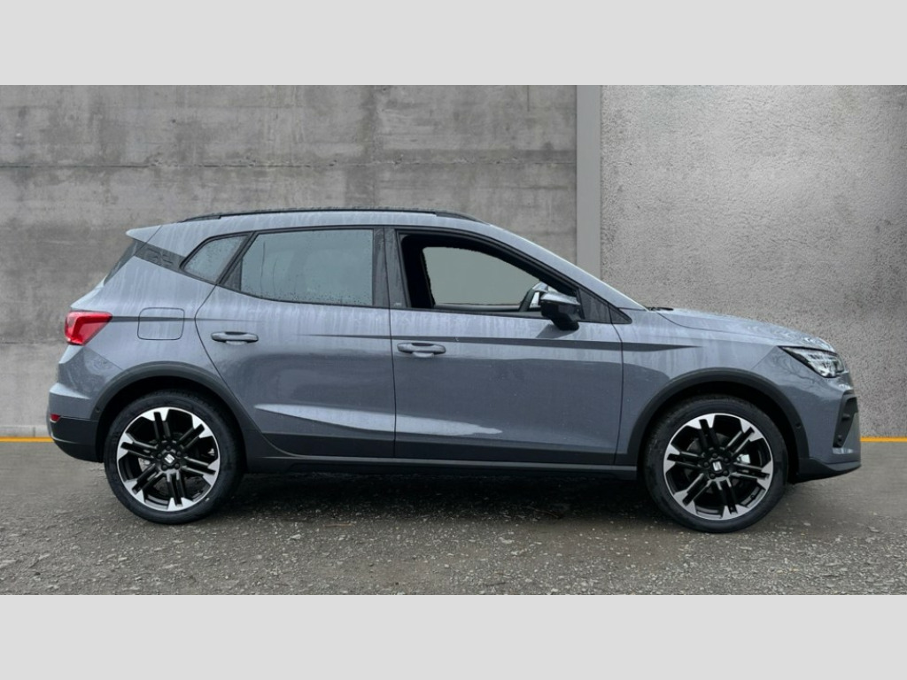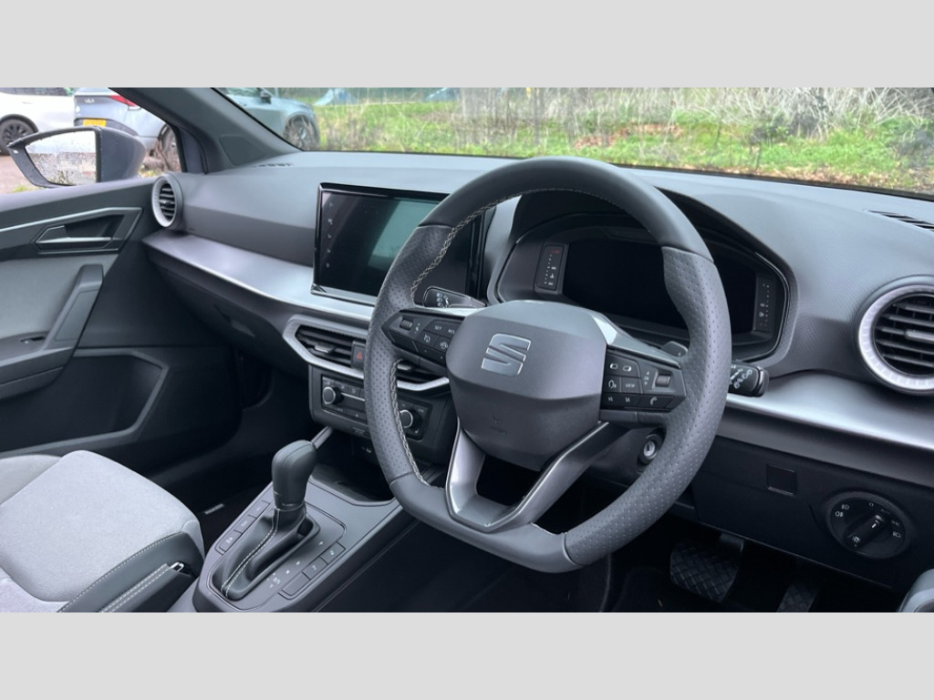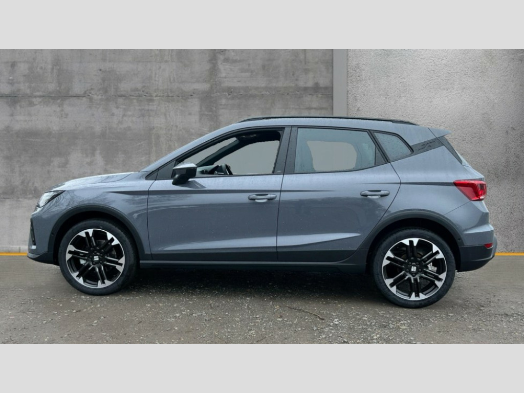 Seat Arona 1.0 TSI 115 FR Sport 5dr DSG 'Lights On' Reminder warning buzzer, 10" Digital cockpit, Digital clock, E-call, Electric speed sensitive power steering, Front parking sensors, Full link smartphone integration with mirror link, wireless apple carplay, Google android auto + USB Type C cable for apple and android devices, Low fuel warning light, Outside temperature display, Rear view camera, RPM counter, SEAT Drive profile - Four different models normal-sport-eco-individual, steering response, throttle response and gear shifts mode, Trip computer, Wireless phone charger, 9.2" colour touchscreen with navigation system, voice control and USB port (type c), Bluetooth interface for hands free and audio streaming, DAB digital radio and AM/FM radio, Steering wheel mounted audio controls, Anti theft roof antenna, Auto dimming interior rear view mirror, Automatic activation of hazard warning lights, Black roof rails and window surrounds, Body coloured bumpers, Body coloured door handle inserts, Dark tinted rear windows, Electric front/rear windows, Electrically adjustable, heated and folding door mirrors, Front fog lights with cornering function and rear fog light, LED 3rd brake light, LED daytime running lights, LED rear tail lights and licence plate lights, Protective side mouldings, Rain sensing wipers, Rear side wing doors, Rear spoiler, Rear window wash/wipe, Roof colour door mirrors, SEAT design Full LED automatic headlamps with dynamic headlight range control, coming and leaving home feature, Twin exhaust pipe styling with double flow exhaust pipe, Visible VIN plate, 2 cupholders, 3 seat bench in 2nd row, 60/40 split folding rear seat, Aircare filter, Black headliner, Cloth upholstery with embossed textile/Sport bucket seats, Double boot floor, Driver sunvisor with covered mirror + card holder, Dual zone climate control, Front courtesy light with front reading lights, Front seat back storage pockets, Heated front seats, Height adjustable front seats, Height/reach adjustable steering column, Illuminated air vent surrounds, Interior ambient lighting, Interior light in footwell, central console and door panel, ISOFIX points in outer rear seats with top tether anchorage points, Passenger sunvisor with vanity mirror, Perforated flat bottomed leather steering wheel/gear knob/handbrake with red stitching and FR logo, Red coloured interior air vents, Single front passenger seat, Steering wheel mounted gearshift paddles, Two front and three rear height adjustable headrests, Interior chrome pack - Arona, Safe and driving pack (S) - Arona, Storage pack - Arona, 3 point seatbelts on all rear seats, ABS, Active front headrests, Child locks on rear doors, Driver and front passenger airbags with front passenger airbag de activation, front side and curtain airbags, Emergency Brake Assist (EBA) and front assist, Front and rear seatbelt reminder, Hill hold control, Multi-Collision braking, Tiredness recognition system, Traction control, Tyre pressure monitoring system, Anti-theft alarm (perimeter and interior monitoring) with backup horn and towing protection, Central locking with radio remote control, interior controls and SAFELOCK, Deadlock, Electronic engine immobiliser, KESSY Keyless entry and go, Locking wheel bolts, 18" Performance machined alloy wheels in black
