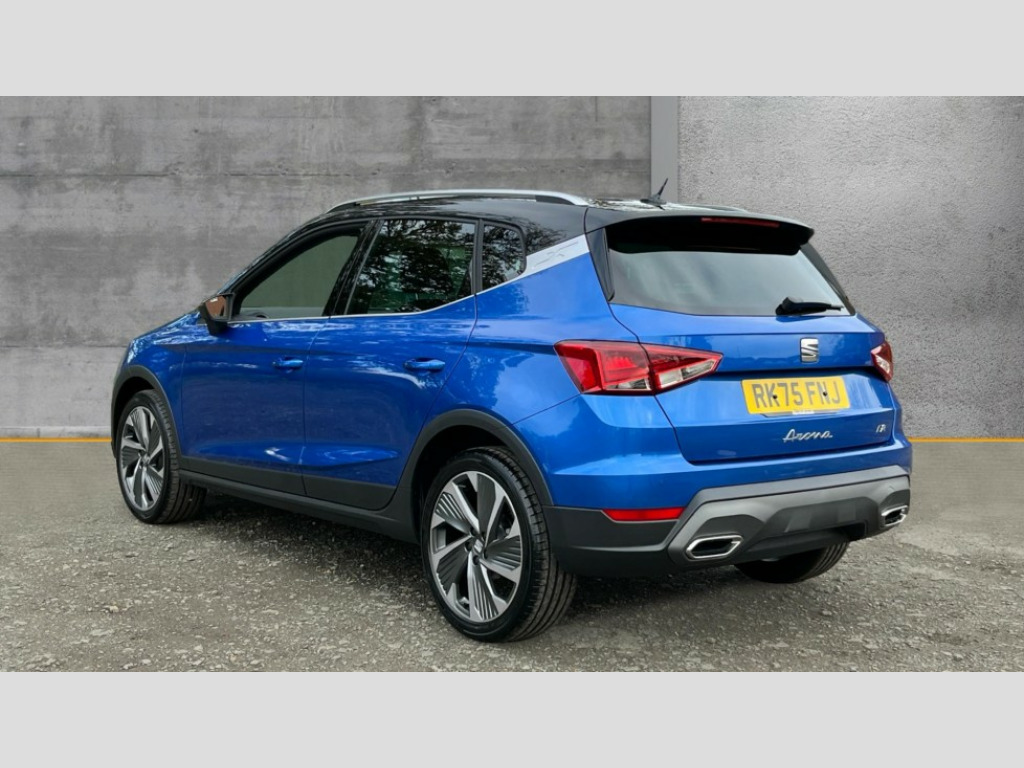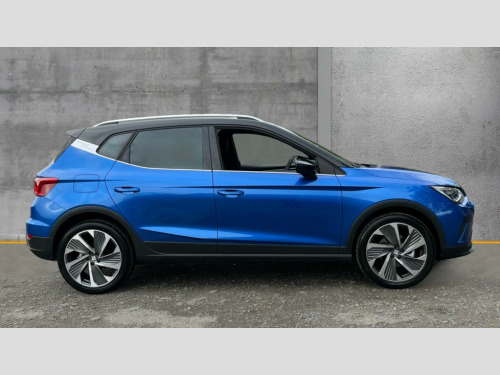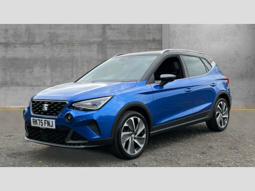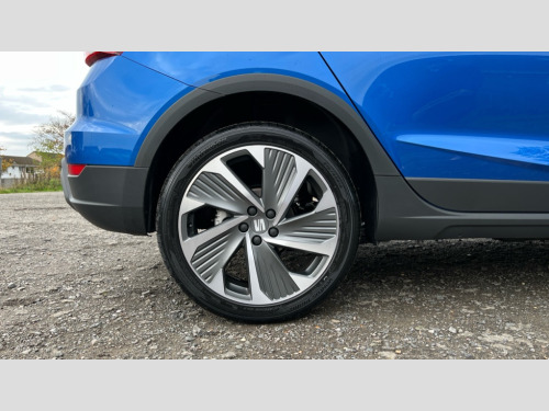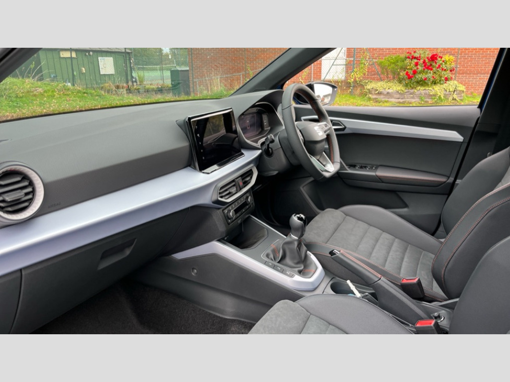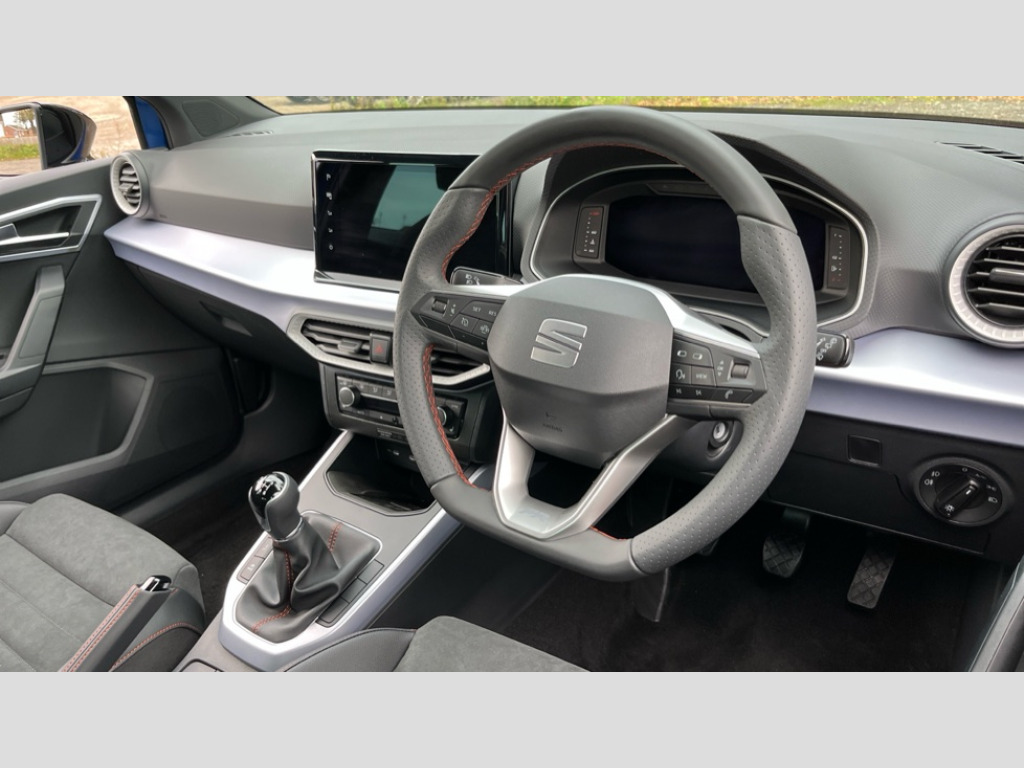 Seat Arona 1.0 TSI 115 FR Sport 5dr 'Lights On' Reminder warning buzzer, 10" Digital cockpit, Digital clock, E-call, Electric speed sensitive power steering, Full link smartphone integration with mirror link, wireless apple carplay, Google android auto + USB Type C cable for apple and android devices, Lane keeping system, Low fuel warning light, Outside temperature display, RPM counter, SEAT Drive profile - Four different models normal-sport-eco-individual, steering response, throttle response, Trip computer, Wireless phone charger, 9.2" colour touchscreen with navigation system, voice control and USB port (type c), Bluetooth interface for hands free and audio streaming, DAB digital radio and AM/FM radio, Steering wheel mounted audio controls, Anti theft roof antenna, Auto dimming interior rear view mirror, Automatic activation of hazard warning lights, Body coloured bumpers, Body coloured door handle inserts, Chrome roof rails and window surrounds, Dark tinted rear windows, Electric front/rear windows, Electrically adjustable, heated and folding door mirrors, Front fog lights with cornering function and rear fog light, FULL LED automatic headlights with dynamic headlight range control, coming and leaving home, LED daytime running lights, LED rear tail lights and licence plate lights, Protective side mouldings, Rain sensing wipers, Rear side wing doors, Rear spoiler, Rear window wash/wipe, Roof colour door mirrors, Third brake light, Twin exhaust pipe styling hidden exhaust pipe, Visible VIN plate, 2 cupholders, 3 seat bench in 2nd row, 60/40 split folding rear seat, Aircare filter, Black interior roof, Double boot floor, Driver sunvisor with covered mirror + card holder, Dual zone climate control, Front comfort seats, Front courtesy light with front reading lights, Front seat back storage pockets, Gear shift indicator, Heated front seats, Height adjustable front seats, Height/reach adjustable steering column, Illuminated air vent surrounds, Illuminated boot, Instrument lighting with brightness control, Interior ambient lighting, Interior light in footwell, central console and door panel, ISOFIX points in outer rear seats with top tether anchorage points, Microsuede cloth upholstery, Passenger sunvisor with vanity mirror, Perforated flat bottomed leather steering wheel/gear knob/handbrake with red stitching and FR logo, Potentiometer, Single front passenger seat, Two front and three rear height adjustable headrests, Interior chrome pack - Arona, Safe and driving pack (S) - Arona, 3 point seatbelts on all rear seats, ABS, Active front headrests, Child locks on rear doors, Driver and front passenger airbags with front passenger airbag de activation, front side and curtain airbags, Emergency Brake Assist (EBA) and front assist, Front and rear seatbelt reminder, Hill hold control, Multi-Collision braking, Tiredness recognition system, Traction control, Tyre pressure monitoring system, Alarm with back up horn with tow away protection, Deadlock, Electronic engine immobiliser, Locking wheel bolts, Remote central locking, Titan black dashboard, 18" Performance Cosmo grey matt alloy wheels