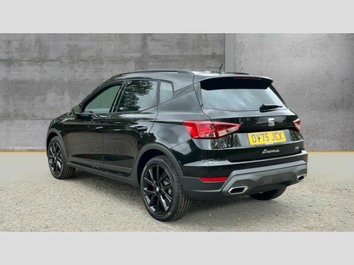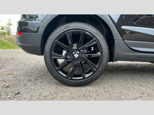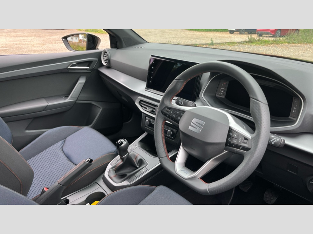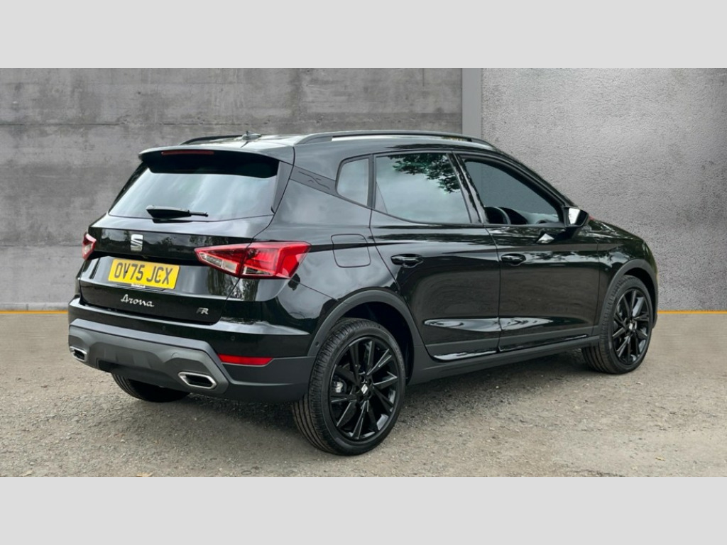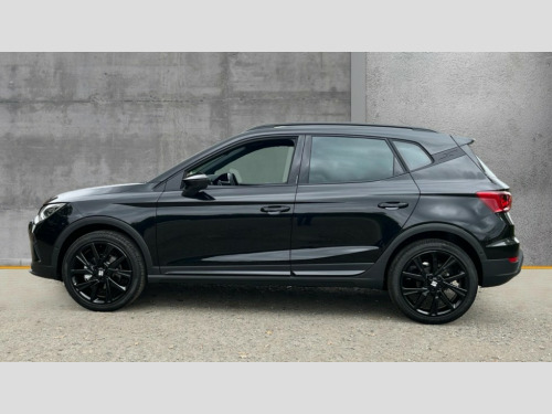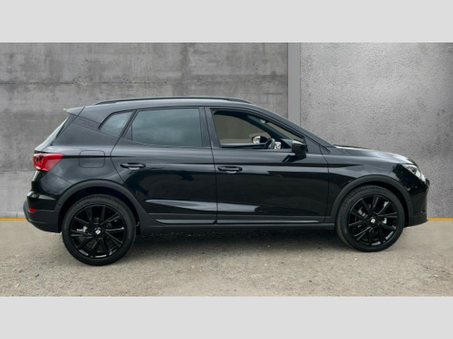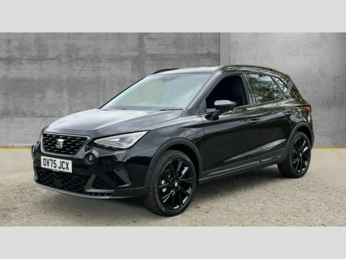 Seat Arona 1.0 TSI 115 FR Black Edition 5dr 'Lights On' Reminder warning buzzer, 10" Digital cockpit, Digital clock, E-call, Electric speed sensitive power steering, Full link smartphone integration with mirror link, wireless apple carplay, Google android auto + USB Type C cable for apple and android devices, Lane keeping system, Low fuel warning light, Outside temperature display, Park assist system, Rear view camera, RPM counter, SEAT Drive profile - Four different models normal-sport-eco-individual, steering response, throttle response, Trip computer, Wireless phone charger, 9.2" colour touchscreen with navigation system, voice control and USB port (type c), Bluetooth interface for hands free and audio streaming, DAB digital radio and AM/FM radio, Steering wheel mounted audio controls, Anti theft roof antenna, Auto dimming interior rear view mirror, Automatic activation of hazard warning lights, Black roof rails and window surrounds, Black side skirts, Body coloured bumpers, Body coloured door handle inserts, Dark tinted rear windows, Electric front/rear windows, Electrically adjustable, heated and folding door mirrors, Front fog lights with cornering function and rear fog light, FULL LED automatic headlights with dynamic headlight range control, coming and leaving home, LED daytime running lights, Lasered lettering on B pillar, LED rear tail lights and licence plate lights, Protective side mouldings, Rain sensing wipers, Rear side wing doors, Rear spoiler, Rear window wash/wipe, Roof colour door mirrors, Third brake light, Twin exhaust pipe styling hidden exhaust pipe, Visible VIN plate, 2 cupholders, 3 seat bench in 2nd row, 60/40 split folding rear seat, Aircare filter, Black interior roof, Double boot floor, Driver sunvisor with covered mirror + card holder, Dual zone climate control, Front courtesy light with front reading lights, Front seat back storage pockets, Gear shift indicator, Grey interior air vents, Heated front seats, Height adjustable front seats, Height/reach adjustable steering column, Illuminated air vent surrounds, Illuminated boot, Instrument lighting with brightness control, Interior ambient lighting, Interior light in footwell, central console and door panel, ISOFIX points in outer rear seats with top tether anchorage points, Microsuede cloth upholstery, Passenger sunvisor with vanity mirror, Perforated flat bottomed leather steering wheel/gear knob/handbrake with red stitching and FR logo, Potentiometer, Single front passenger seat, Sports cloth bucket seats, Two front and three rear height adjustable headrests, Interior chrome pack - Arona, Safe and driving pack (S) - Arona, Safety and driving pack (M) - Arona, ABS, Active front headrests, Child locks on rear doors, Driver and front passenger airbags with front passenger airbag de activation, front side and curtain airbags, Emergency Brake Assist (EBA) and front assist, Front and rear seatbelt reminder, Hill hold control, Multi-Collision braking, Tiredness recognition system, Traction control, Tyre pressure monitoring system, Alarm with back up horn with tow away protection, Deadlock, Electronic engine immobiliser, KESSY Keyless entry and go, Locking wheel bolts, Remote central locking, Titan black dashboard, 18" Black alloy wheels