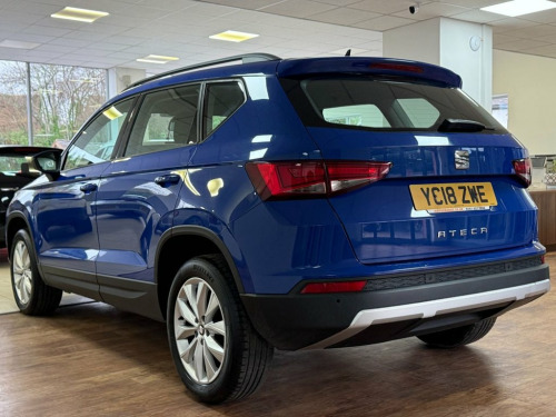 This 2018 SEAT Ateca TSI SE is a superb example with a clear vehicle history check, offering peace of mind for its next owner. Powered by an efficient 1.0 litre Euro 6 petrol engine, this model combines practicality with a refined driving experience. The SE trim level includes desirable features such as dual zone climate control for personalised comfort and rear parking sensors to assist with manoeuvring. You will appreciate the generous boot space, making it ideal for families or those who need extra room for luggage or shopping. This Ateca also stands out with its impressive fuel economy, achieving up to 54 miles per gallon, and its low CO2 emissions, which are better than many similar vehicles. Furthermore, its low insurance group rating indicates that running costs are kept to a minimum, making it an economical choice. Lava Blue, 12V Socket in Front, 17in Alloy Wheels - Dynamic, 3.5in Drivers Display, Active Front Head Restraints, Alarm - Perimeter and Interior Monitorin, Ambient Spot Lighting and Front Footwell, Anti-Lock Braking System - ABS, Armrest with Air Outlet in Rear, Chrome Dashboard Detailing, Comfort Suspension, Cruise Control, Digital Clock, Door Mirrors and Door Handles in Body Co, Driver and Front Passenger Airbags, Driver and Passenger Seat with Lumbar Ad, Driver and Passenger Sunvisor with Card , Driver and Passenger Sunvisor with Cover, Drivers Knee Airbag, Drivers Seat Lumbar Adjustment, Dual Zone Climate Control, Electric Parking Brake Including Autohol, Electrically Folding Door Mirror