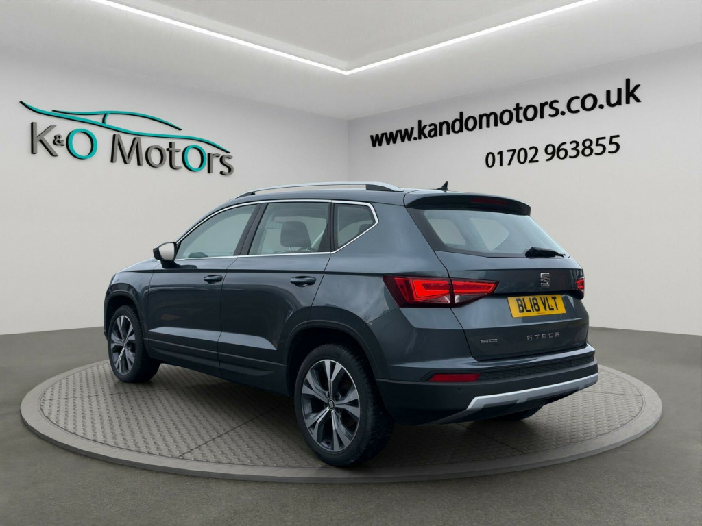 Welcome to K&O Motors, your trusted destination for quality cars in Southend, Essex! Discover our extensive range of vehicles, all physically in stock and available to view today. This 2018 Used Seat Ateca SE Technology (finished in Metallic Grey) is fully ULEZ compliant being offered for sale in Southend-on-Sea, Essex. This is one of many handpicked cars that K&O Motors have available for sale. This car has full service history and is ready for the new owner now! We are proud to be in the top 5% of Autotrader's dealers for 4 consecutive years, winning their 'Highly Rated Award' each year. K&O Motors redefines customer satisfaction. Why Choose K&O Motors? We are conveniently located in Southend, Essex and pride ourselves on providing exceptional customer service as our number 1 goal. Some of the services we offer at K&O Motors include 1. competitive part ex deals, ensuring a seamless upgrade of your car; 2. full finance packages (even for those with poor credit scores); 3. Nationwide delivery at a pre-agreed fee for your convenience and (d) a nationwide drive-away warranty coverage of up to 3 years for peace of mind. Our Commitment to Quality means all vehicles undergo a thorough multipoint health check and are fully HPI clear ensuring transparency in every transaction. Our customer-centric approach has led to over 295 5-star reviews online & over 99% 5* reviews! demonstrating K&O Motors' commitment to customer service. We also offer free customer collection from Prittlewell or Southend Central, which are our local 2 train station. Book an appointment to explore our range or secure your dream car with a fully refundable deposit. Operating Hours: Monday to Friday: 9:15-6pm, Saturday: 9:15-1pm. We are also available outside these times by appointment only. At K&O Motors, we don't just sell cars; we provide an unparalleled automotive experience. Trust K&O Motors to drive your buying experience forward. Visit us today or contact us directly, your journey to quality cars starts here!. 12V Socket in Front, 18in Alloy Wheels - Bi-Colour, 3.5in Drivers Display, Active Front Head Restraints, Alarm - Perimeter and Interior Monitoring, Aluminium Roof Rails, Ambient Spot Lighting and Front Footwell Illumination, Anti-Lock Braking System - ABS, Armrest with Air Outlet in Rear, Automatic Headlight Adjustment, Chrome Dashboard Detailing, Comfort Suspension, Cruise Control, Digital Clock, Door Mirrors and Door Handles in Body Colour, Door Mirrors with Welcome Light Silhouette, Driver and Front Passenger Airbags, Driver and Passenger Seat with Lumbar Adjustment, Driver and Passenger Sunvisor with Card Holder for Driver, Driver and Passenger Sunvisor with Covered and Illuminated Mirrors, Drivers Knee Airbag, Drivers Seat Lumbar Adjustment, Dual Zone Climate Control, Electric Parking Brake Including Autohold Function, Electrically Folding Door Mirrors, Electronic Differential Lock System - XDS, Electronic Stability Control - ESC, Four Cargo Rings in the Boot, Front Armrest - Adjustable with Storage Compartment, Front Assist - City Emergency Braking and Pedestrian Protection, Front Courtesy Light with Front and Rear Reading Lights, Front Cup Holders, Front Grille Frame - Chrome, Front LED Fog Lights with Cornering Function, Front Passenger Airbag De-Activation, Front Seat Back Storage Pockets, Front Side Airbags, Front and Rear Electric Windows, Front and Rear Seatbelt Reminder, Fuel Filler Flap linked to Central Locking, Full LED Headlights, Full Link, Gear Recommendation Indicator, Height Adjustable Front Headrests, Height Adjustable Passenger Seat, Height-Adjustable Drivers Seat, Hidden Exhaust Pipe, Hill Hold Control, ISOFIX Points in Outer Rear Seats with Top Tether Anchorage Points, Illuminated Boot, Instrument Lighting with Brightness Control, LED Daytime Running Lights, LED Taillights, Leather Gear Knob, Leather Steering Wheel, Lights Left On Warning Buzzer, Locking Wheel Bolts, Low Fuel Warning Light, Matt Black Grille, Media System Plus, Navigation System, Outside Temperature Gauge, Power Locking and Remote Control with Two Foldable Keys and Opening Boot Selector - 3 Buttons, RPM Counter, Rack Electric Power Steering - R-EPS, Rear Armrest and Easy Back Seat Release Mechanism From Boot, Rear Fog Light, Rear Parking Sensors, Rear Reading Lights, Rear Wash - Wipe, Shark Fin, Split Folding Rear Seats - 60-40, Steering Wheel-Mounted Audio and Phone Controls, Storage Box Under Drivers Seat, Sunglasses Storage Compartment in Roof Console, Tinted Windows, Tiredness Recognition System, Traction Control System - ASR, Trip Computer, Two Curtain Airbags, Tyre Pressure Monitoring System, USB in Rear - x2, Wheel Arch Surrounds - Black, Window Surrounds - Chrome. Full service history