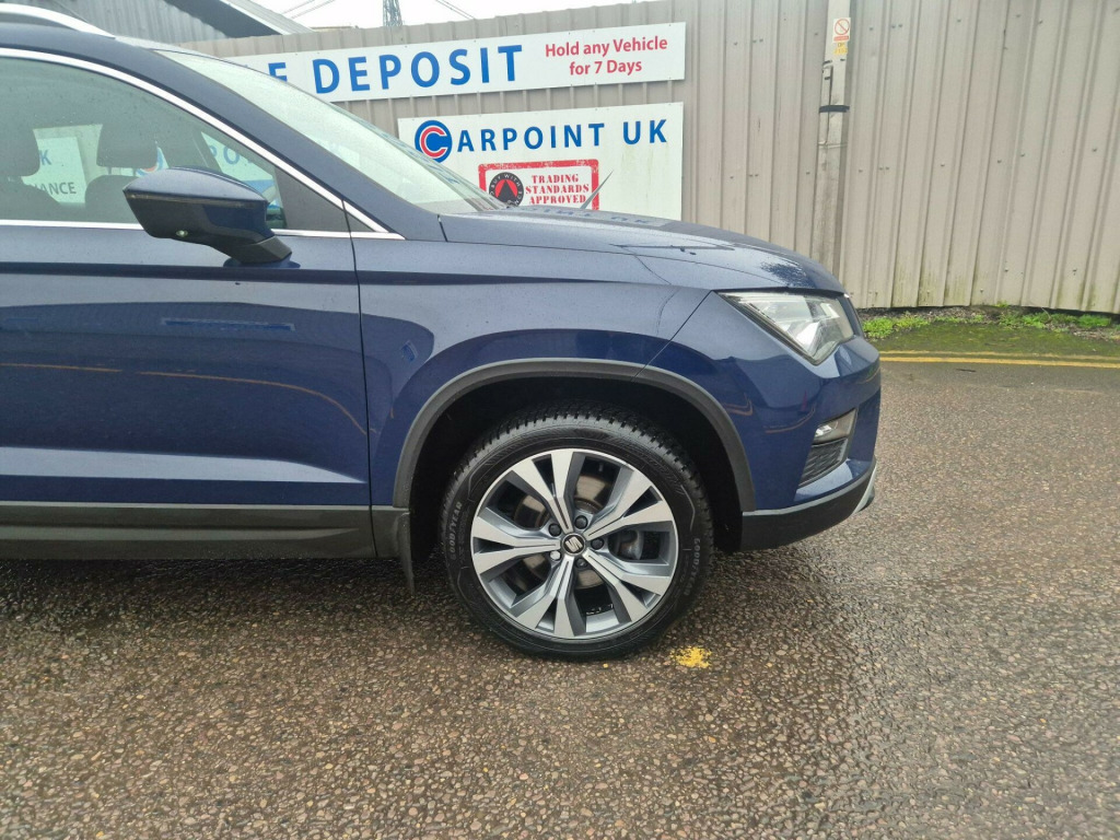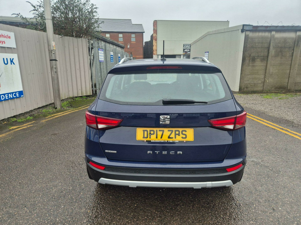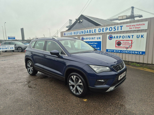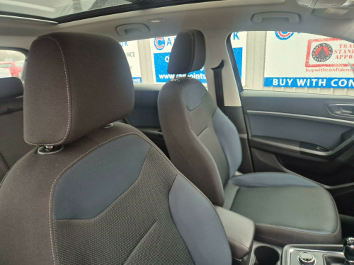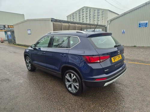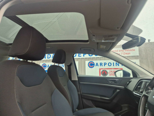With an MOT valid until February 2027 and a full service history, this 2017 SEAT Ateca EcoTSI SE Technology offers excellent peace of mind. This 1.4 litre petrol model, finished in the SE Technology trim, is a Euro 6 compliant vehicle and has had only two owners. It comes equipped with useful features such as rear parking sensors for easier manoeuvring, dual zone climate control to keep everyone comfortable, and full LED headlights for improved visibility.This SEAT Ateca stands out with its impressive fuel economy, achieving up to 52 miles per gallon, and its low CO2 emissions. Its acceleration from 0 to 62 miles per hour in just 8.5 seconds demonstrates its responsive performance. Furthermore, the large boot space provides ample room for luggage or shopping, and its low insurance group rating makes it an economical choice for many drivers, indicating it is better than many similar vehicles on the market.. 12V Socket in Front, 18in Alloy Wheels - Bi-Colour, 3.5in Drivers Display, Active Front Head Restraints, Alarm - Perimeter and Interior Monitoring, Aluminium Roof Rails, Ambient Spot Lighting and Front Footwell Illumination, Anti-Lock Braking System - ABS, Armrest with Air Outlet in Rear, Chrome Dashboard Detailing, Comfort Suspension, Cruise Control, Digital Clock, Door Mirrors and Door Handles in Body Colour, Driver and Front Passenger Airbags, Driver and Passenger Seat with Lumbar Adjustment, Driver and Passenger Sunvisor with Card Holder for Driver, Driver and Passenger Sunvisor with Covered and Illuminated Mirrors, Drivers Knee Airbag, Drivers Seat Lumbar Adjustment, Dual Zone Climate Control, Electric Parking Brake, Electrically Folding Door Mirrors, Electronic Differential Lock System - XDS, Electronic Stability Control - ESC, Four Cargo Rings in the Boot, Front Armrest - Adjustable with Storage Compartment, Front Assist - City Emergency Braking and Pedestrian Protection, Front Courtesy Light with Front and Rear Reading Lights, Front Cup Holders, Front Fog Lights with Cornering Function, Front Grille Frame - Chrome, Front Passenger Airbag De-Activation, Front Seat Back Storage Pockets, Front Side Airbags, Front and Rear Electric Windows, Front and Rear Seatbelt Reminder, Fuel Filler Flap linked to Central Locking, Full LED Headlights, Full Link, Gear Recommendation Indicator, Height Adjustable Front Headrests, Height Adjustable Passenger Seat, Height-Adjustable Drivers Seat, Hidden Exhaust Pipe, Hill Hold Control, ISOFIX Points in Outer Rear Seats with Top Tether Anchorage Points, Illuminated Boot, Illuminated Glovebox, Instrument Lighting with Brightness Control, LED Daytime Running Lights, LED Taillights, Leather Gear Knob, Leather Steering Wheel, Lights Left On Warning Buzzer, Locking Wheel Bolts, Low Fuel Warning Light, Media System Plus, Navigation System, Outside Temperature Gauge, Power Locking and Remote Control with Two Foldable Keys and Opening Boot Selector - 3 Buttons, Power Steering - Electrically Assisted, RPM Counter, Rear Armrest and Easy Back Seat Release Mechanism From Boot, Rear Fog Light, Rear Parking Sensors, Rear Reading Lights, Rear Wash - Wipe, SEAT Drive Profile with Driving Experience Button, SEAT Logo Tailgate Release, Split Folding Rear Seats 60/40 with Reclining Function, Steering Wheel-Mounted Audio and Phone Controls, Storage Box Under Drivers Seat, Sunglasses Storage Compartment in Roof Console, Tinted Windows, Tiredness Recognition System, Traction Control System - ASR, Trip Computer, Two Curtain Airbags, Tyre Pressure Monitoring System, Wheel Arch Surrounds - Black, Window Surrounds - Chrome. Full service history