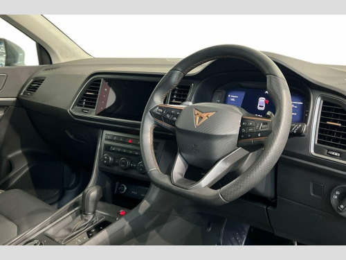 This 2024 CUPRA Ateca EcoTSI V2 presents a superb ownership proposition, having been meticulously maintained by its single owner. This Euro 6 compliant 1.5 litre petrol model, in its V2 trim, offers a compelling blend of performance and practicality. Inside, you'll find comfort and convenience with Dual Zone Climate Control, ensuring a pleasant cabin temperature for all occupants, and an Electric Driver Seat with Memory Function, allowing you to easily recall your preferred seating position. The Heated Steering Wheel adds an extra touch of comfort during colder journeys, while Keyless Entry provides effortless access to the vehicle. The CUPRA Ateca EcoTSI V2 stands out with its impressive LED Headlamps and LED Fog Lamps featuring a Cornering Function, enhancing visibility in various driving conditions. Its acceleration is brisk, achieving 0-60mph in just 9.3 seconds, demonstrating a responsive driving experience. Furthermore, the generous boot space ensures you have ample room for luggage, shopping, or equipment, making it a versatile choice for everyday life and weekend adventures. These features collectively highlight how this Ateca offers a superior driving and ownership experience compared to other vehicles in its class. 12V Socket in Front, 19in Alloy Wheels - Sport Machined - Bla, ABS - Anti-Lock Braking System - TCS - T, Alarm, Ambient Lighting - Multi-Coloured and LE, Convenience Pack, Cruise Control with Speed Limiter, CUPRA Connect, CUPRA Emblem on Steering Wheel, Dark Tinted Rear Windows, Daytime Running Lights, Digital Cockpit, Door Mirrors Electrically Adjustable - F, Driver and Front Passenger Airbags with , Drivers and Passenger Seats - Manual Hei, Driving Profile Selection and Convention, Dual-Zone Climate Control, Dynamic Headlight Range Control with Sel, Electric Driver Seat with Memory Functio, Electric Front and Rear Windows, Electronic Parking Brake with Autohold F, Front and Rear Seat Belt