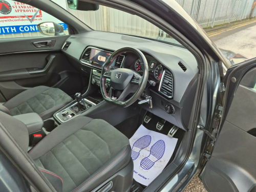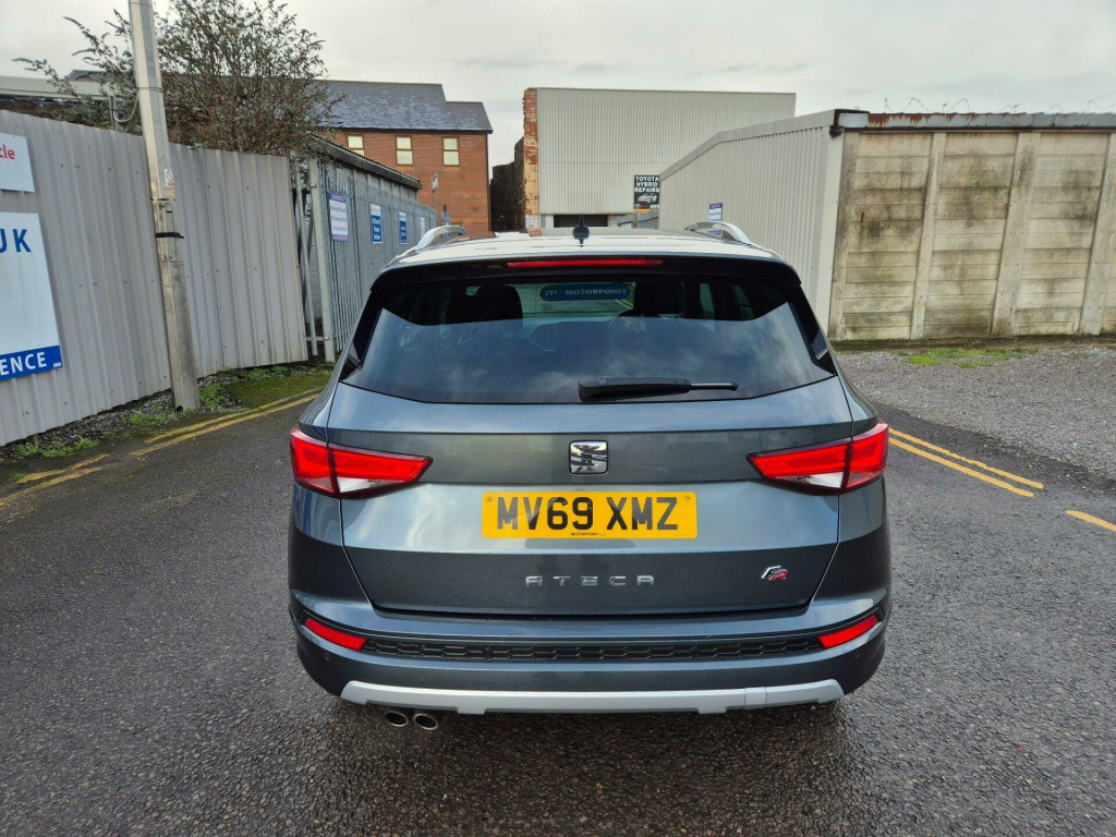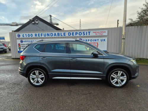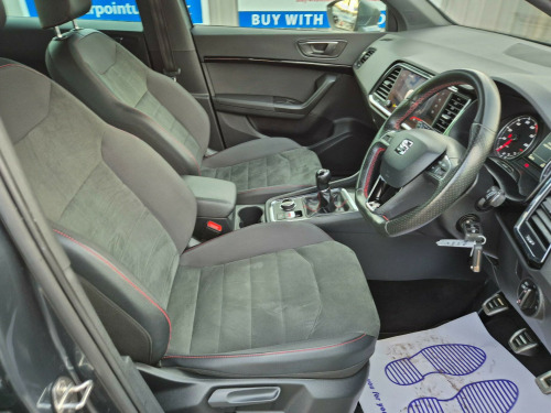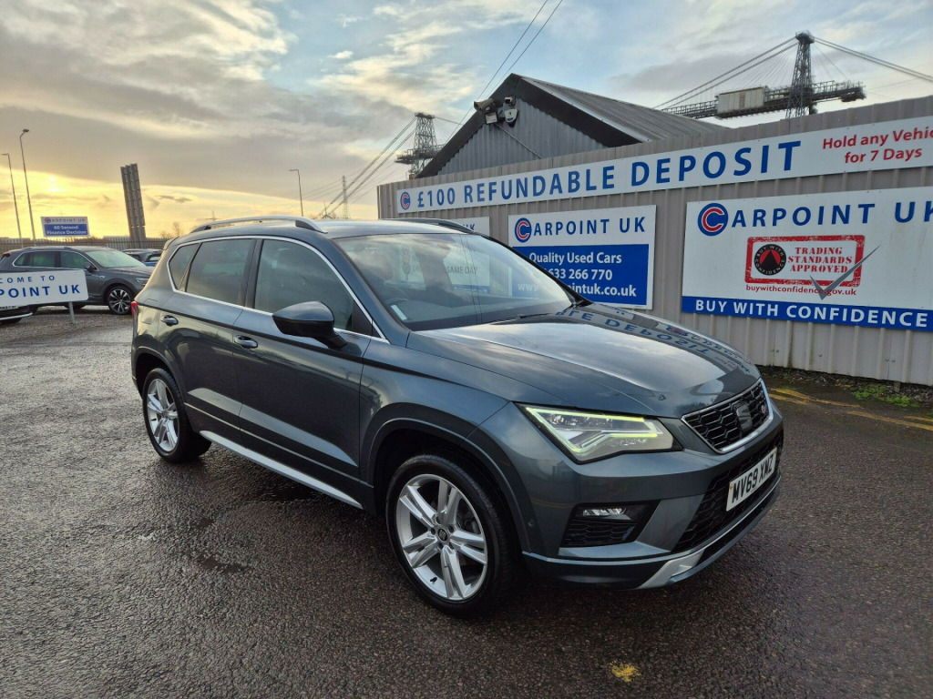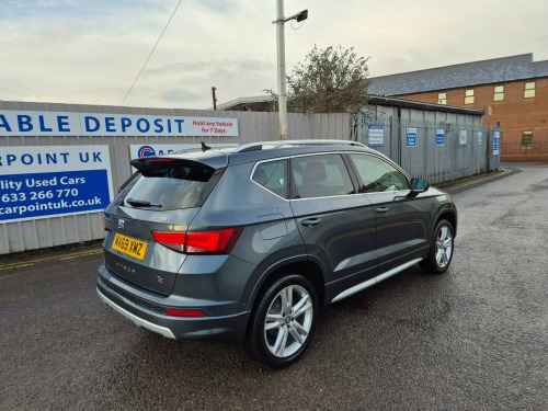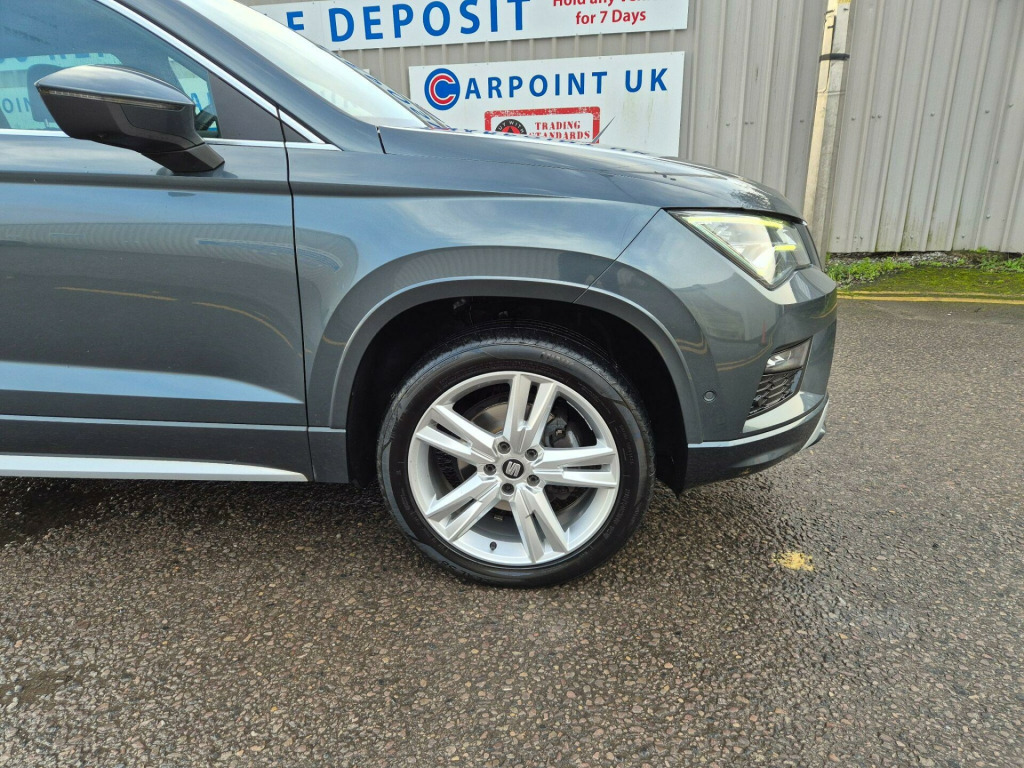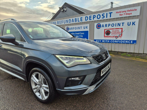 With an MOT valid until February 2027 and a full service history, this 2019 SEAT Ateca TSI EVO FR is ready for your adventures. This Euro 6 compliant 1.5 litre petrol model offers a smooth driving experience, complemented by its FR trim. You'll appreciate the convenience of automatic headlights and the ease of Full Link, which seamlessly integrates Android Auto and Apple CarPlay into your journey. Stay comfortable in any weather with dual zone climate control, and navigate with confidence thanks to the full LED headlights and Park Assist system, complete with front and rear parking sensors.This SEAT Ateca stands out with its impressive acceleration, reaching 0-62mph in just 8.5 seconds, demonstrating its responsive performance. Its low CO2 emissions are a benefit for both the environment and your running costs, while the generous boot space ensures you have plenty of room for luggage or shopping. Furthermore, this model falls into a low insurance group, making it a more economical choice to own and run compared to many other vehicles in its class.. 12V Socket in Front, 18in Alloy Wheels - Performance, 3.5in Drivers Display, Active Front Head Restraints, Advanced Multi-Colour Interior Ambient Lighting with LED Interior Illumination and LED Illuminated Glovebox, Alarm - Perimeter and Interior Monitoring, Ambient Spot Lighting and Front Footwell Illumination, Anti-Lock Braking System - ABS, Armrest with Air Outlet in Rear, Automatic Headlight Adjustment, Black Interior Roof, Chrome Dashboard Detailing, Chrome Double Exhaust Pipe, Comfort Suspension, Convenience Pack, Cruise Control, Dark Tinted Rear Windows, Digital Clock, Door Mirrors and Door Handles in Body Colour, Door Mirrors with Welcome Light Silhouette, Driver and Front Passenger Airbags, Driver and Passenger Seat with Lumbar Adjustment, Driver and Passenger Sunvisor with Card Holder for Driver, Driver and Passenger Sunvisor with Covered and Illuminated Mirrors, Drivers Knee Airbag, Dual Zone Climate Control, Electric Parking Brake Including Autohold Function, Electrically Adjustable Folding and Heated Door Mirrors, Electronic Differential Lock System - XDS, Electronic Stability Control - ESC, Four Cargo Rings in the Boot, Front Armrest - Adjustable with Storage Compartment, Front Assist - City Emergency Braking and Pedestrian Protection, Front Courtesy Light with Front and Rear Reading Lights, Front Cup Holders, Front Grille Frame - Chrome, Front LED Fog Lights with Cornering Function, Front Passenger Airbag De-Activation, Front Seat Back Storage Pockets, Front Side Airbags, Front and Rear Electric Windows, Front and Rear Seatbelt Reminder, Fuel Door Linked to Central Locking, Full LED Headlights, Full Link, Gear Recommendation Indicator, Height Adjustable Front Headrests, Height Adjustable Passenger Seat, Height-Adjustable Drivers Seat, High Gloss Black Grille, Hill Hold Control, ISOFIX Points in Outer Rear Seats with Top Tether Anchorage Points, Illuminated Aluminium Front Door Sill with Trim Logo, Illuminated Boot, Instrument Lighting with Brightness Control, LED Daytime Running Lights, LED Taillights, Leather Gear Knob, Leather Steering Wheel, Lights Left On Warning Buzzer, Locking Wheel Bolts, Low Fuel Warning Light, Navigation System, Outside Temperature Gauge, Park Assist, Pedals in Aluminium, Power Locking and Remote Control with Two Foldable Keys and Opening Boot Selector - 3 Buttons, Progressive Steering, RPM Counter, Rear Armrest and Easy Back Seat Release Mechanism From Boot, Rear Fog Light, Rear Reading Lights, Rear Spoiler, Rear Wash - Wipe, Roof Rails - Chrome, SEAT Drive Profile with Driving Experience Button, Split Folding Rear Seats - 60-40, Steering Wheel-Mounted Audio and Phone Controls, Storage Box Under Drivers Seat, Sunglasses Storage Compartment in Roof Console, Tinted Windows, Tiredness Recognition System, Traction Control System - ASR, Trip Computer, Two Curtain Airbags, Tyre Pressure Monitoring System, USB Media Cable, Wheel Arch Surrounds - Body Colour, Window Surrounds - Chrome. Full service history