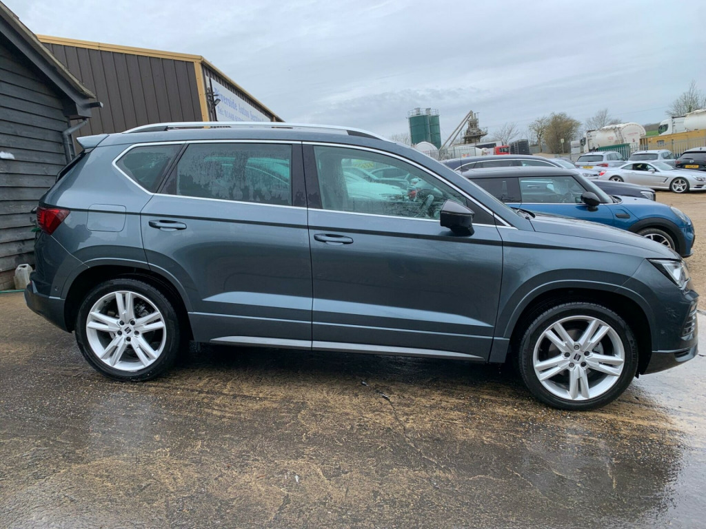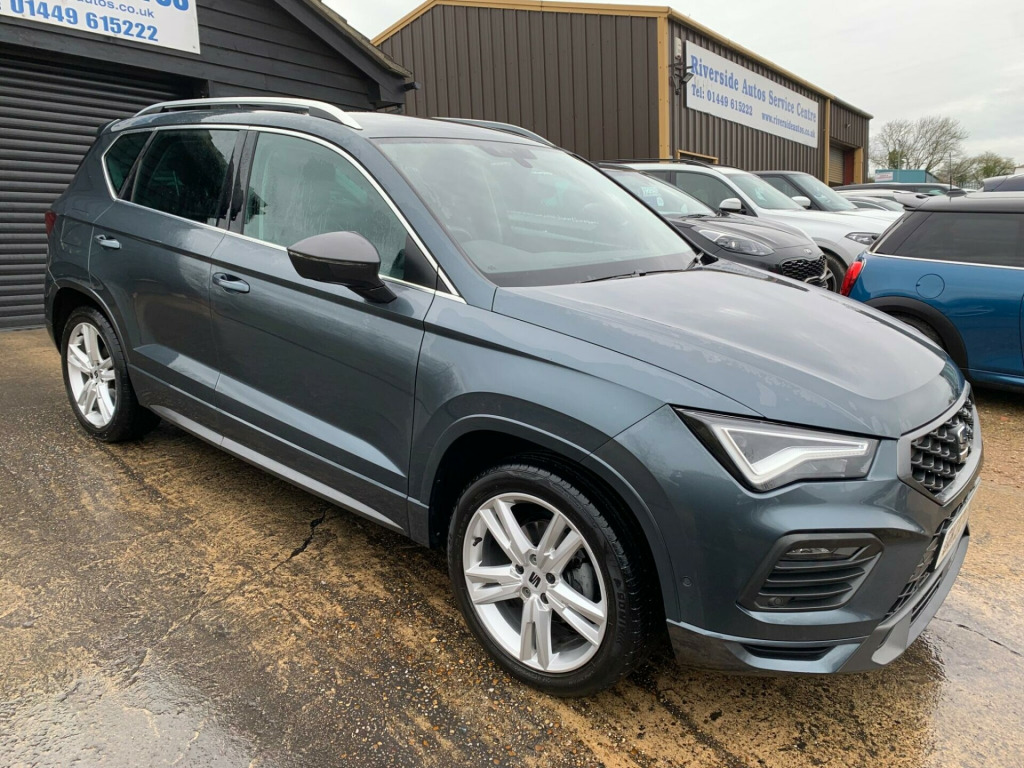 FREE UK DELIVERY - FINANCE AVAILABLE, CONTACT US NOW FOR A NO OBLIGATION QUOTE - CALL NOW TO ARRANGE A TEST DRIVE - PART EXCHANGE WELCOME - ONE YEAR WARRANTY MINIMUM, EXTENDED AVAILABLE, WARRANTY CAN BE REDEEMED AT VAT REGISETERED GARAGE - NO ADMIN FEES - ALL VEHICLES HPI CHECKED - FULL USED CAR INSPECTION MECHANICAL APPRAISAL CARRIED OUT ON ALL VEHICLES BEFORE LEAVING OURSELVES - YOU CAN REST ASSURED YOU'RE MAKING THE RIGHT DECISION WHEN PURCHASING YOUR NEW VEHICLE FROM US - OVER 100 VEHICLES IN STOCK - RIVERSIDE AUTOS LTD FAMILY RUN BUSINESS ESTABLISHED SINCE 2005 -This 2022 SEAT Ateca TSI EVO FR is a superb example, having had only one owner since new. This stylish SUV boasts a 1.5 litre petrol engine, meeting Euro 6 emissions standards. Inside, you'll find comfort and convenience with Dual Zone Climate Control and a Wireless Phone Charger. The FR trim level enhances the driving experience, and the Convenience Pack includes automatic headlights for ease of use. Parking is made simple with Park Assist, featuring front and rear sensors, while KESSY Keyless Entry and Go allows for effortless access and starting.This SEAT Ateca offers a compelling package, highlighted by its impressive acceleration, reaching 0-62mph in just 9.0 seconds, demonstrating its responsive performance. Its low insurance group rating indicates it is more economical to run than many similar vehicles. Furthermore, the generous boot space provides ample room for luggage or shopping, making it a practical choice for families and individuals alike.. 12V Socket in Front, 18in Alloy Wheels - Brilliant Silver, Advanced Multi Colour Interior Ambient Lighting and LED Interior Illumination, Alarm - Perimeter and Interior Monitoring, Anti-Lock Braking System - ABS, Convenience Pack, Cruise Control, Dark Tinted Rear Windows, Daytime Running Lights, Door Mirrors with Welcome Light Silhouette, Driver and Front Passenger Airbags, Driver and Passenger Seat with Lumbar Adjustment, Drivers Knee Airbag, Dual Zone Climate Control, Dynamic Headlight Range Control with Self-Adjusting whilst Driving, Electric Parking Brake Including Autohold Function, Electrically Adjustable Folding and Heated Door Mirrors, Electronic Differential Lock System - XDS, Electronic Stability Control - ESC, Front Assist - City Emergency Braking and Pedestrian Protection, Front Centre Armrest, Front Grille Frame in Cosmo Grey, Front LED Fog Lights with Cornering Function, Front Passenger Airbag De-Activation, Front Seat Back Storage Pockets, Front Side Airbags, Front and Rear Electric Windows, Front and Rear Seatbelt Reminder, Full LED Headlights, Full Link Smartphone Integration, Height Adjustable Passenger Seat, Height-Adjustable Drivers Seat, Hill Hold Control, ISOFIX Points in Outer Rear Seats with Top Tether Anchorage Points, Illuminated Aluminium Front Door Sill with Trim Logo, Interior Chrome Detailing, Interior Lighting, KESSY - Keyless Entry and Go, LED Taillights with Dynamic Indicators, Leather Gear Knob, Leather Steering Wheel, Locking Wheel Bolts, Navigation System, Park Assist, Pedals in Aluminium, Power Steering, Rear Fog Light, Rear Spoiler, Roof Rails - Chrome, SEAT Connect - Safety - Service - Remote - Online, SEAT Drive Profile with Driving Experience Button, Simulated Exhaust Pipes, Split Folding Rear Seats - 60-40, Storage Box Under Drivers Seat, Sunglasses Storage Compartment in Roof Console, Tiredness Recognition System, Traction Control System - ASR, Two Curtain Airbags, Tyre Pressure Monitoring System, Wheel Arch Surrounds - Body Colour, Window Surrounds - Chrome, Wireless Phone Charger.