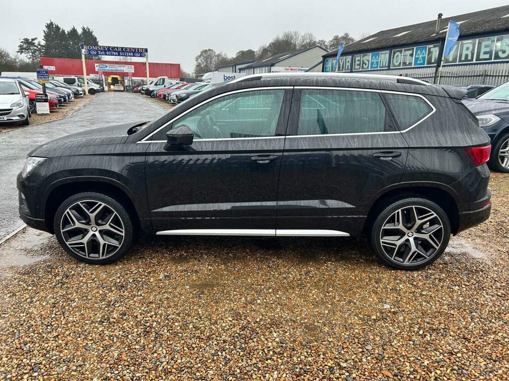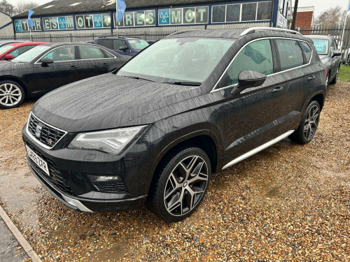 Romsey Car Centre are delighted to offer this Lovely Seat Ateca FR Sport in Black with complementing black leather seats. This Quality Seat comes with a service history done at 18,590 miles, 37,737 miles and 76,554 up to date with a long Mot. Only £195 road Tax. Features include Apple Car Play, Front parking sensors, Black Leather Trim, Air conditioning, climate Control, Bluetooth, Auto lights, USB 6 speed manual gear-box, Electric mirrors